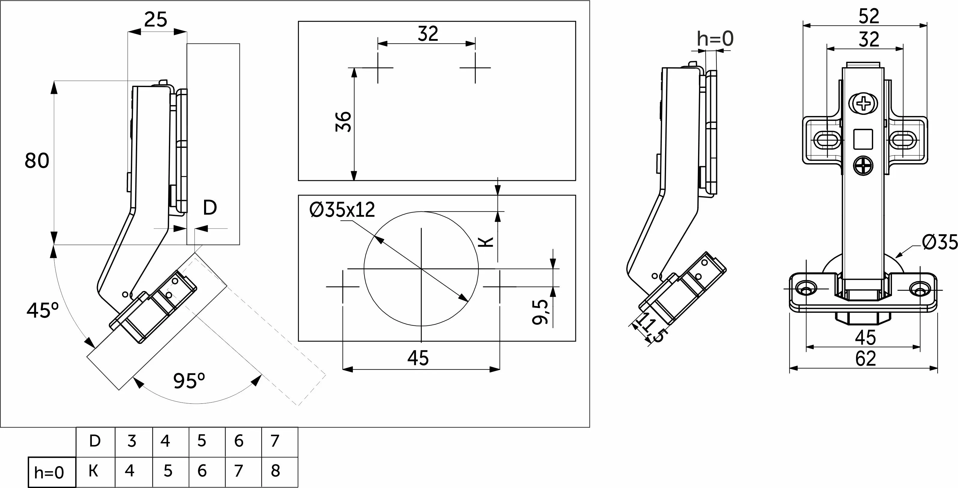 | Угол открывания, ° | 110 |