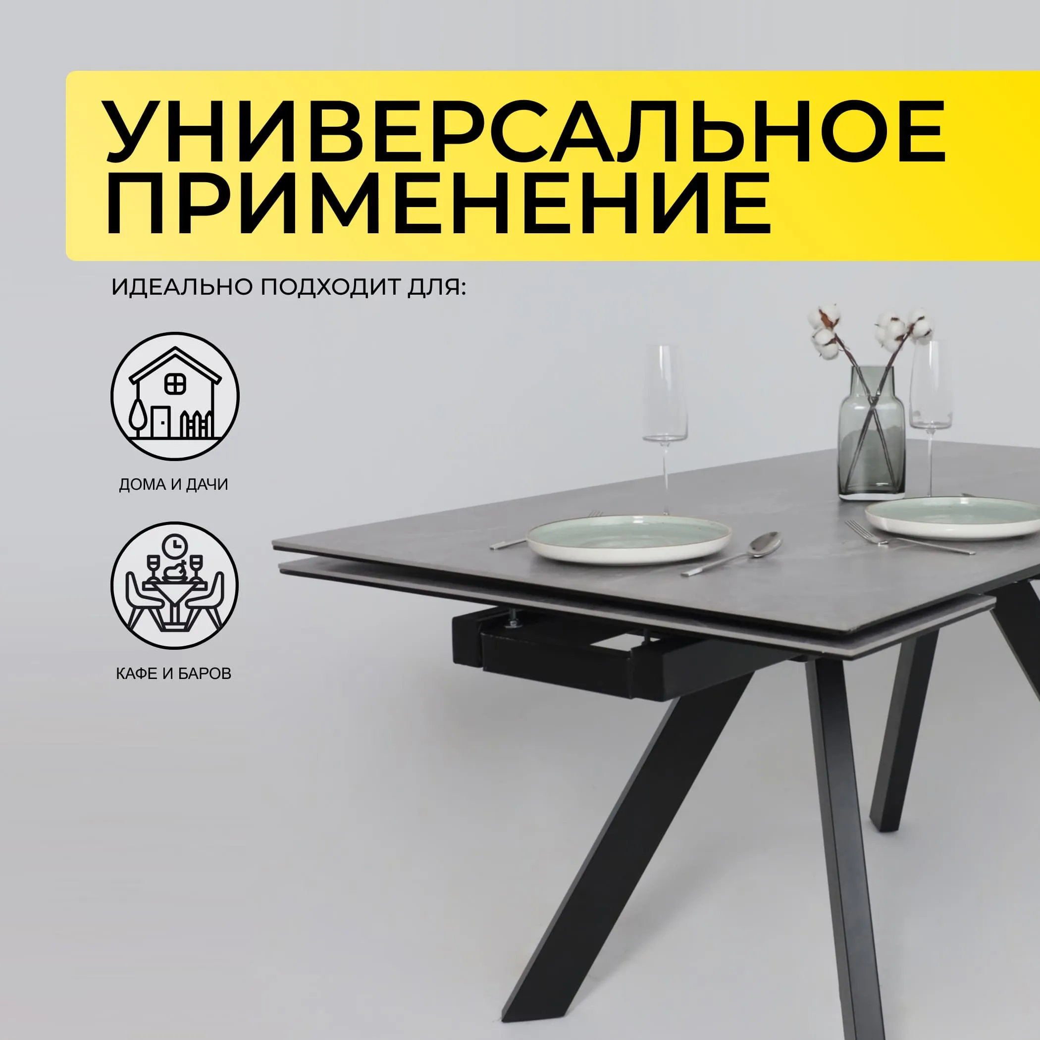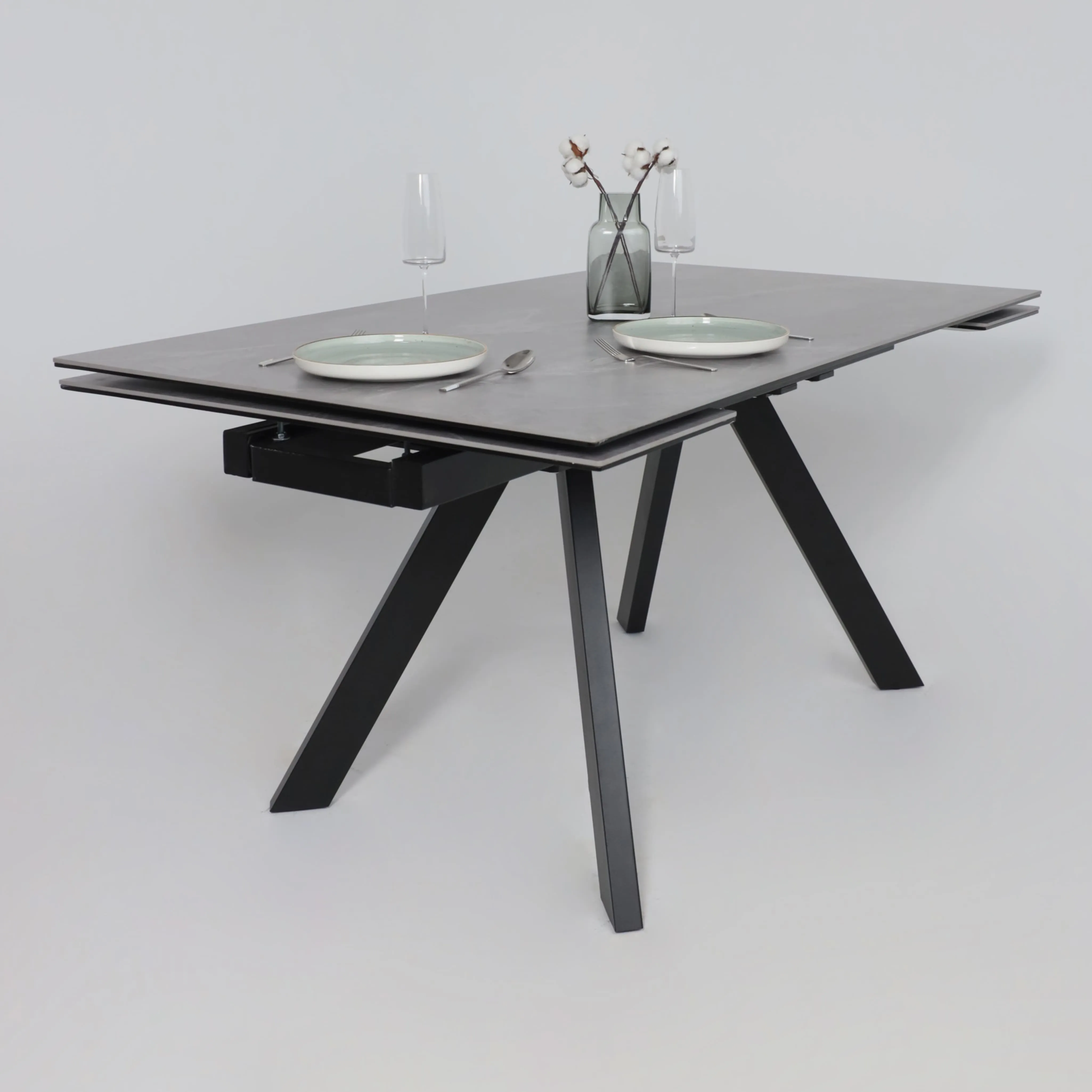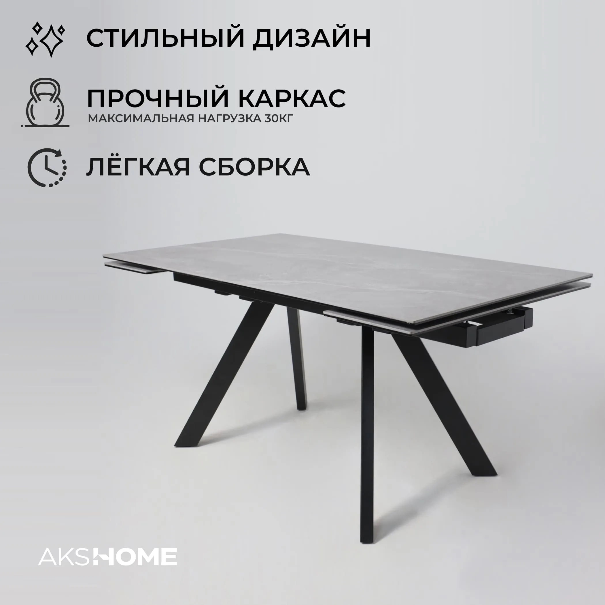 Стол TIRK RADIAL-94, раздвижной 94(126)х64, Дымчатая керамика/Чёрный