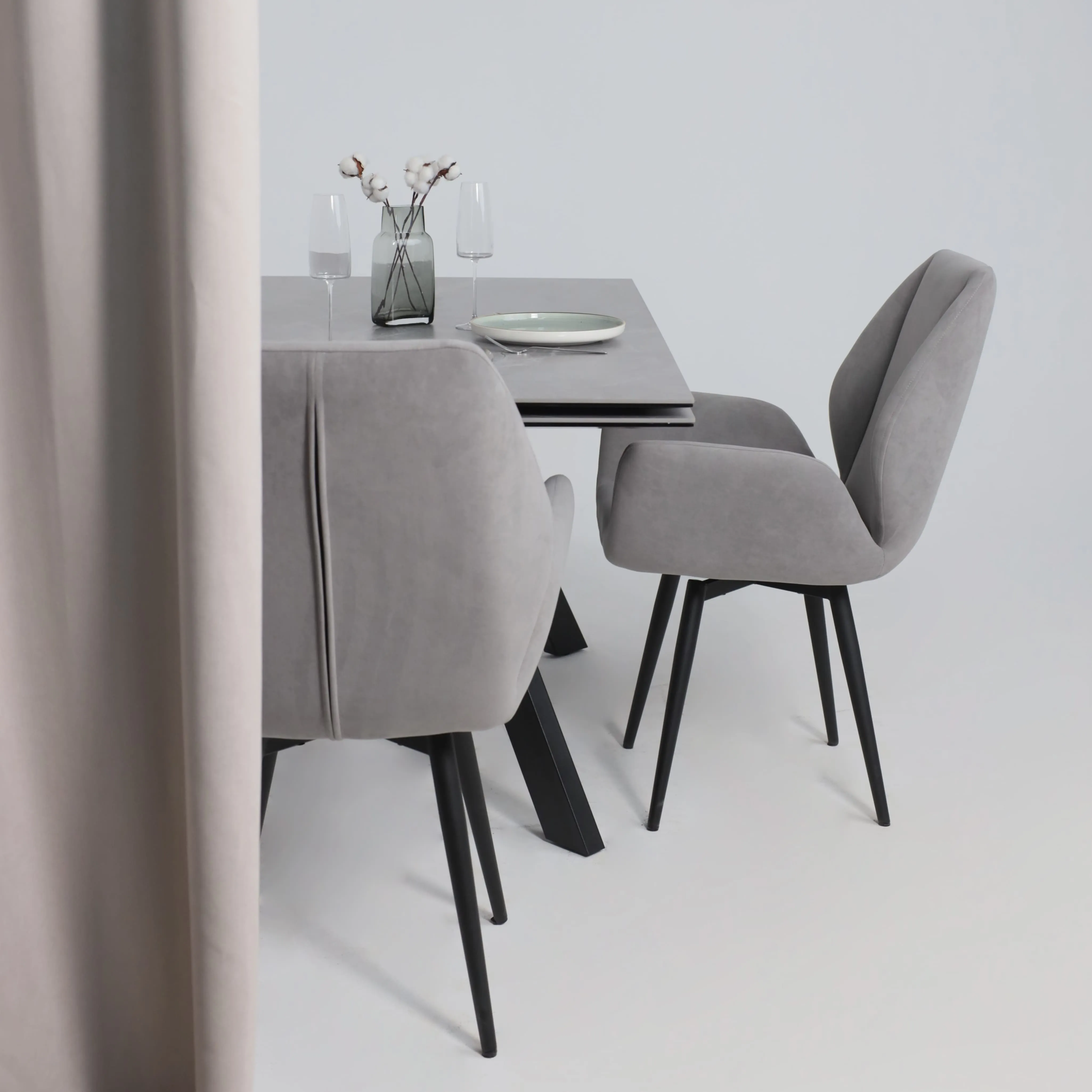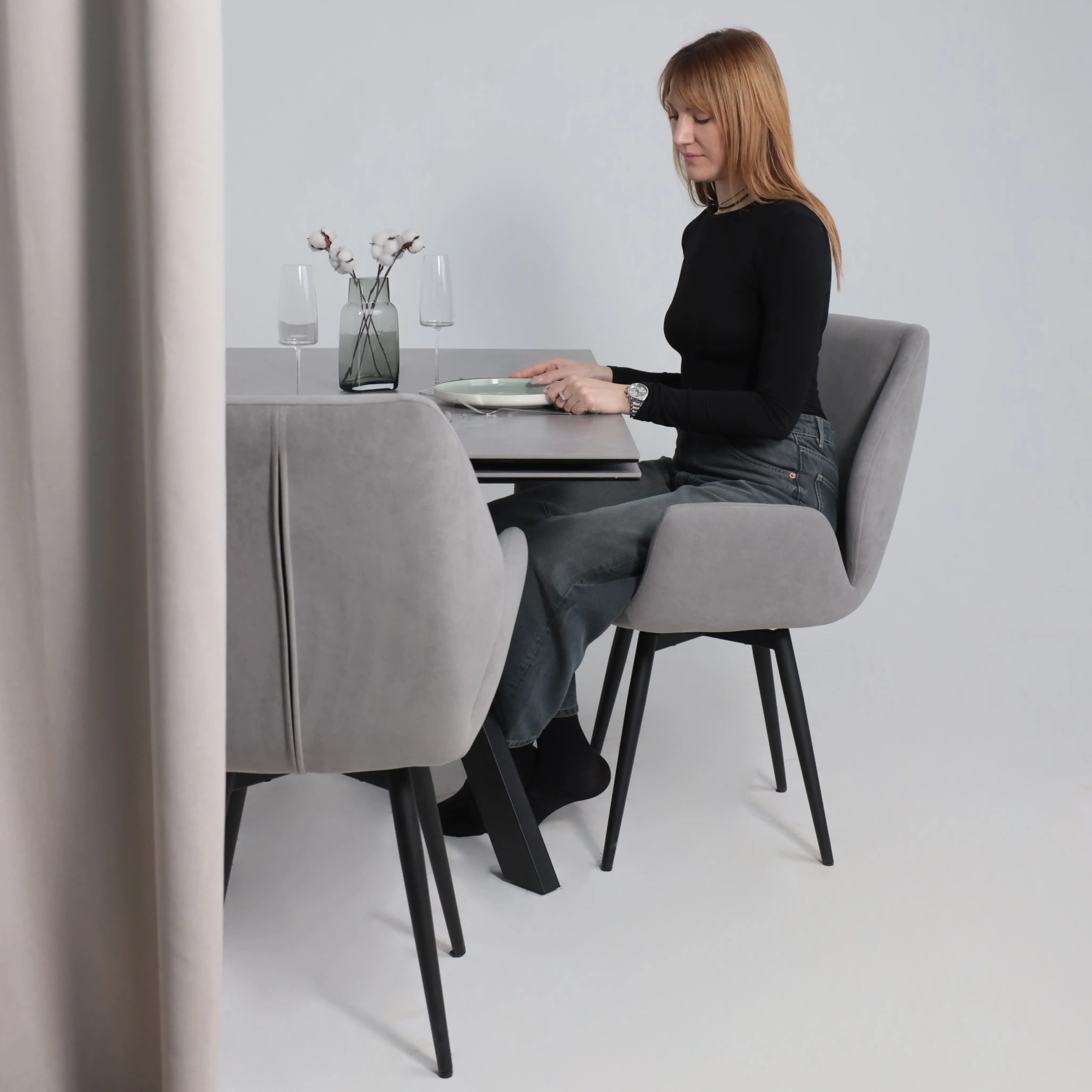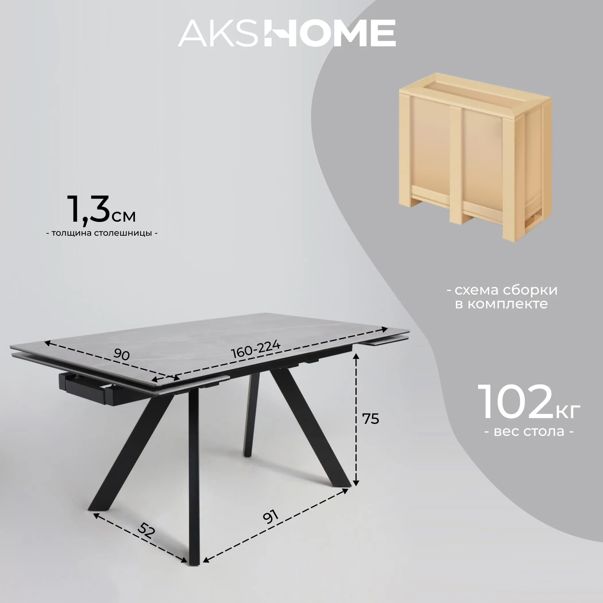 Стол TIRK RADIAL-94, раздвижной 94(126)х64, Дымчатая керамика/Чёрный