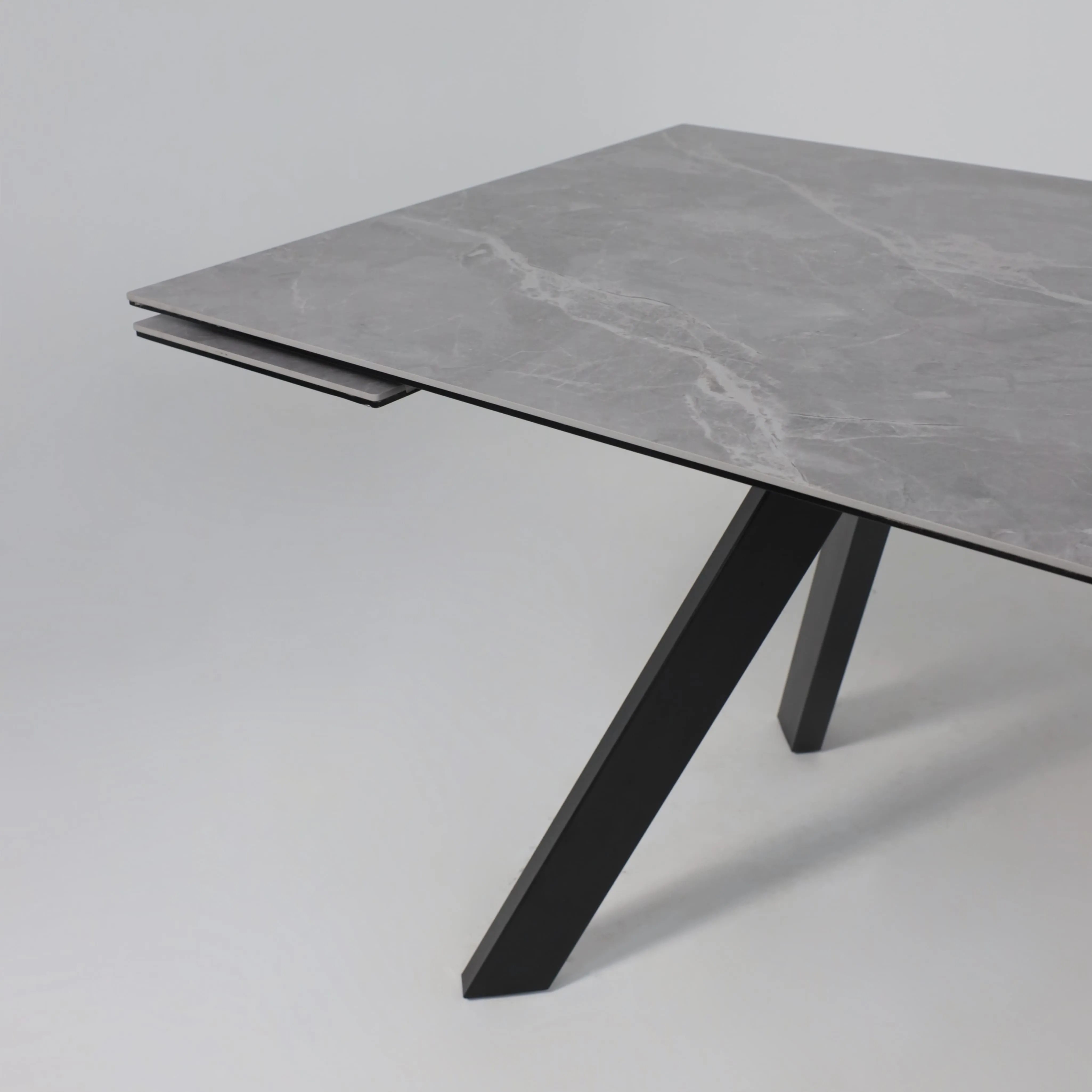 Стол МОНАКО NEW,керамика 0 кат. 1600(2240)*900, Камень серый Greys Grey/Черный матовый