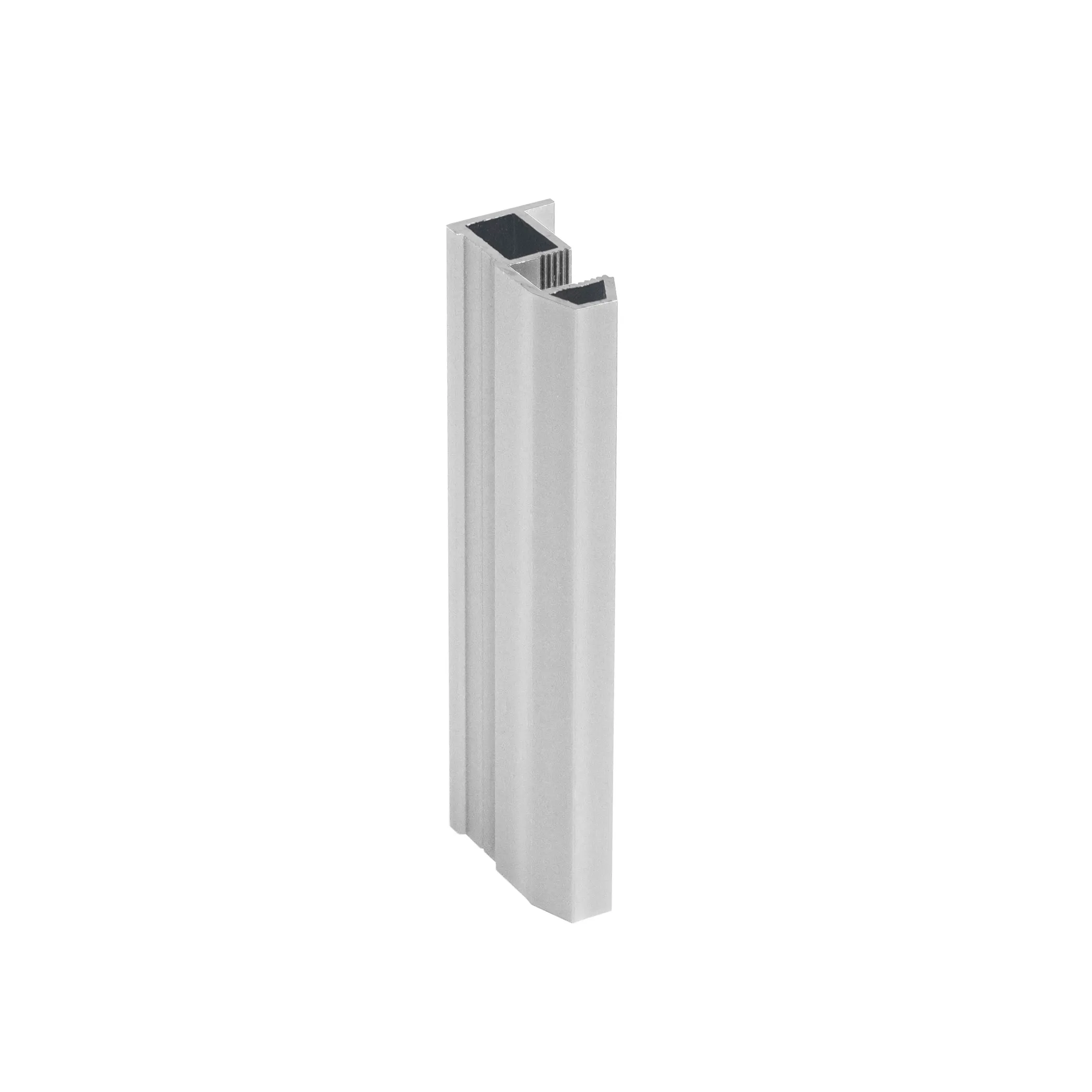 Вертикальный профиль "домик" с трапециевидной видимой частью шириной 13 мм используется в качестве вертикального профиля-ручки в раздвижной узкой системе шкафа-купе.