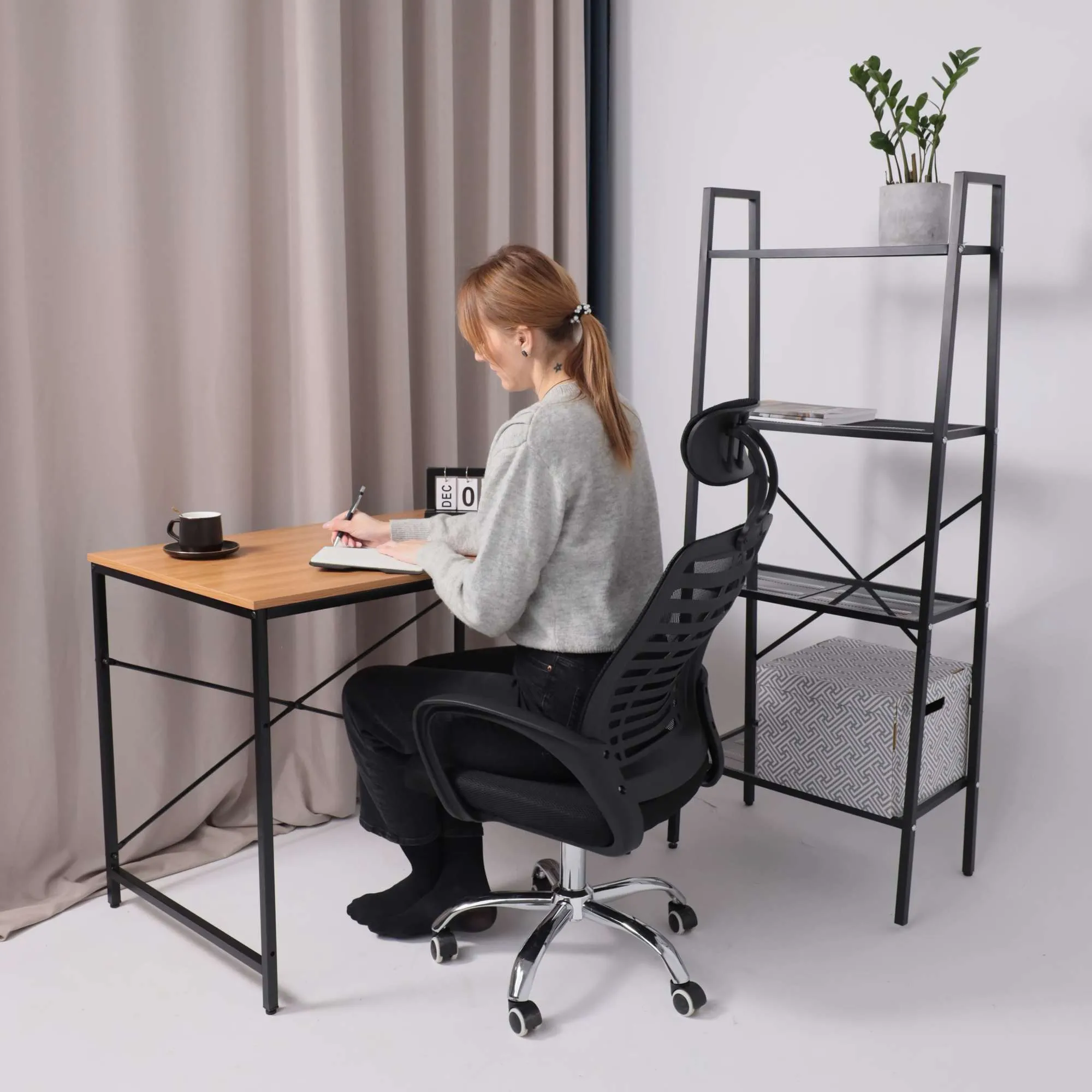 Стол письменный SHAPE, светлый дуб/черный металл, 740*480*1465