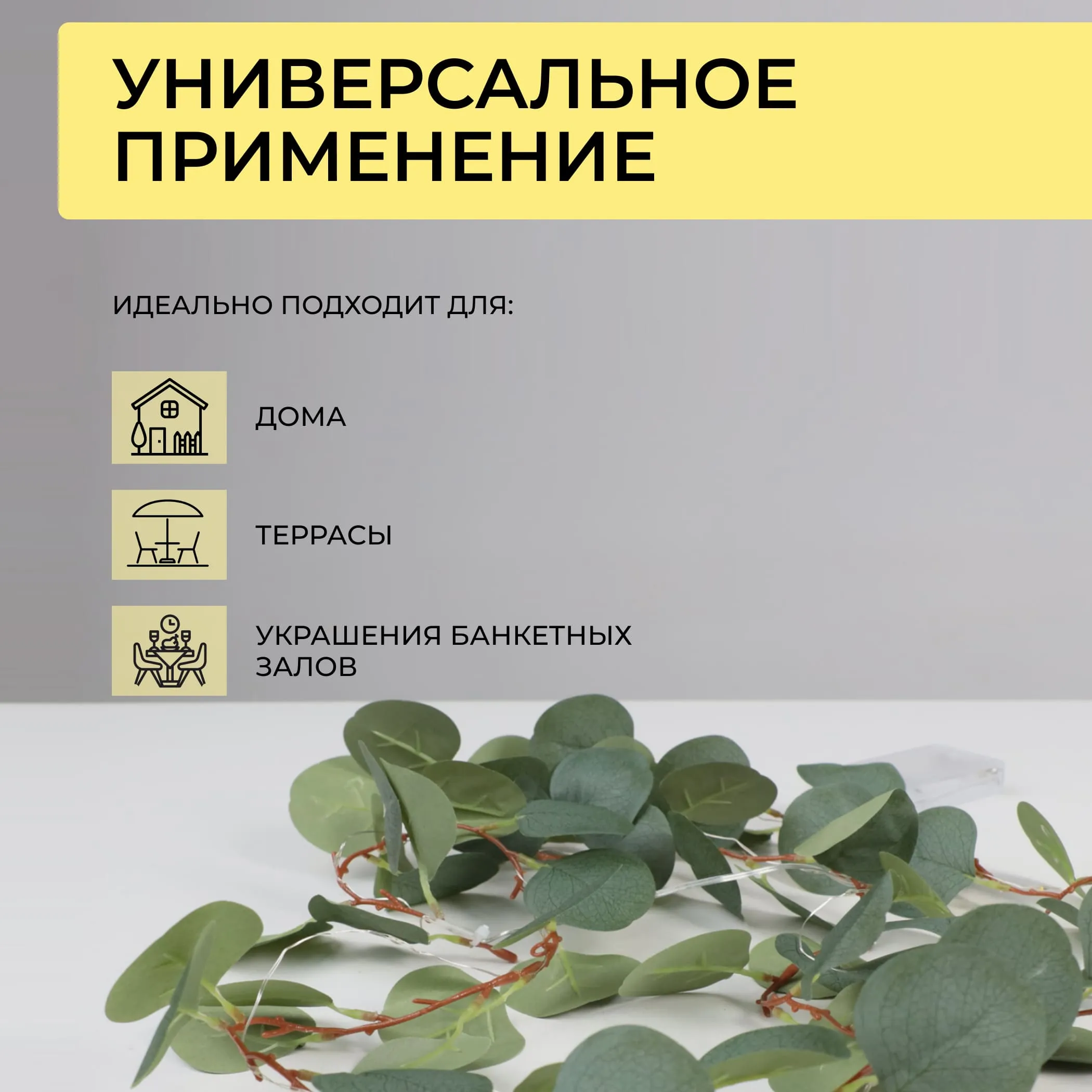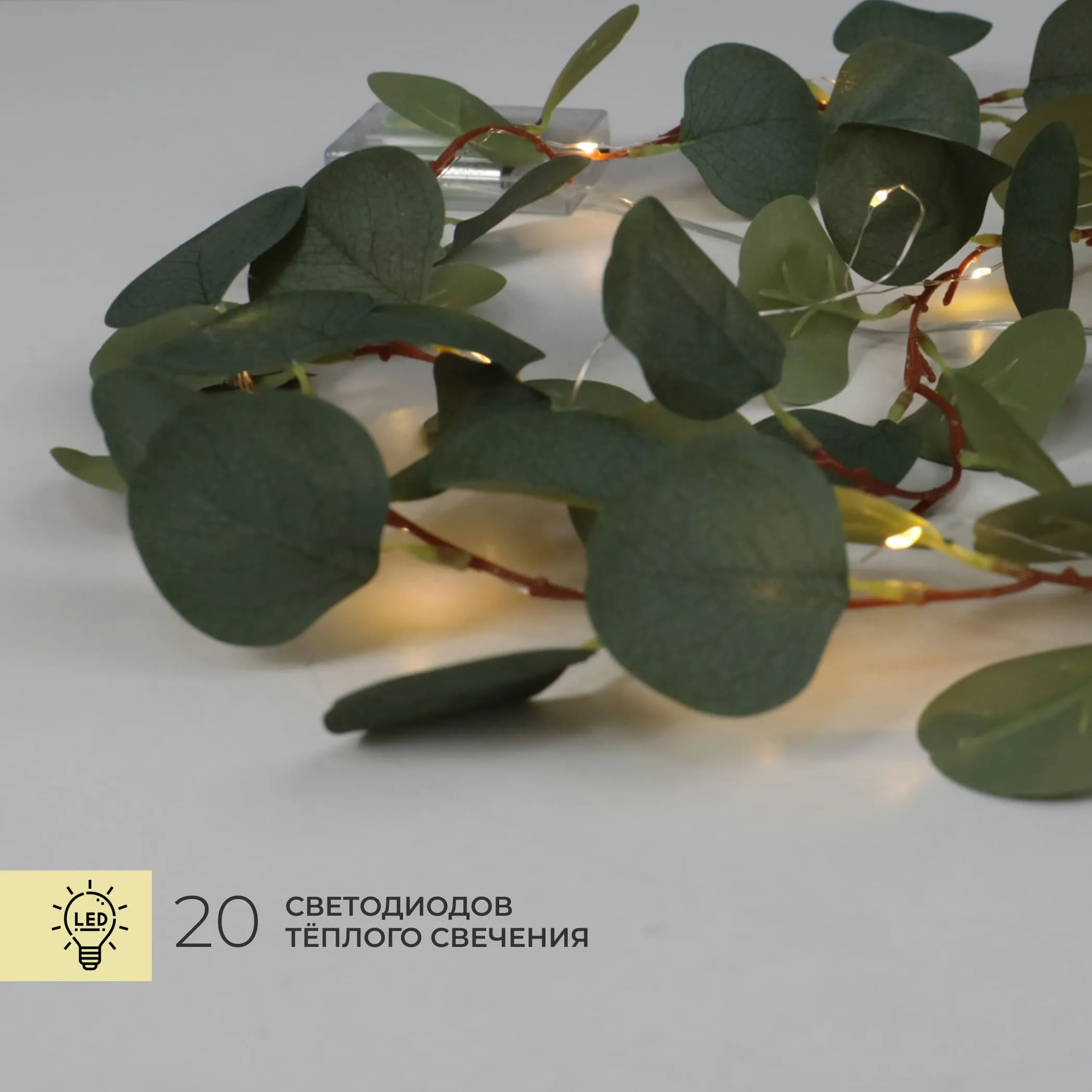 Светодиодная гирлянда AKS тип 7 ( Эвкалипт 20LED, 1.9м, 3АА )