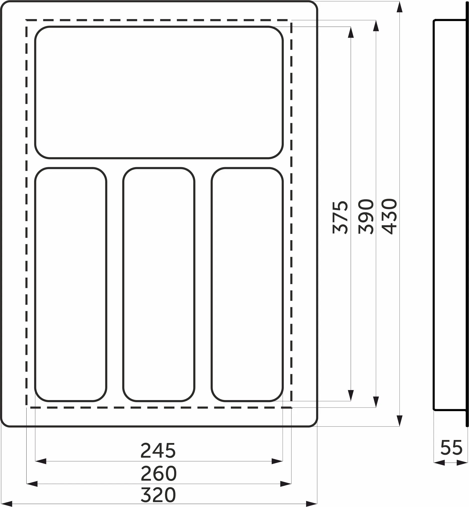 Вкладыш 60/550 шуфлядный металлический Organizer нержавеющая сталь (523*564*65) AKS