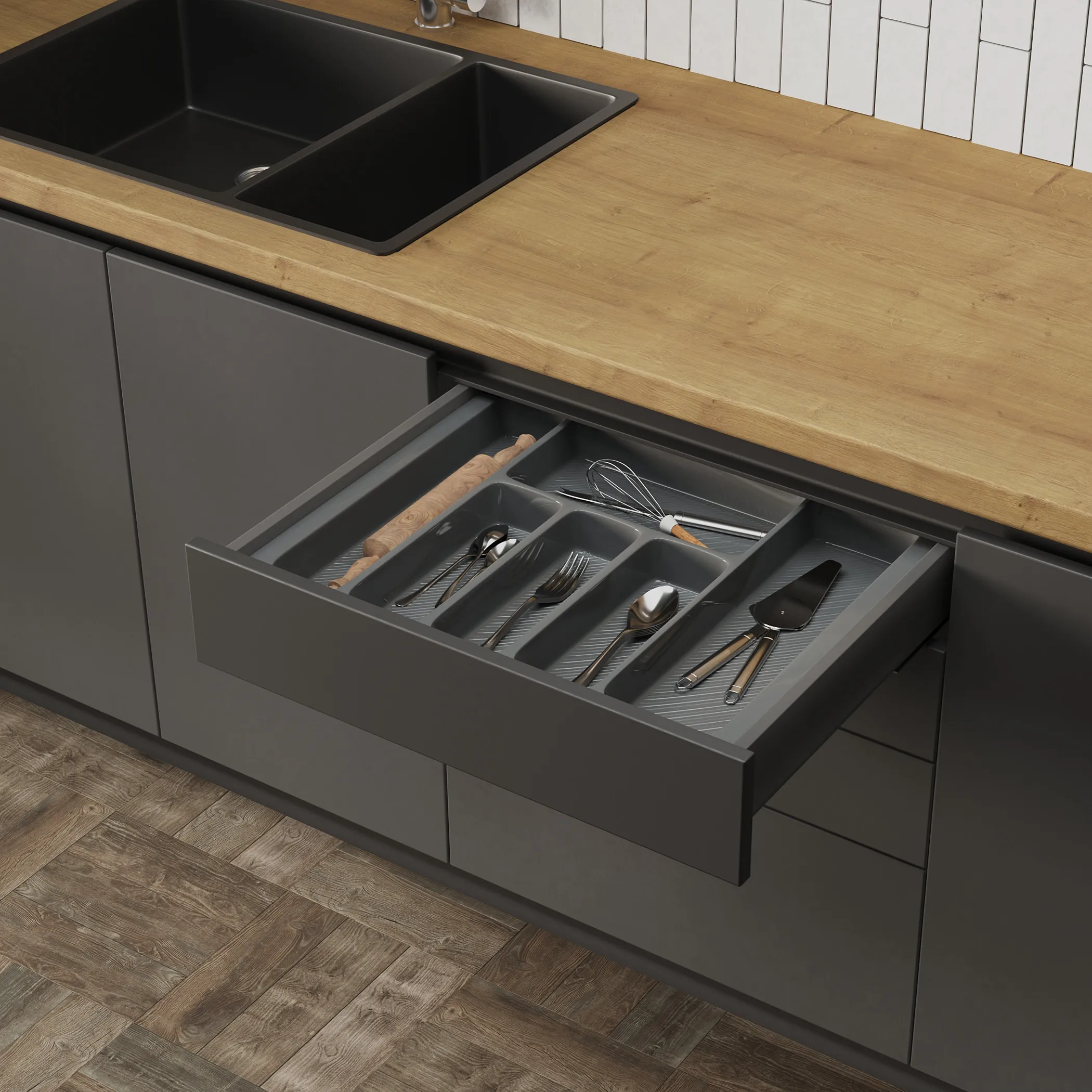 Лотки для столовых приборов серии LINER новое и стильное решение для организации хранения столовых приборов на кухне: