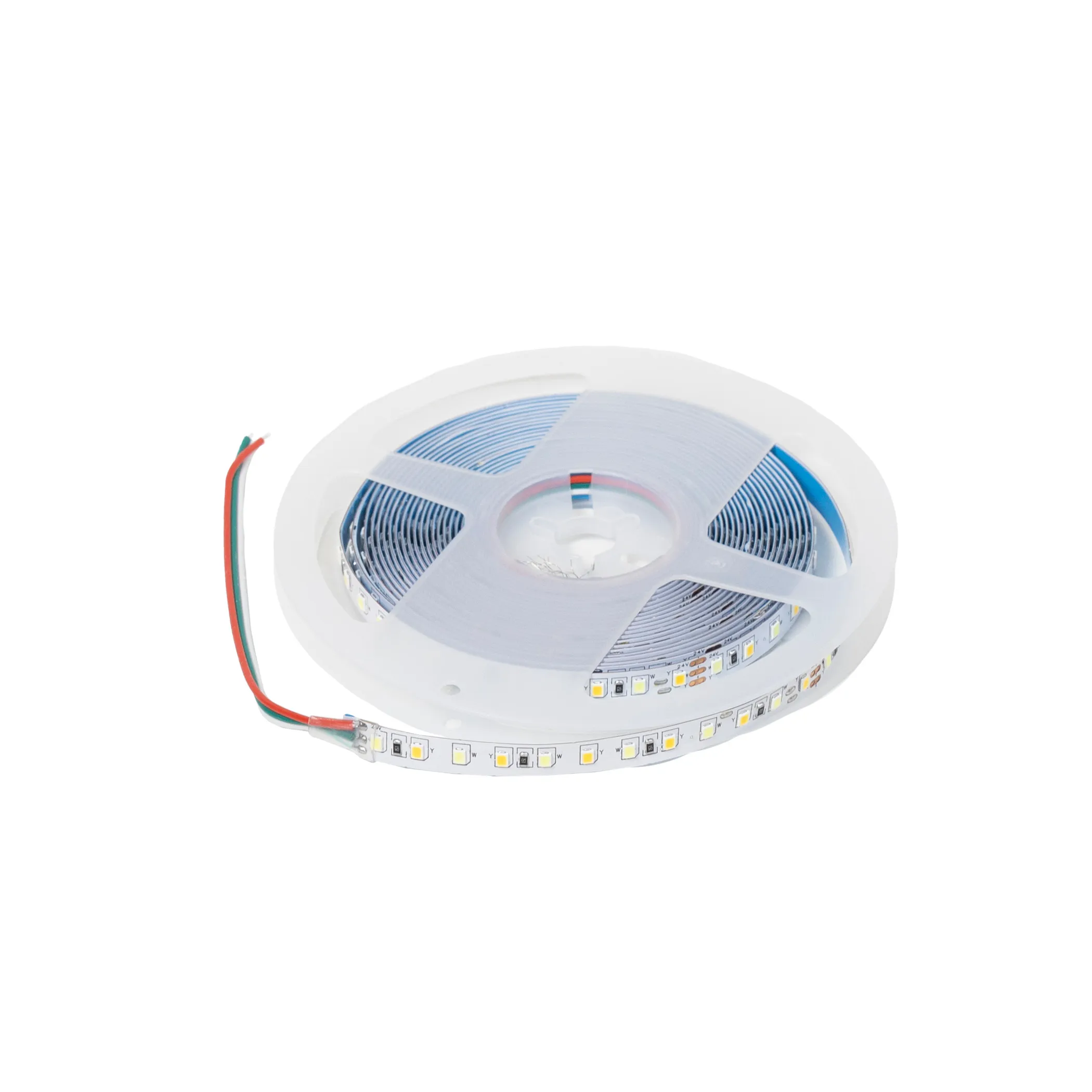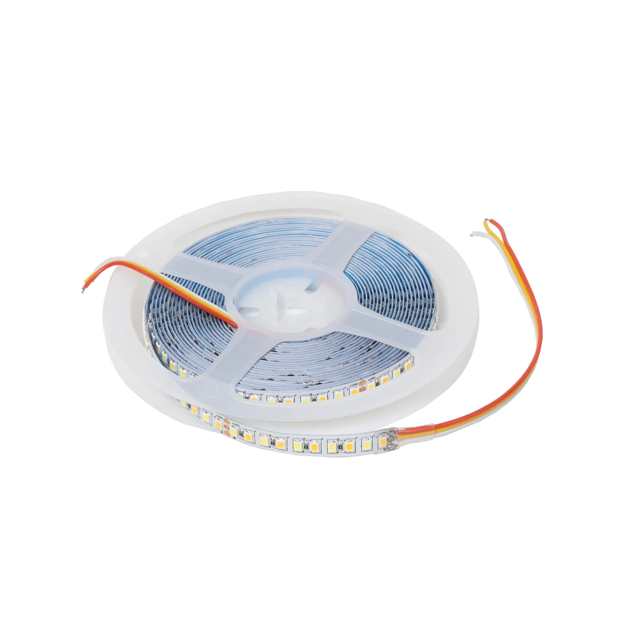 Лента светодиодная двухцветная (CCT) - 9,6W/m, 24V, 8мм, 2835, 120 д/м, IP20, тепл-холод белый, 5м, AKS