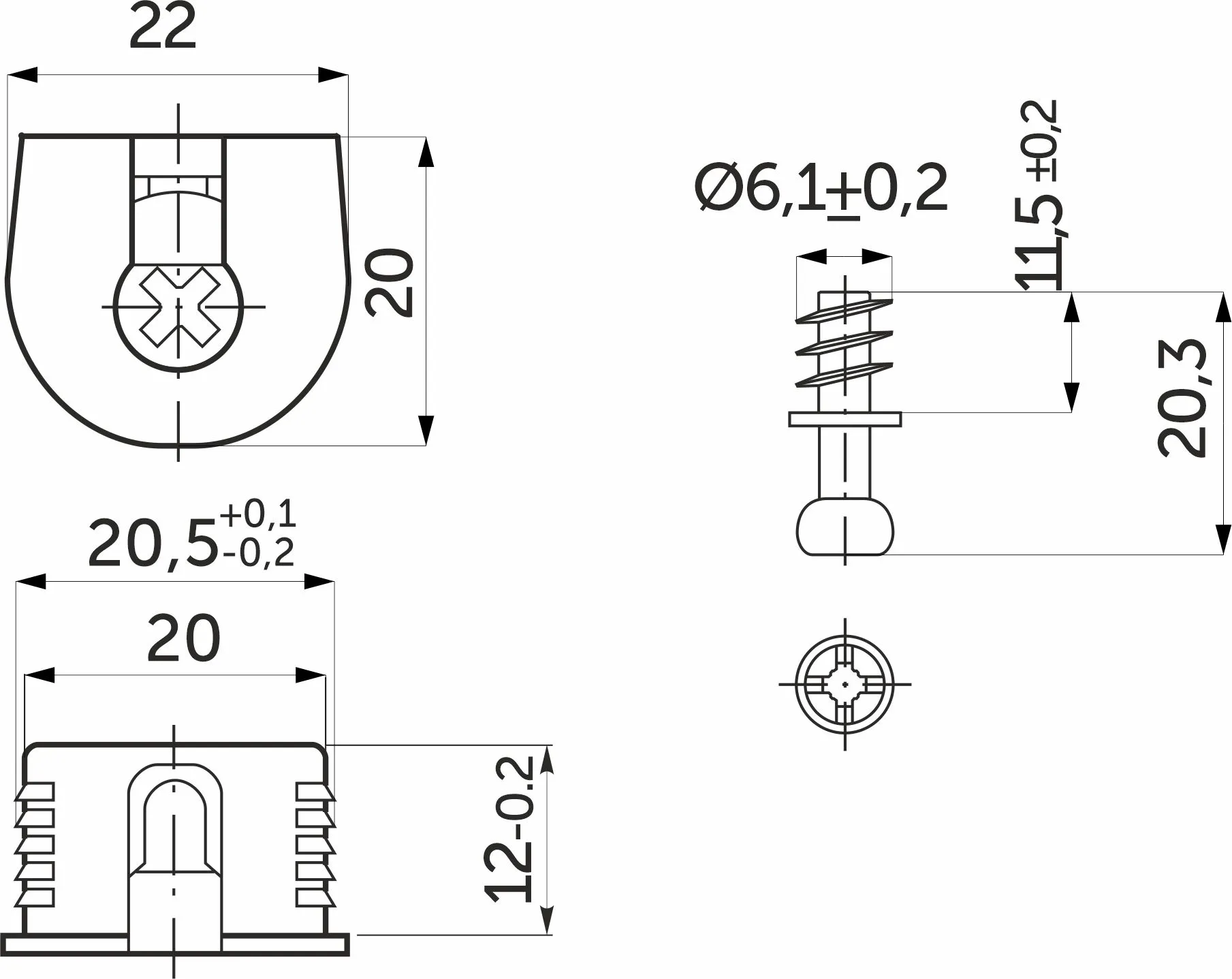 Эксцентриковая стяжка быстрого монтажа 20 мм белая + шток 6*7мм (уп/0,2тыс.шт) GRIDLI