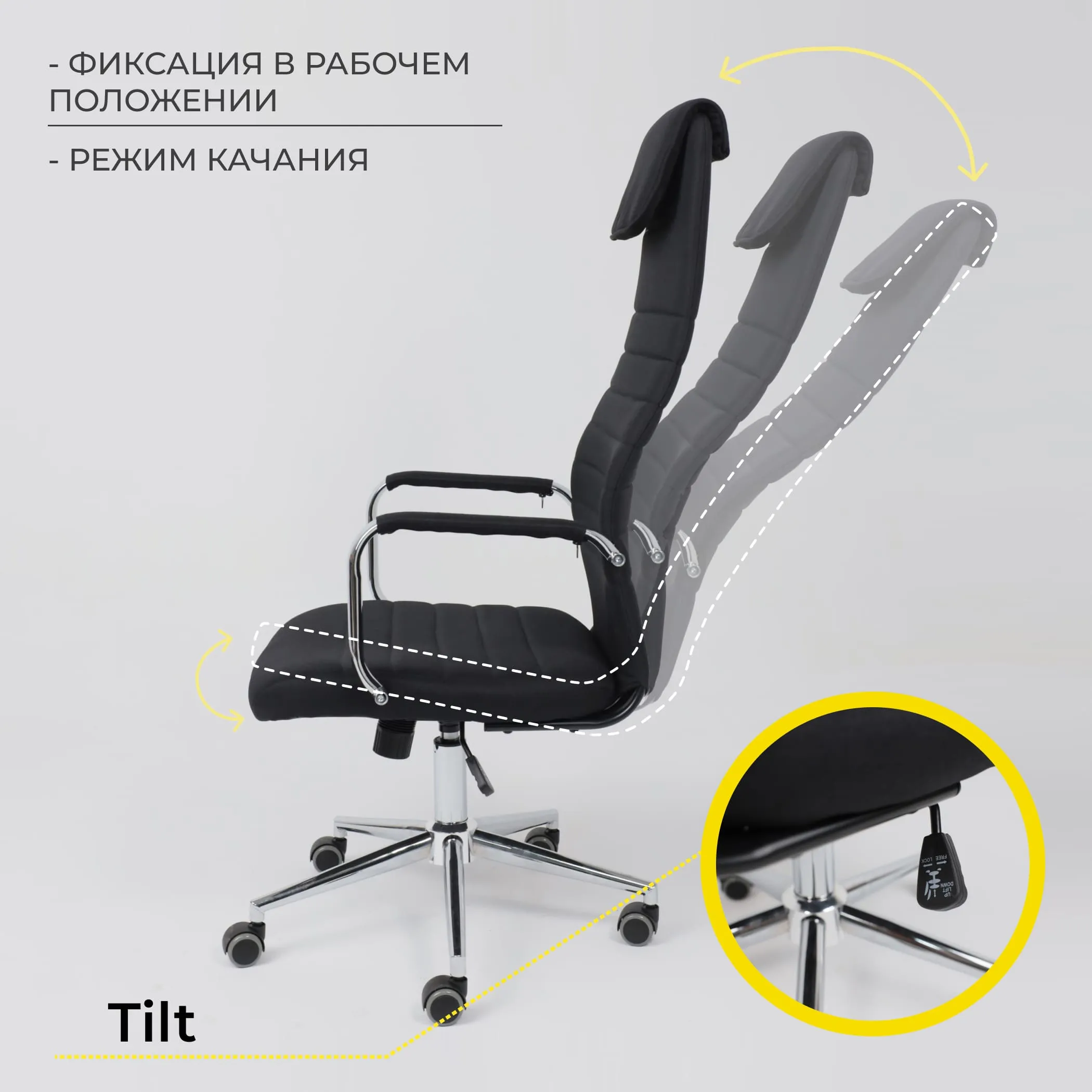 | Механизм регулировки | Tilt Tilt - позволяет зафиксировать положение сидящего в кресле, также есть управление жесткости наклона: мягче или жестче наклон под вес пользователя. Управление механизмом Tilt осуществляется с помощью одного рычага, расположенного в нижней части под сиденьем кресла. |