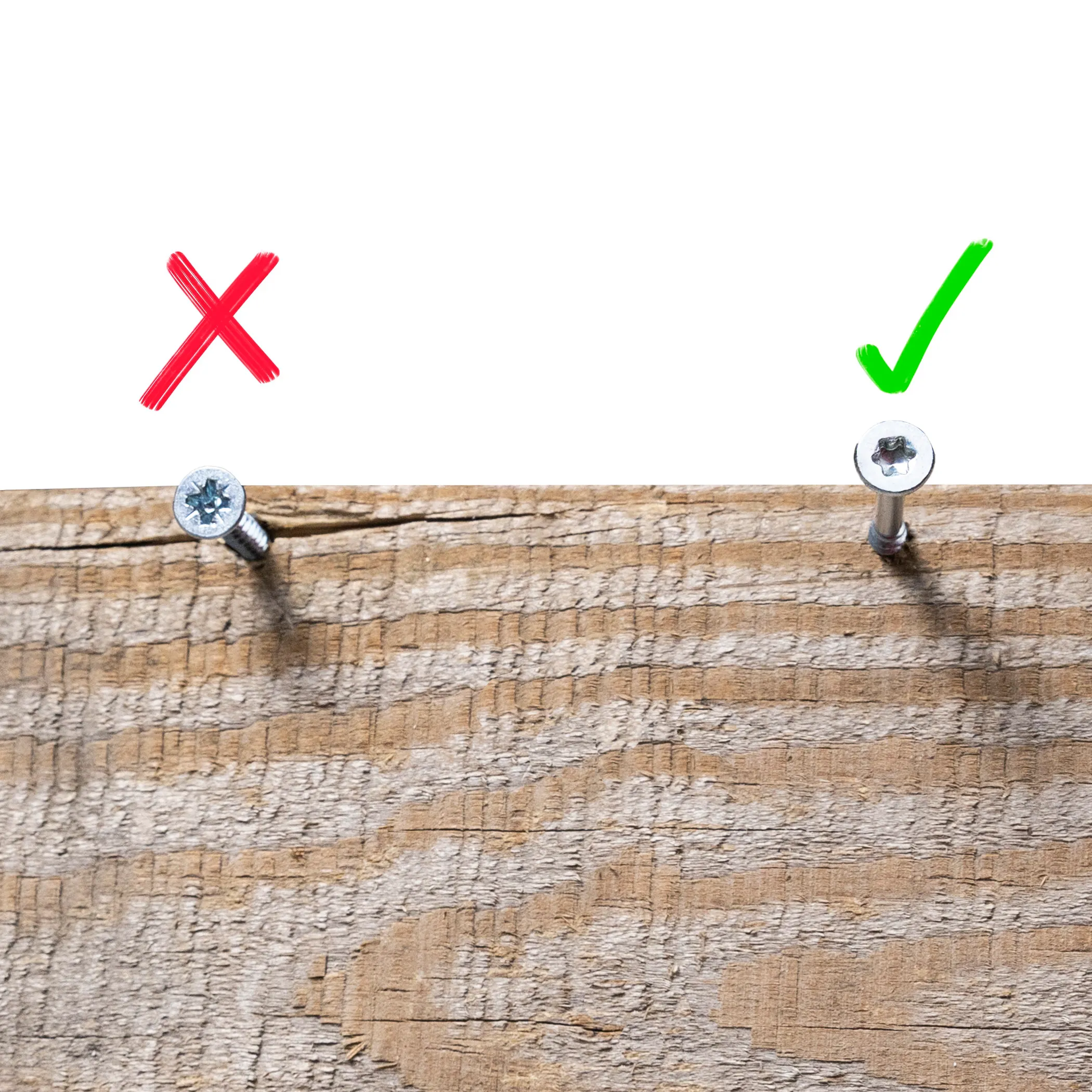 Благодаря шести зенкующим насечкам под головкой шуруп вкручивается в дерево заподлицо, создавая аккуратный, эстетичный вид. - Максимальная прочность соединения