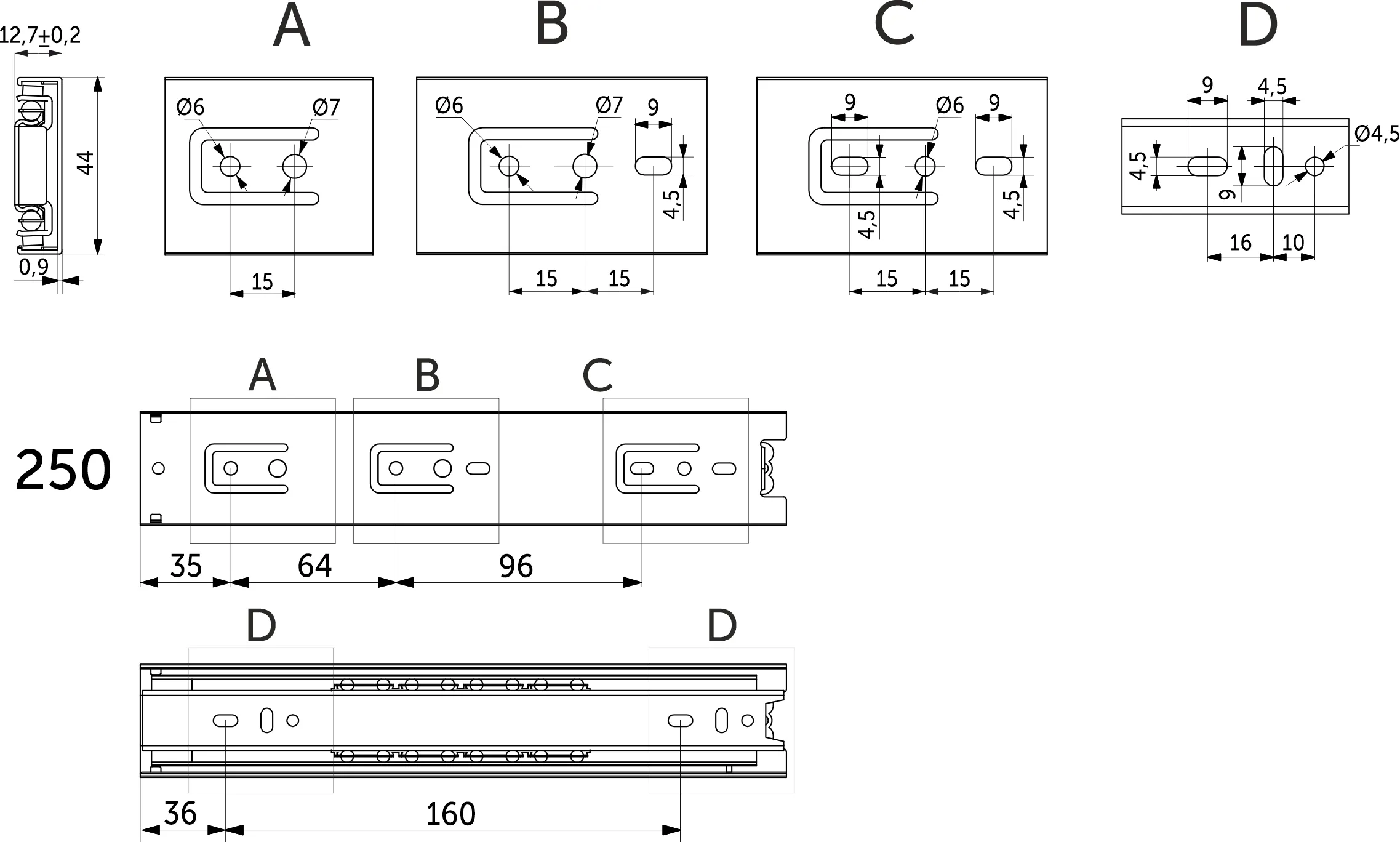 | Длина направляющей (L, мм) | 250 |