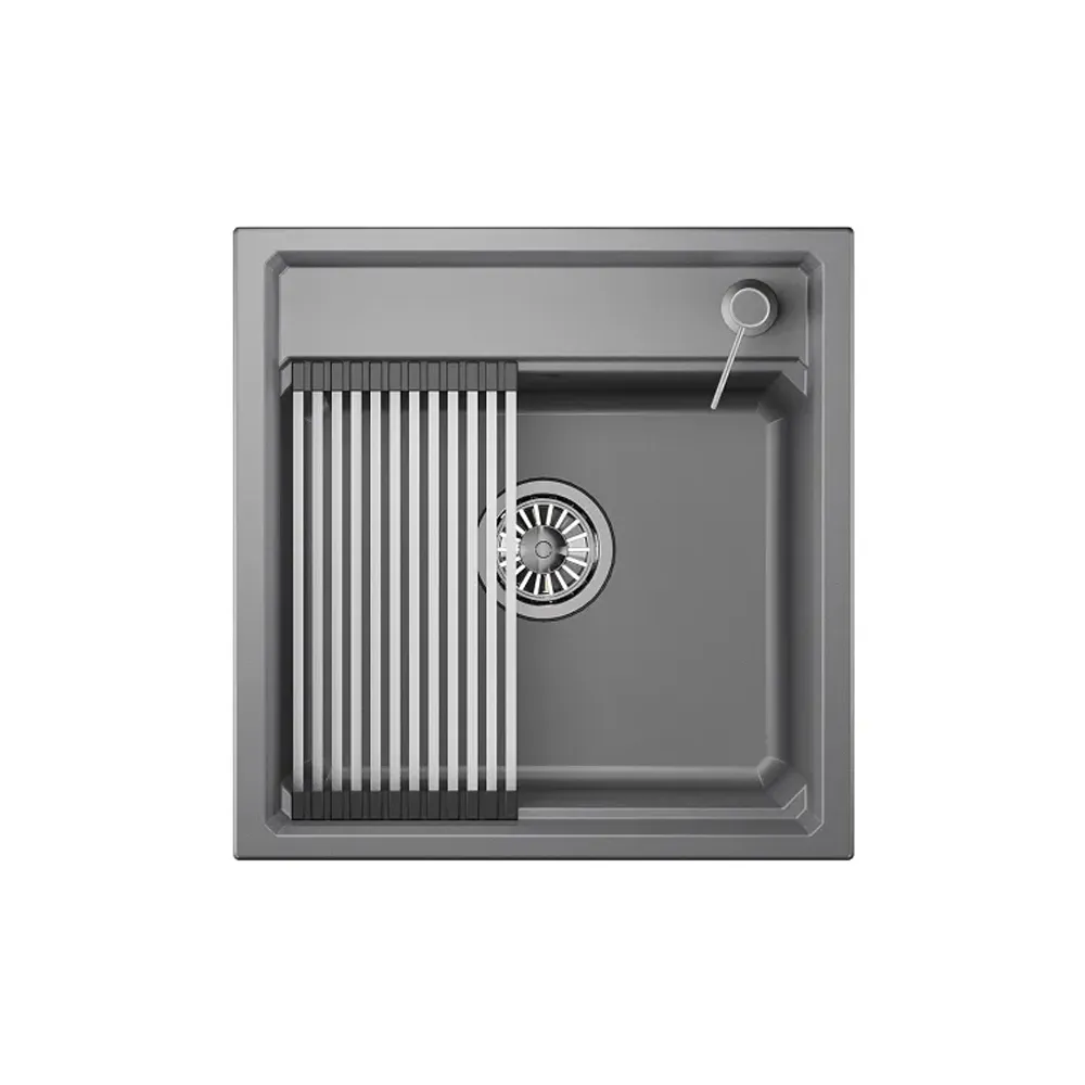 Подходит для установки в шкаф размером 500 мм. Для удобства использования в чаше имеется площадка для установки ролл-мата или разделочной доски. В комплекте: сифон с отводом для бытовой техники, дозатор для жидкого мыла (нержавейка) и ролл-мат.
