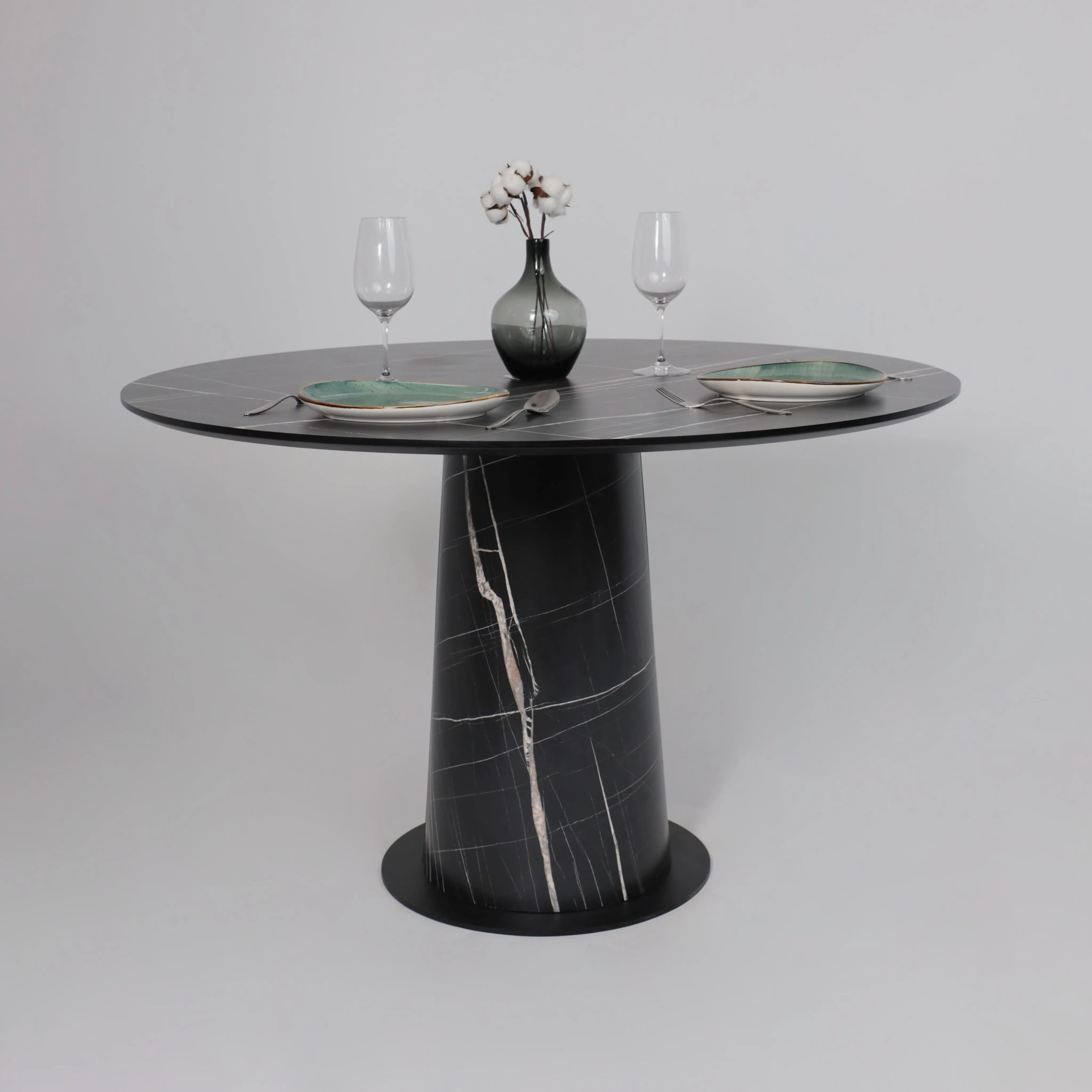 Стол TIRK RADIAL-94, раздвижной 94(126)х64, Дымчатая керамика/Чёрный