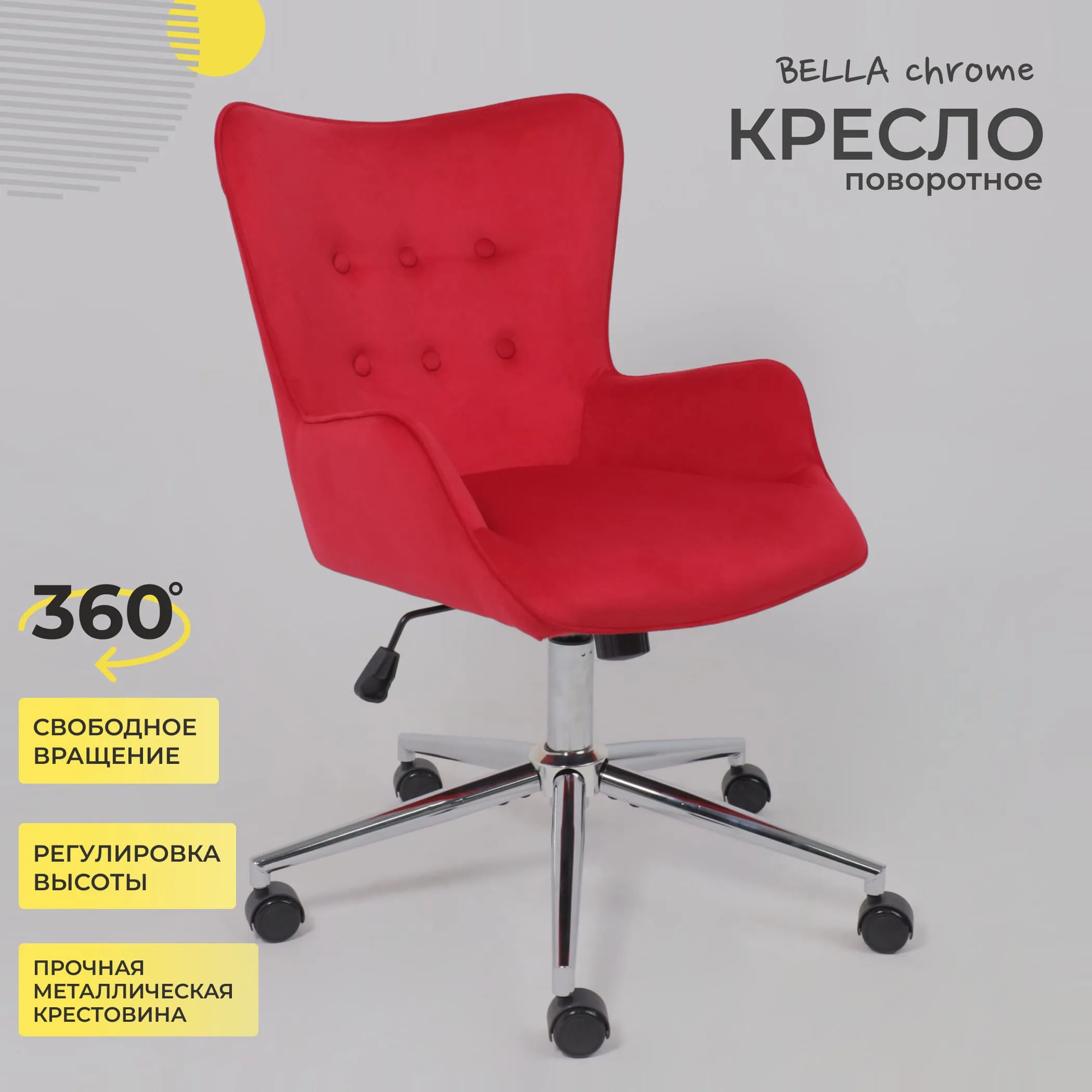 Кресло поворотное BELLA chrome, Velluto 37, велюр/пыльная роза