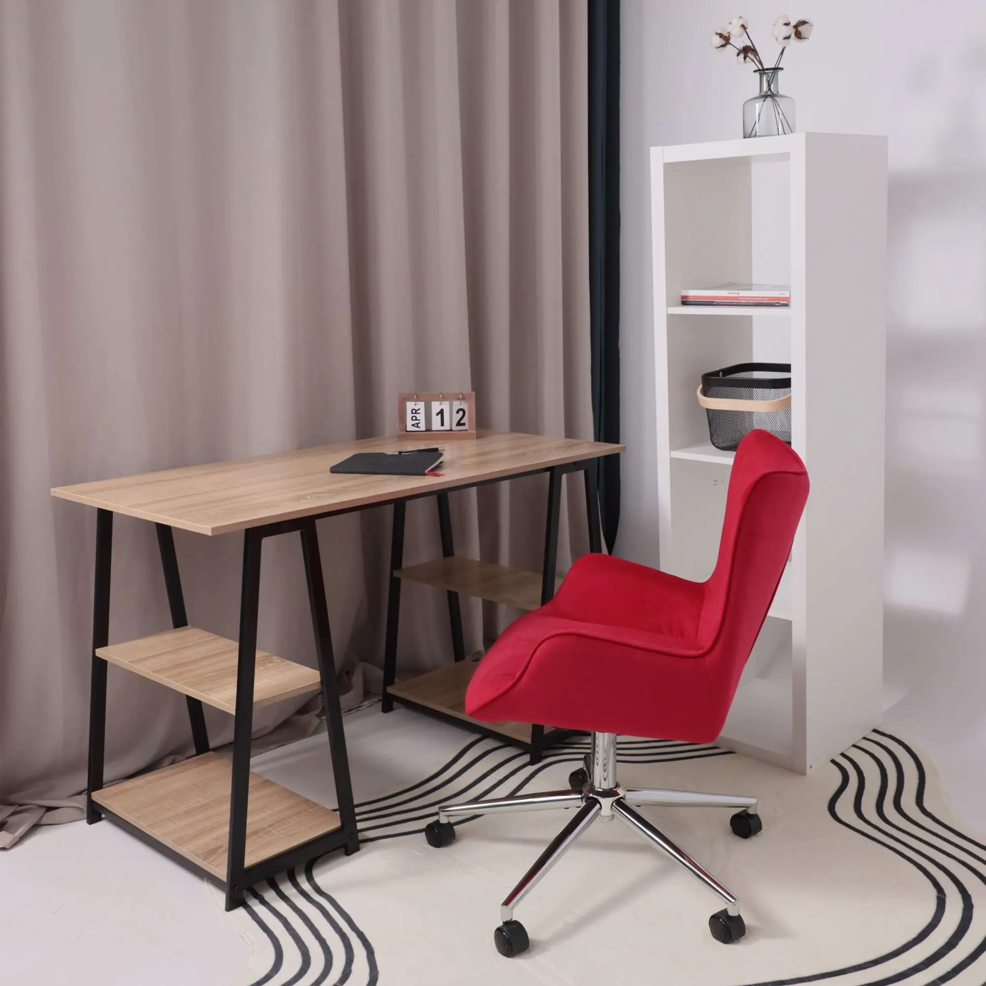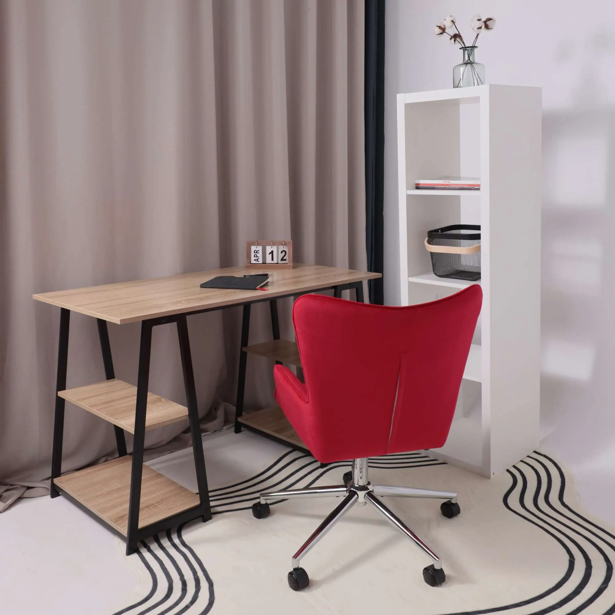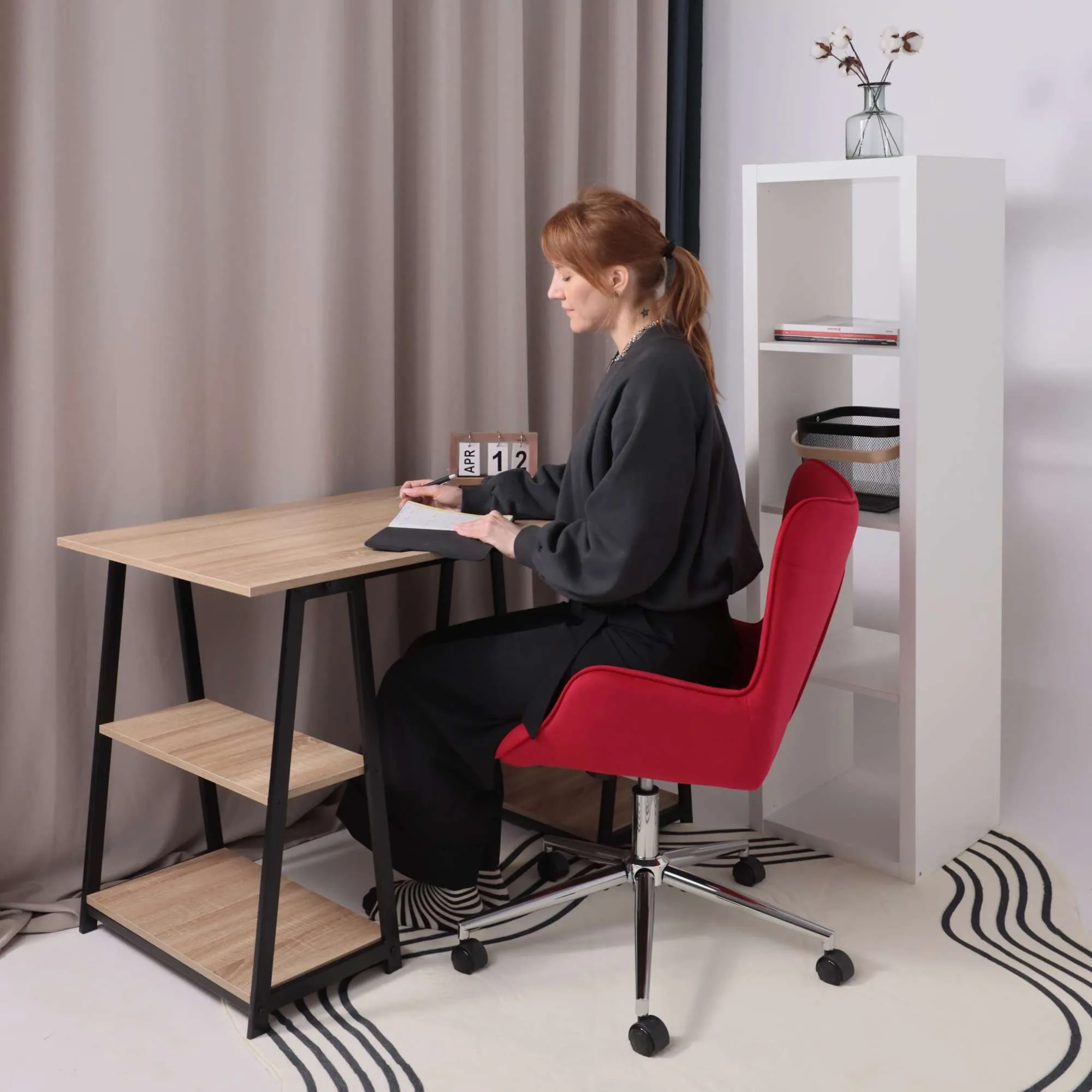 Кресло рабочее, поворотное RICCI NEW, white, ткань, черно-белая диор