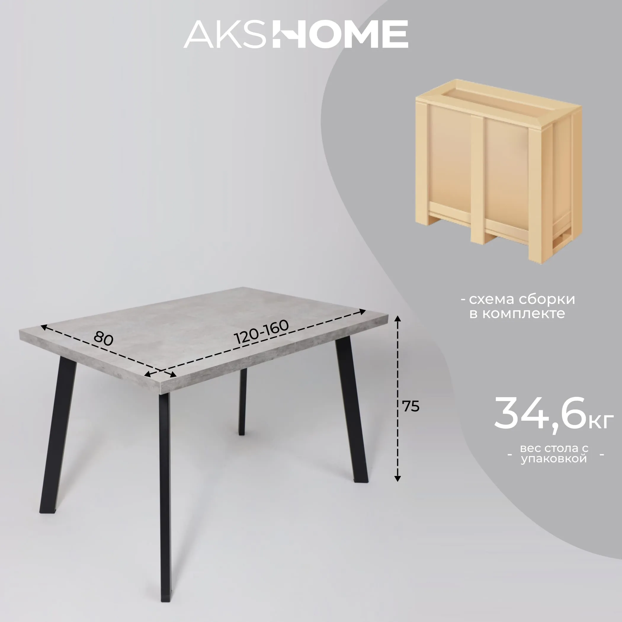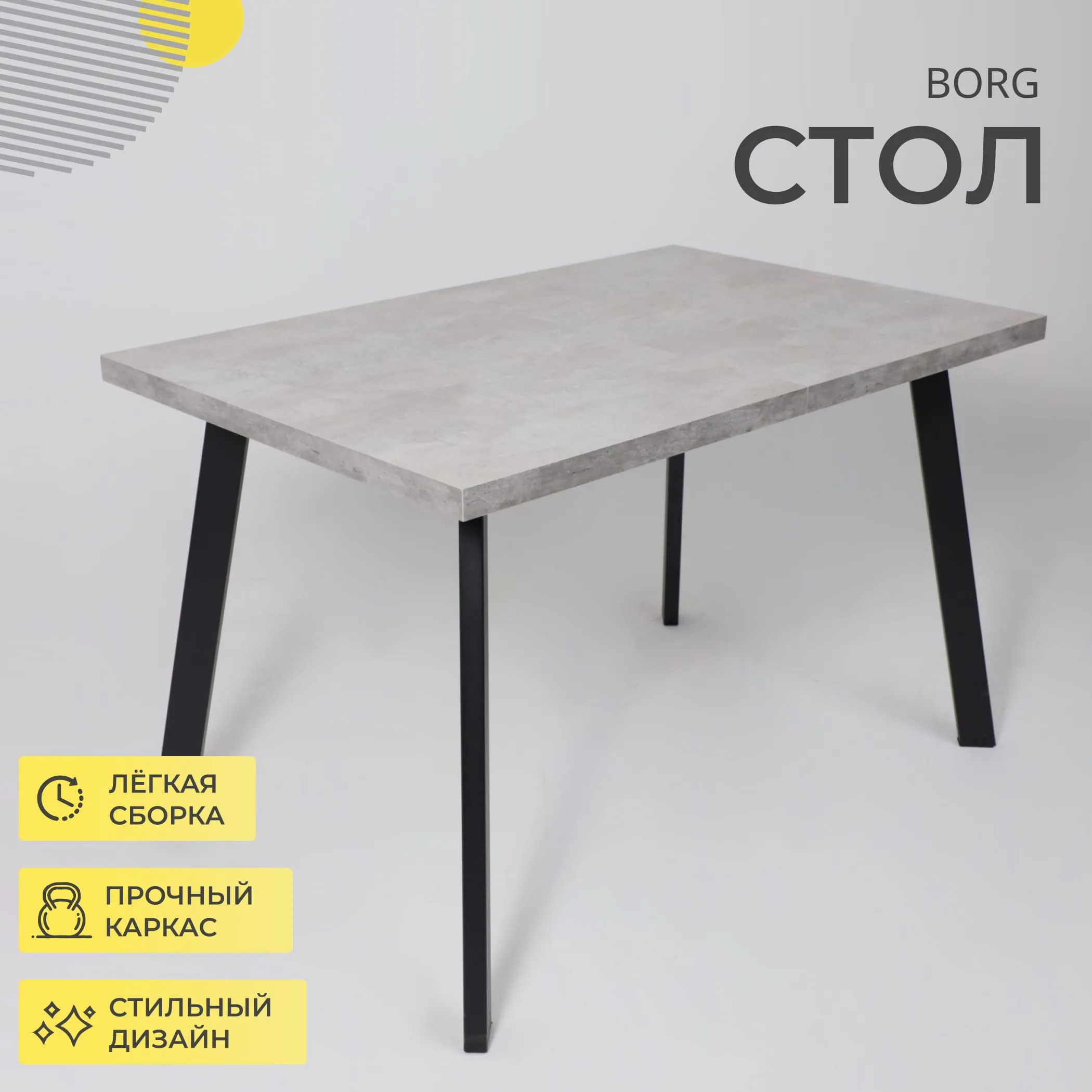 Стол BORG-120, раздвижной 120(160)х80, Серый сланец/Чёрный