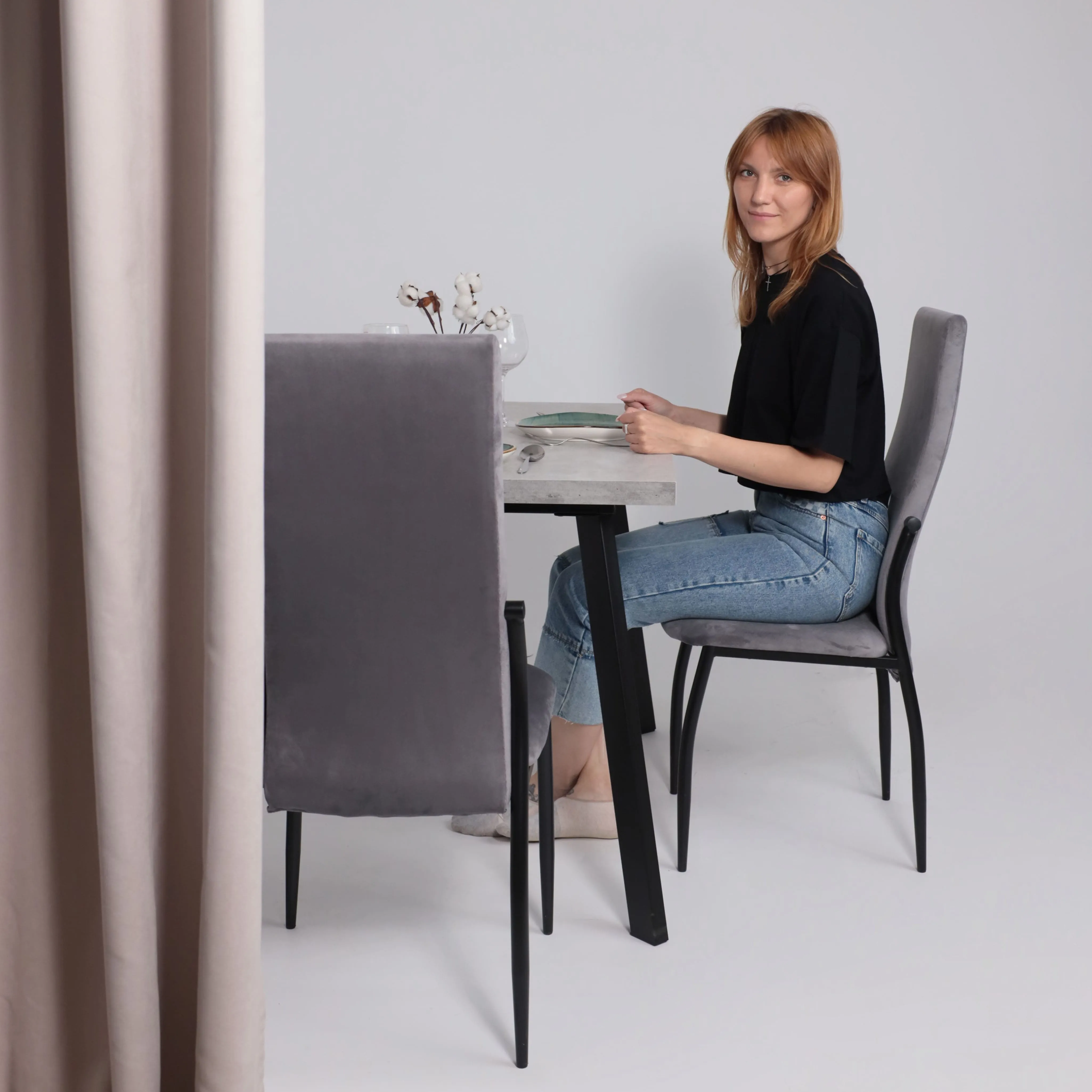 Стол TIRK RADIAL-94, раздвижной 94(126)х64, Дымчатая керамика/Чёрный