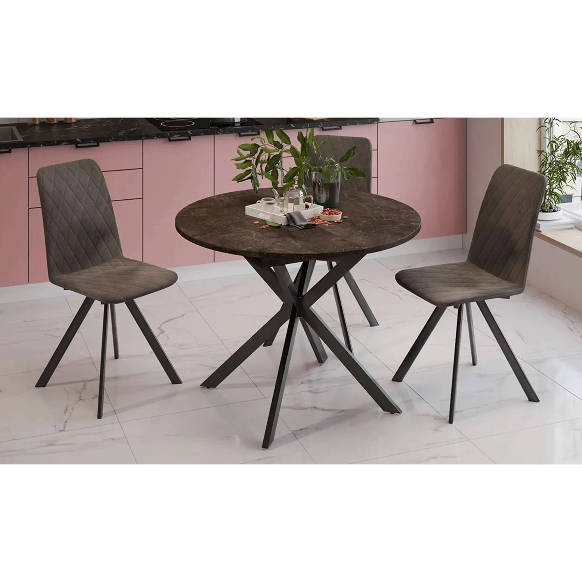 Стол TIRK RADIAL-94, раздвижной 94(126)х64, Дымчатая керамика/Чёрный