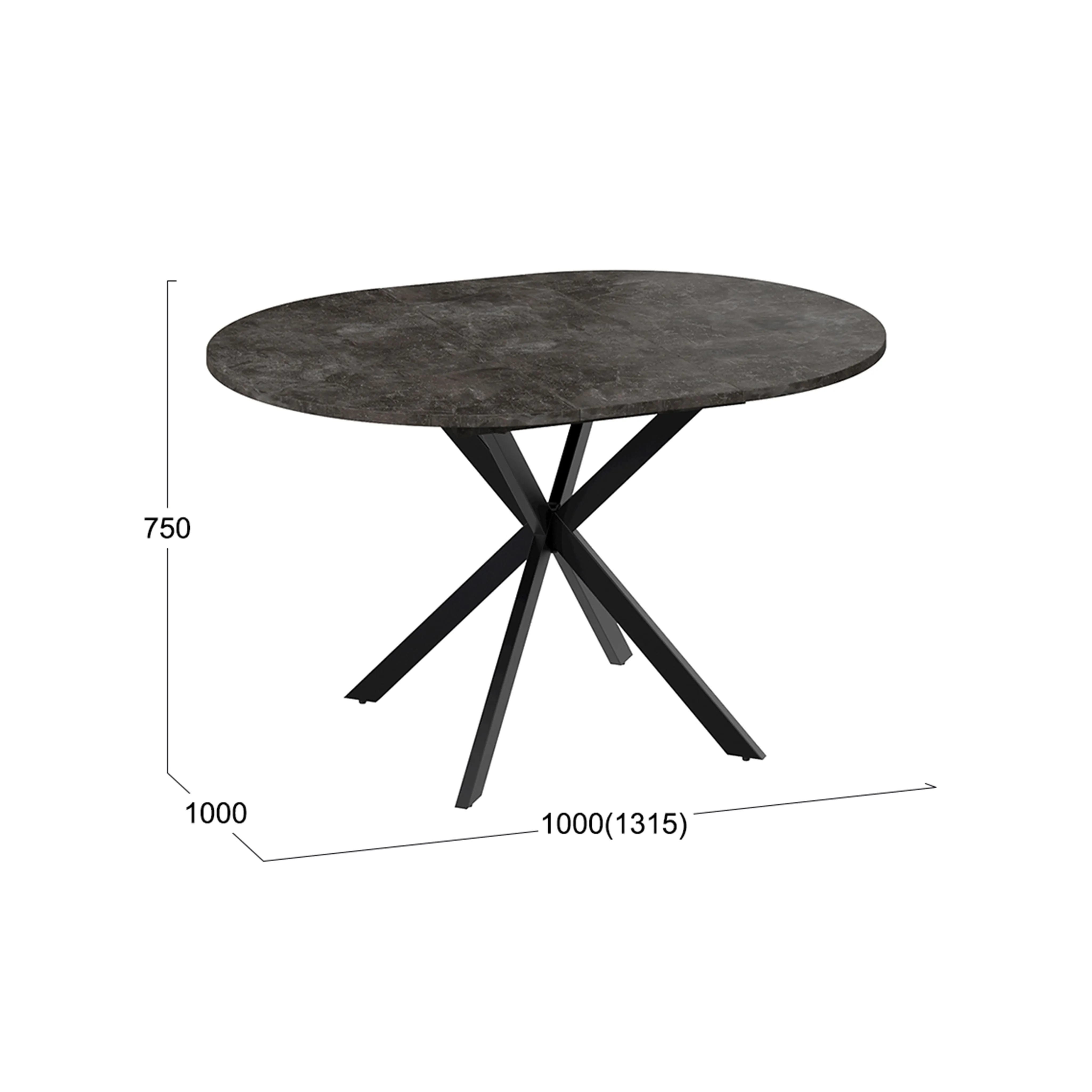 Стол раздвижной МЭДИСОН Тип 1, 1000(1315)х1000х750, черные опоры/ателье темный