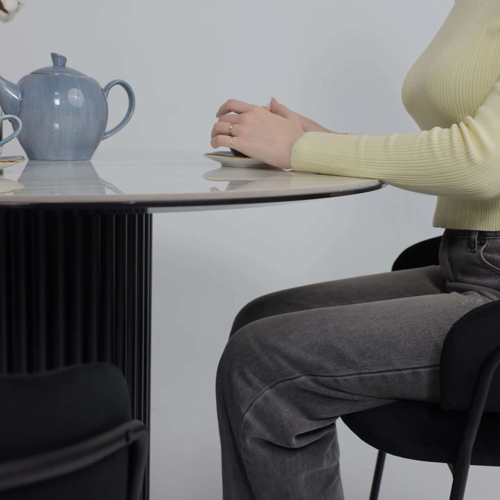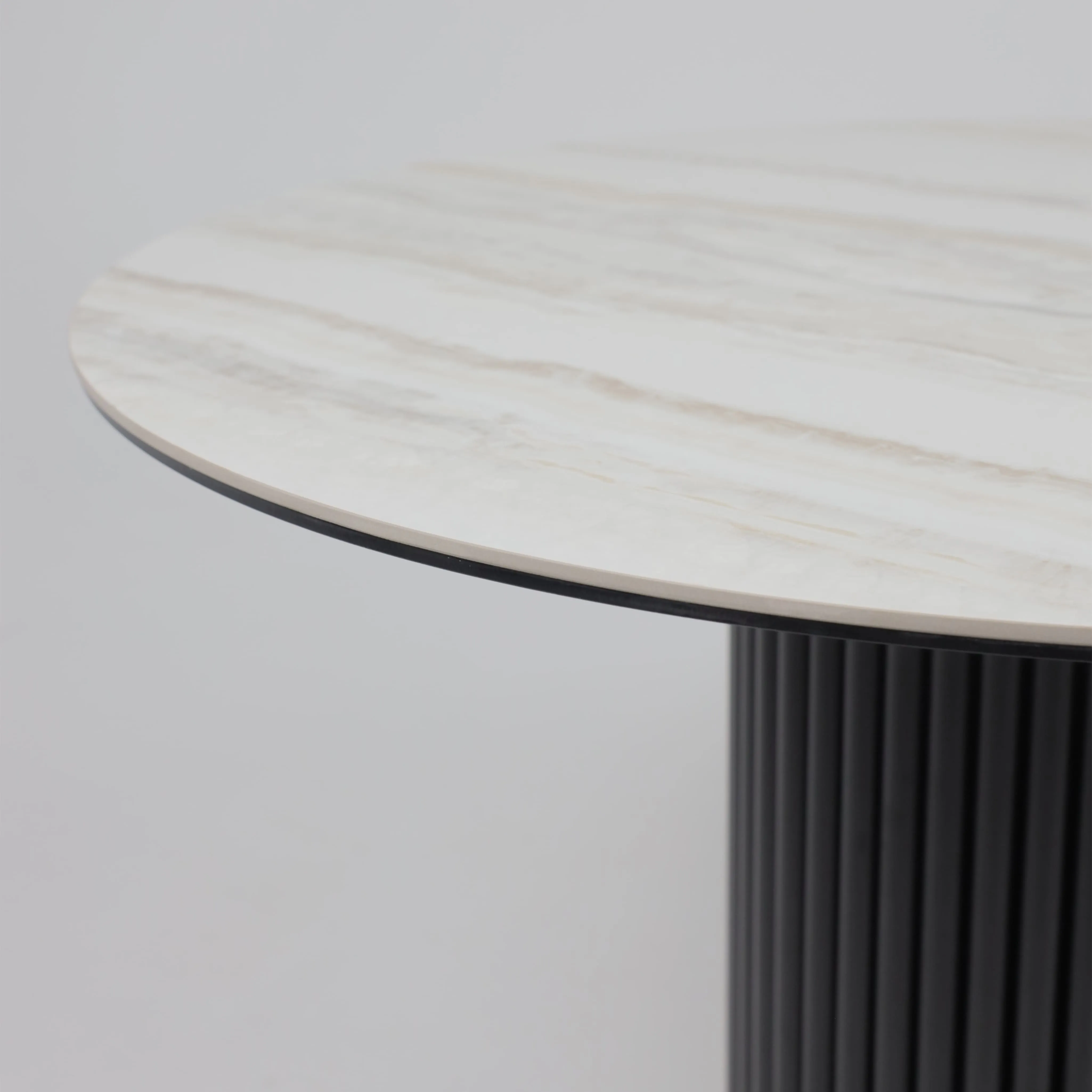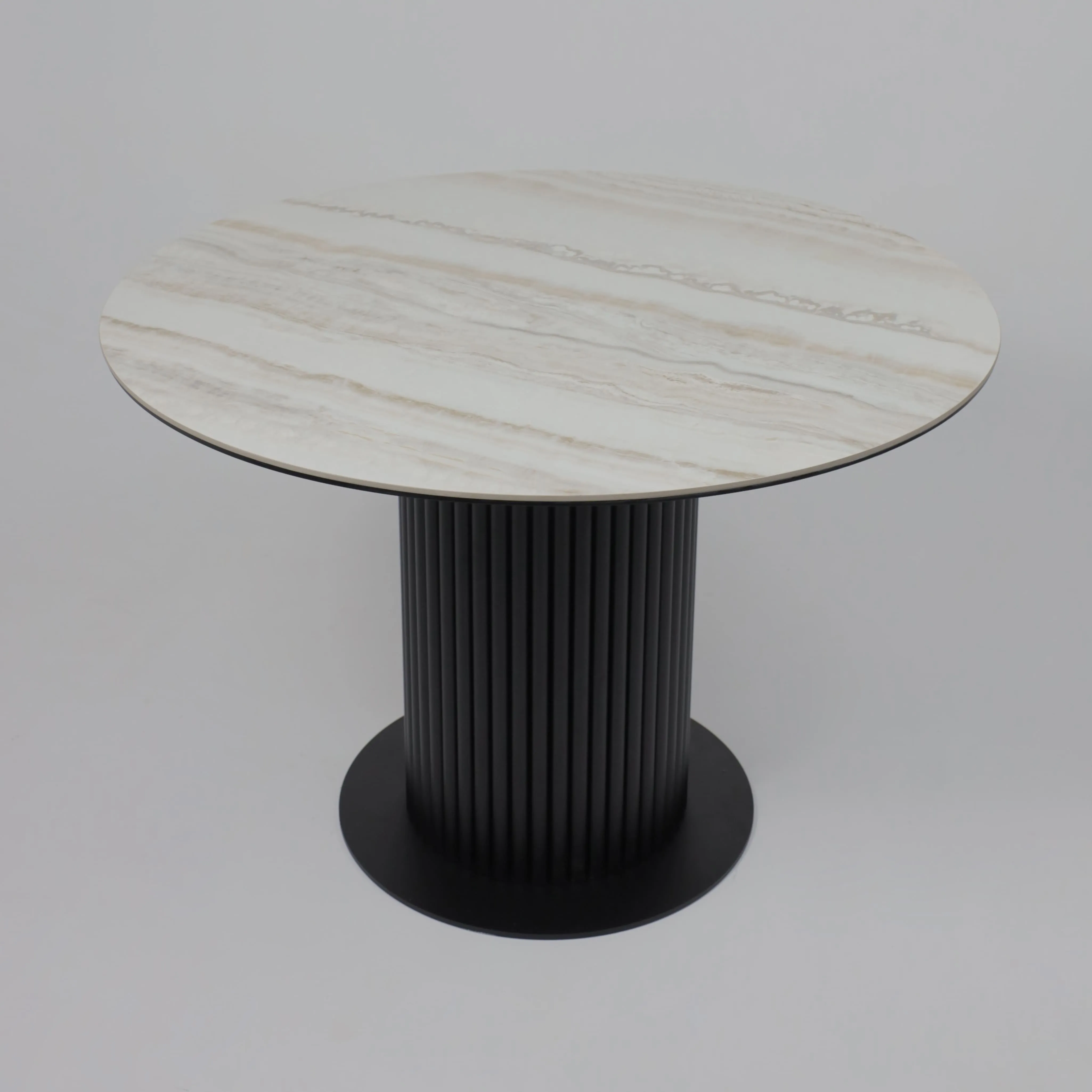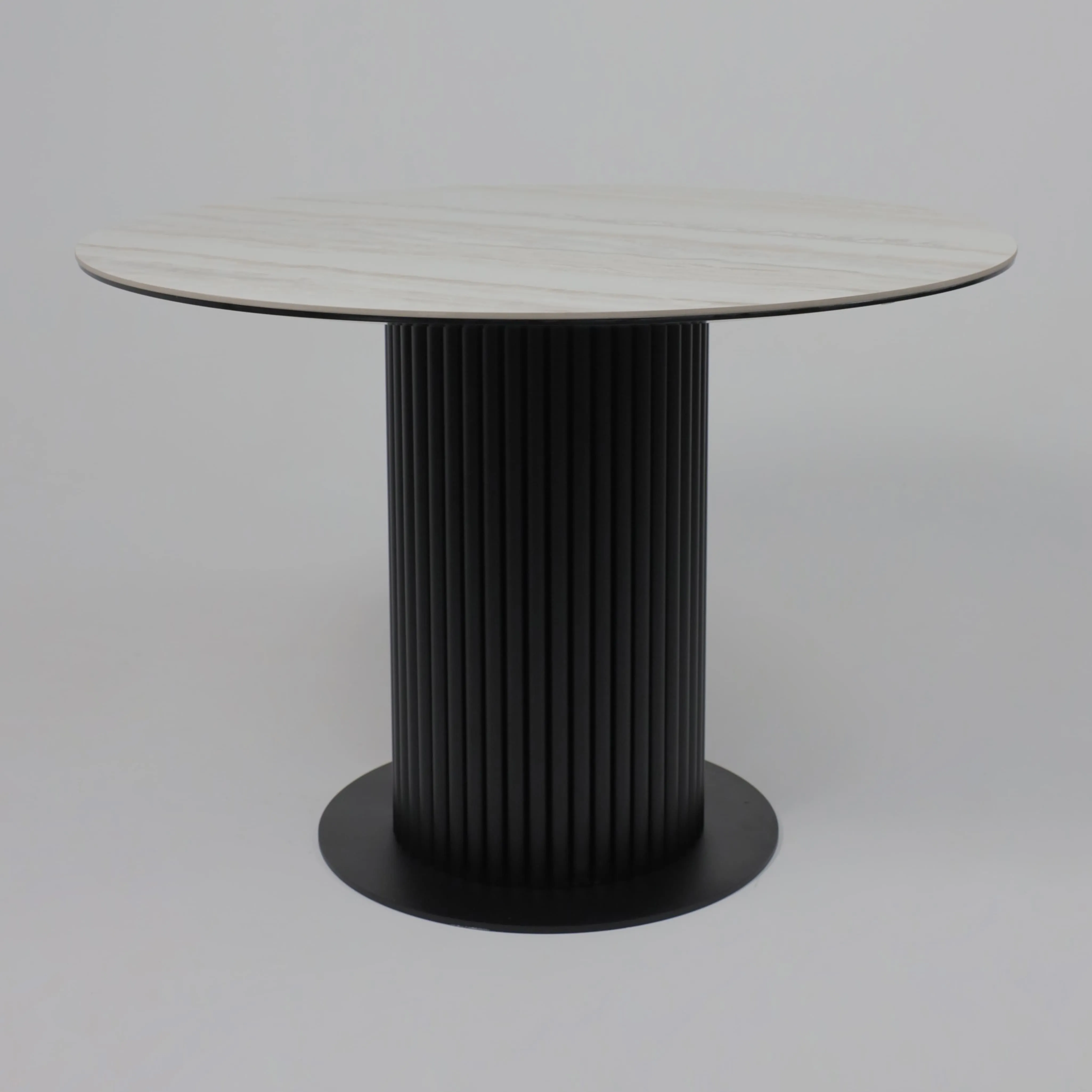 Стол РАУНД,керамика 2 кат. Д 1100, Камень белый Elyt pulido/ Черный матовый