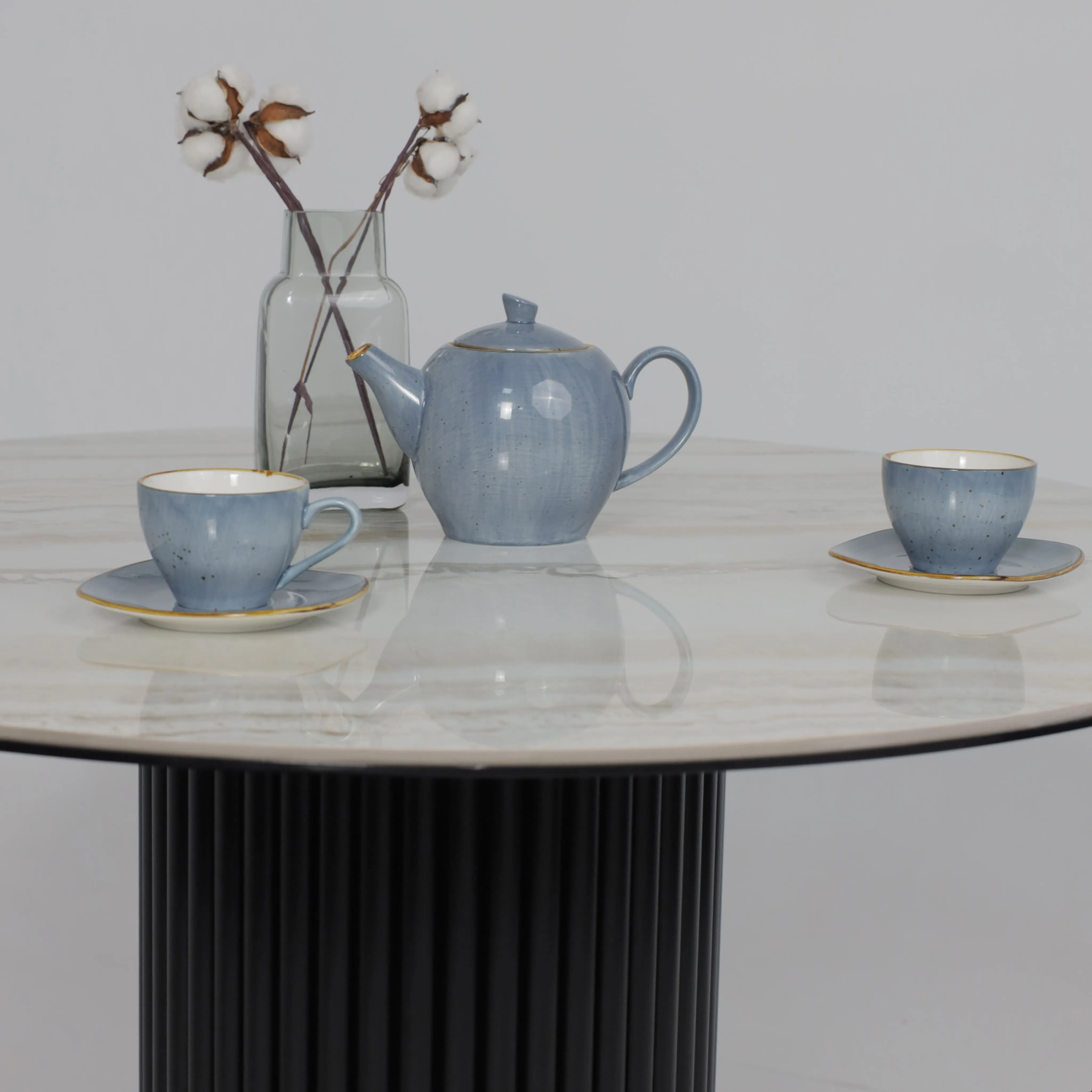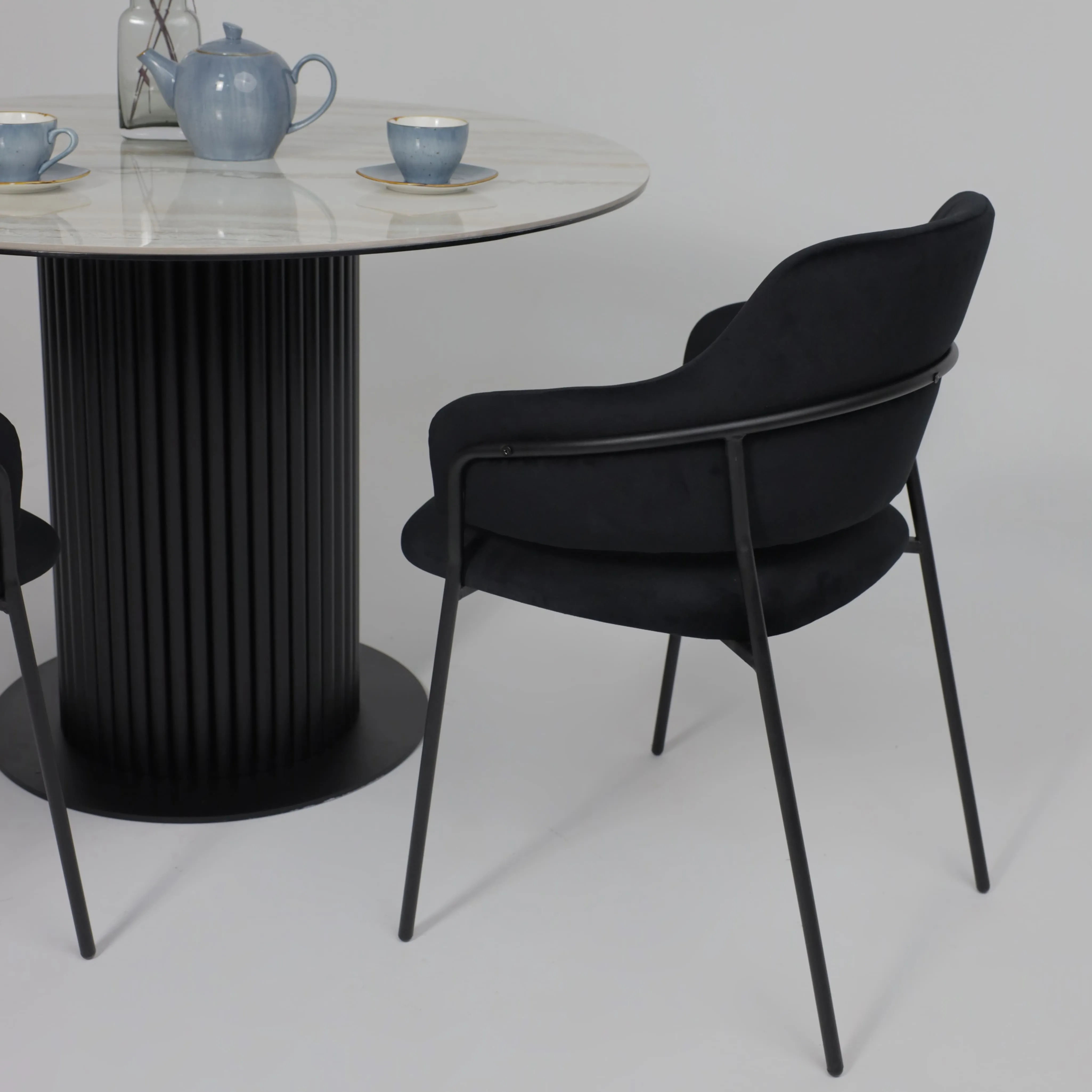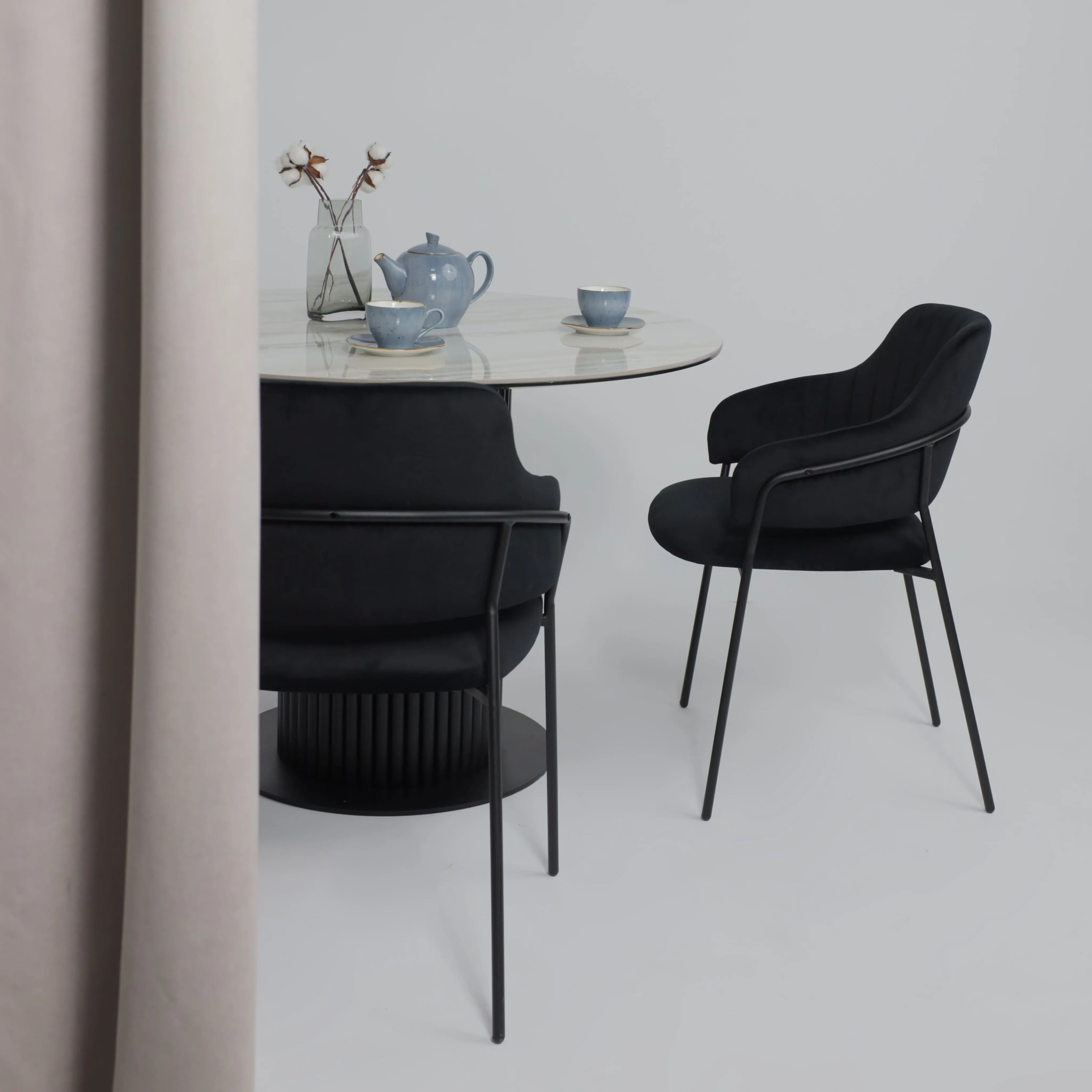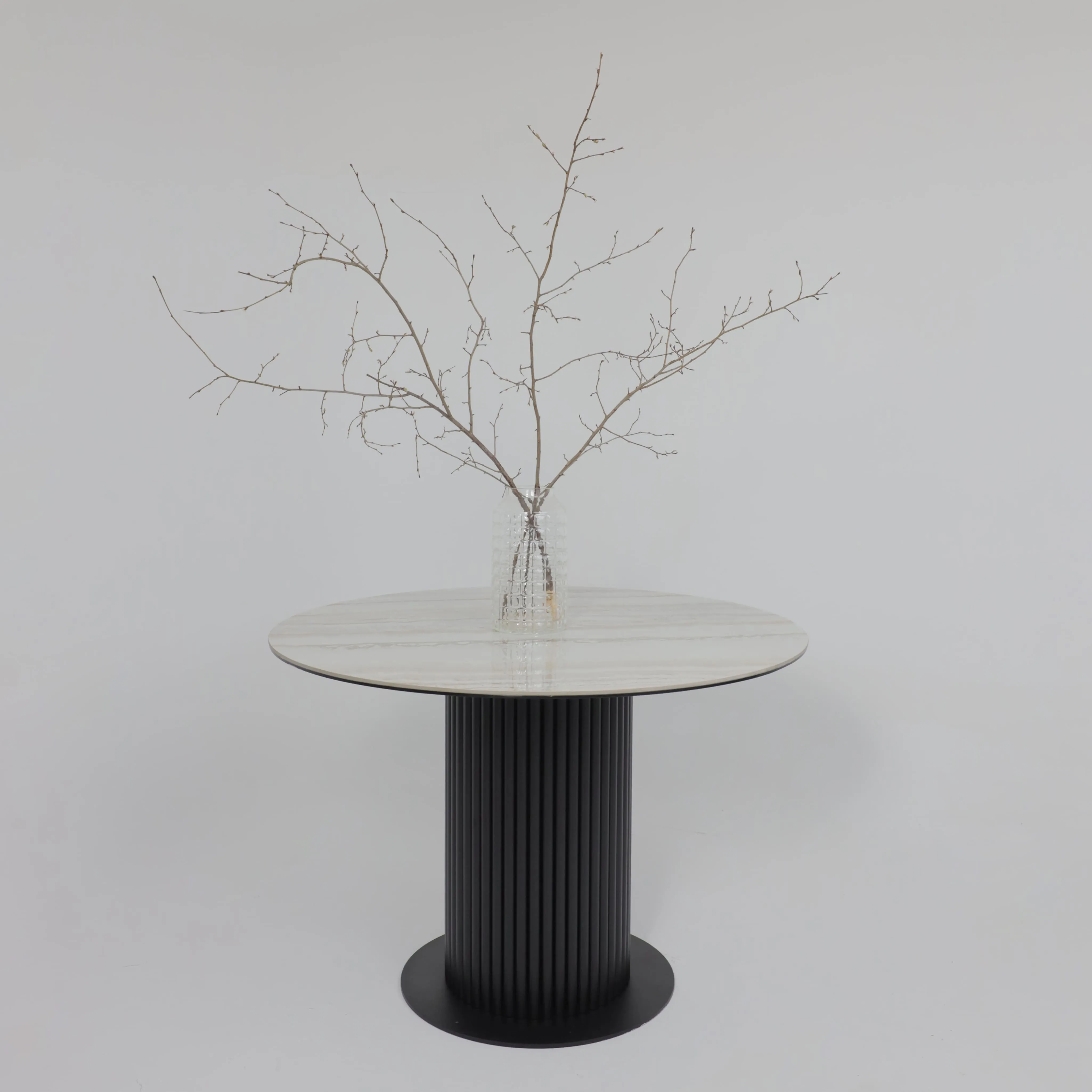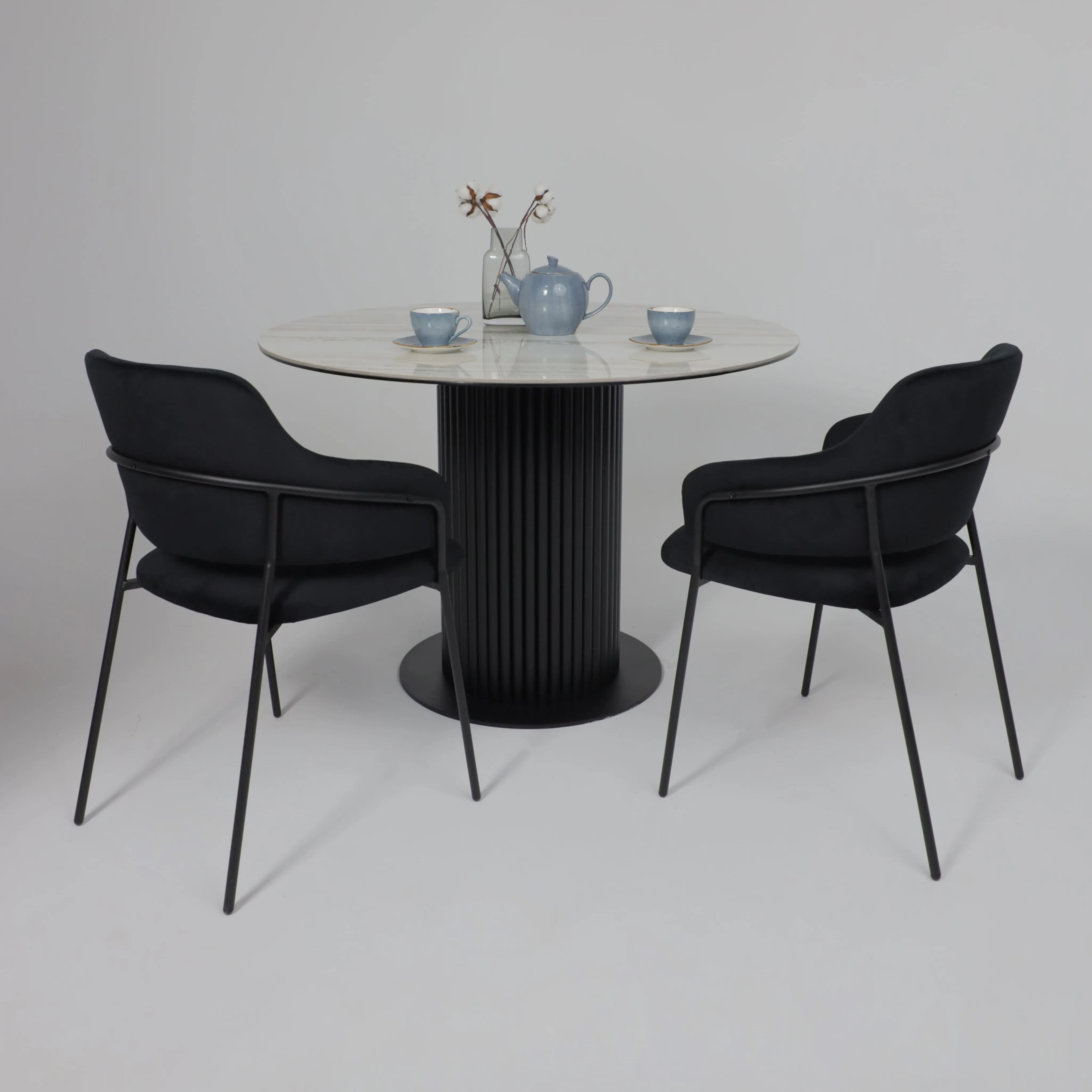 Стол РАУНД,керамика 2 кат. Д 1100, Камень белый Elyt pulido/ Черный матовый