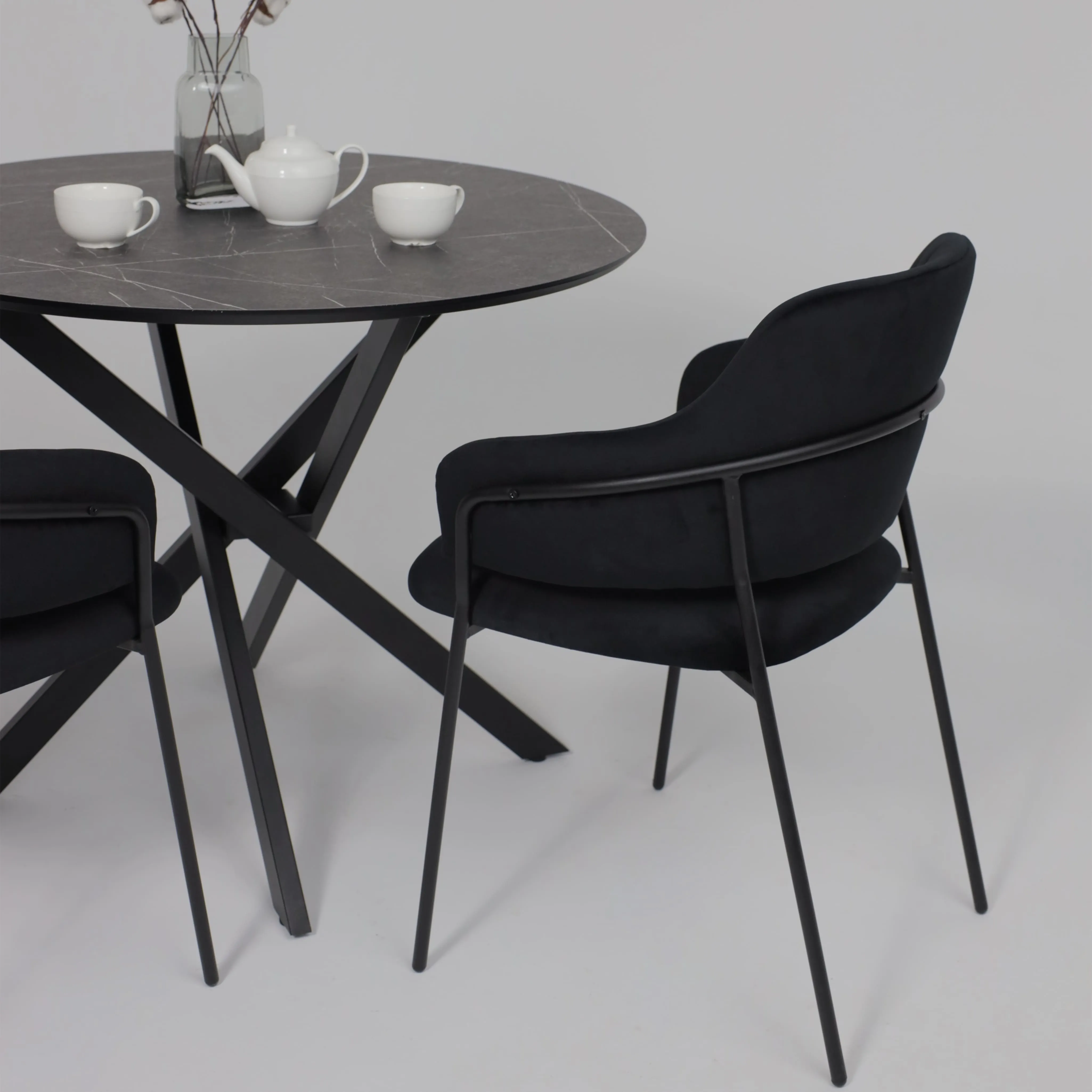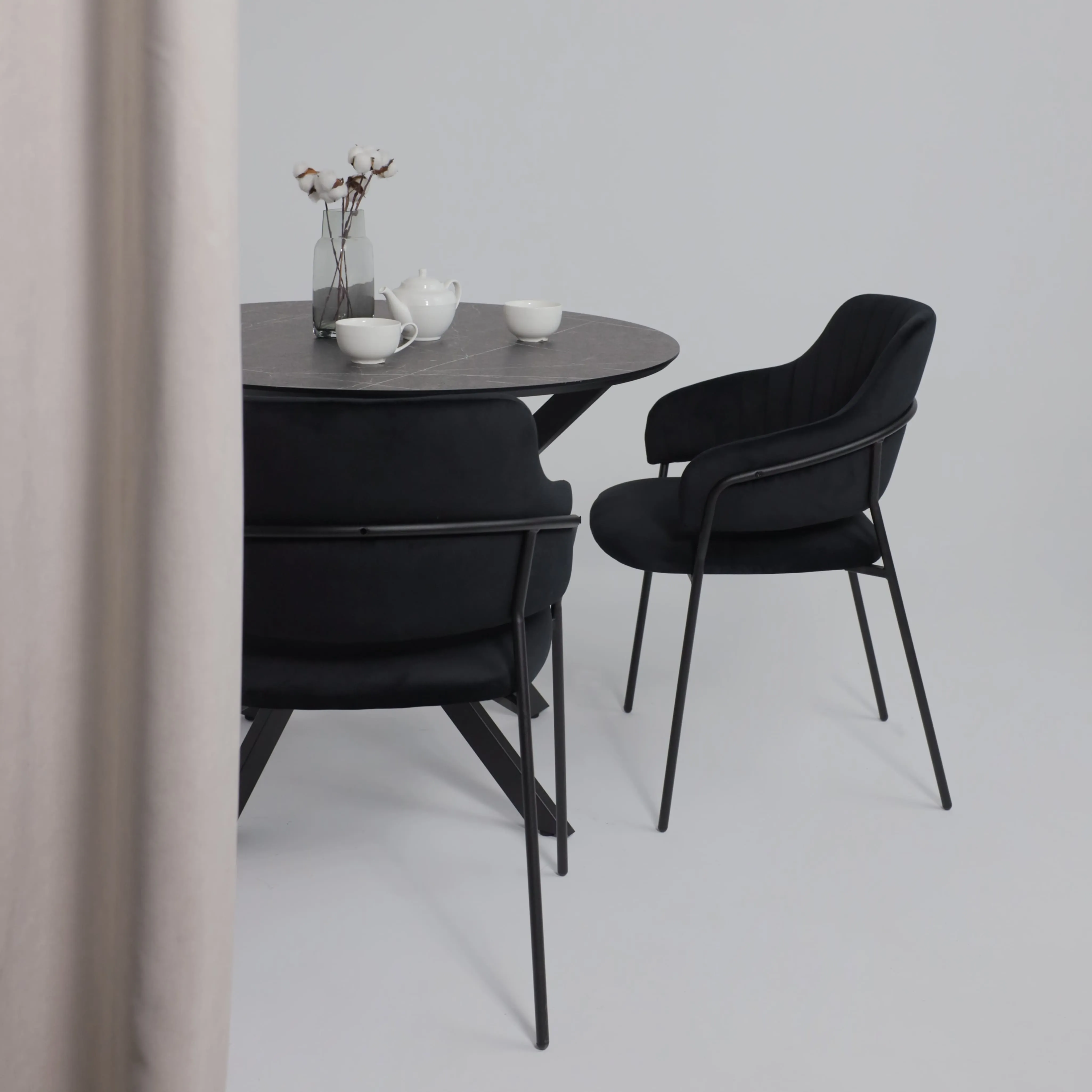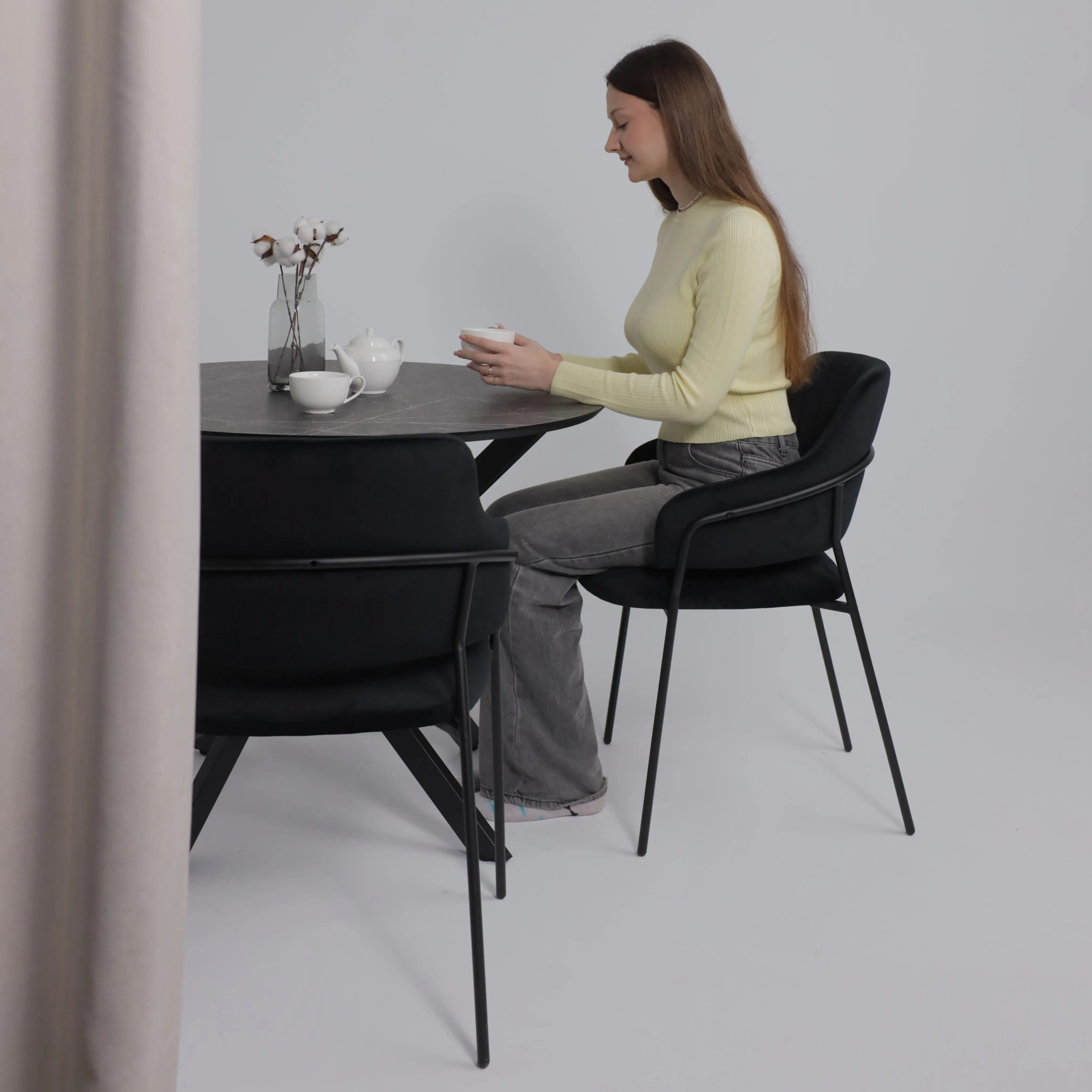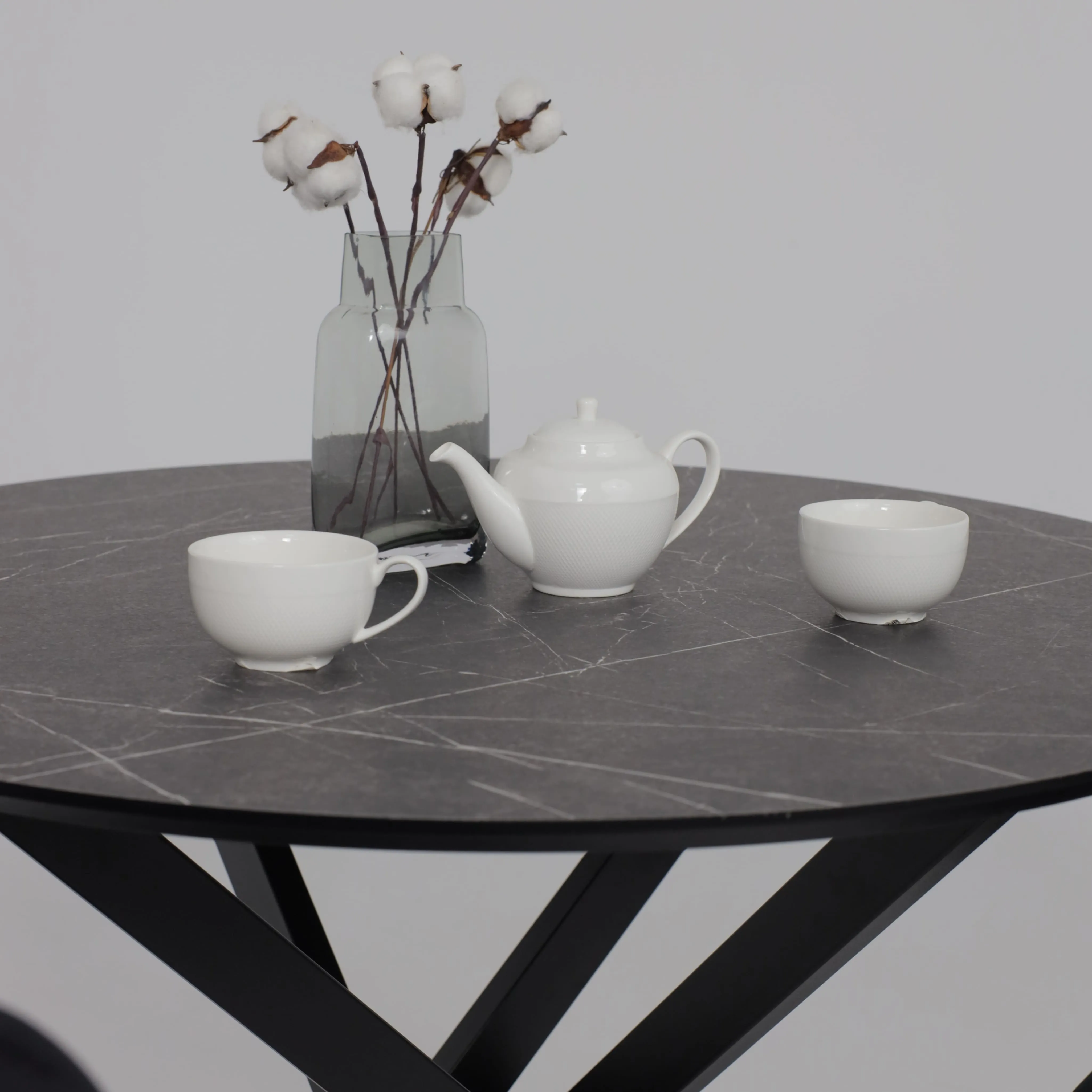 Стол RONDO М-100, круглый раздвижной 100(135), ДЫМЧАТАЯ КЕРАМИКА/Черный
