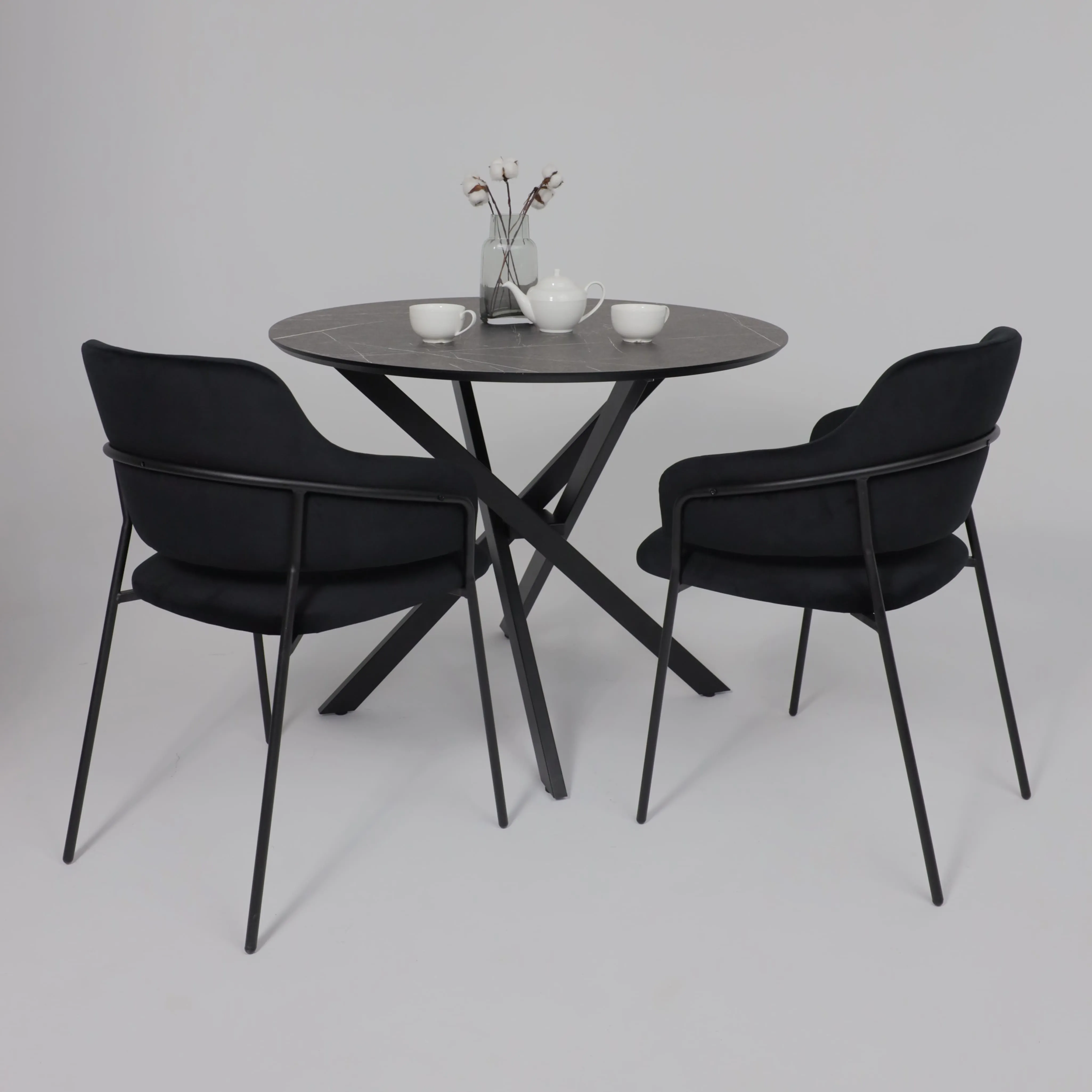 Стол КОРСИКА, фотопечать 1200(1515)*800, Мрамор черный 9/Черный матовый