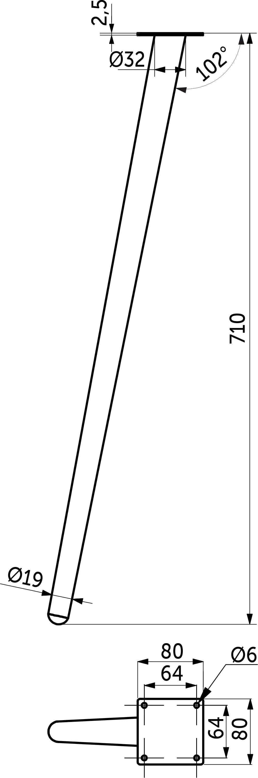 Опора меб. конусная h720 наклонная, черный AKS