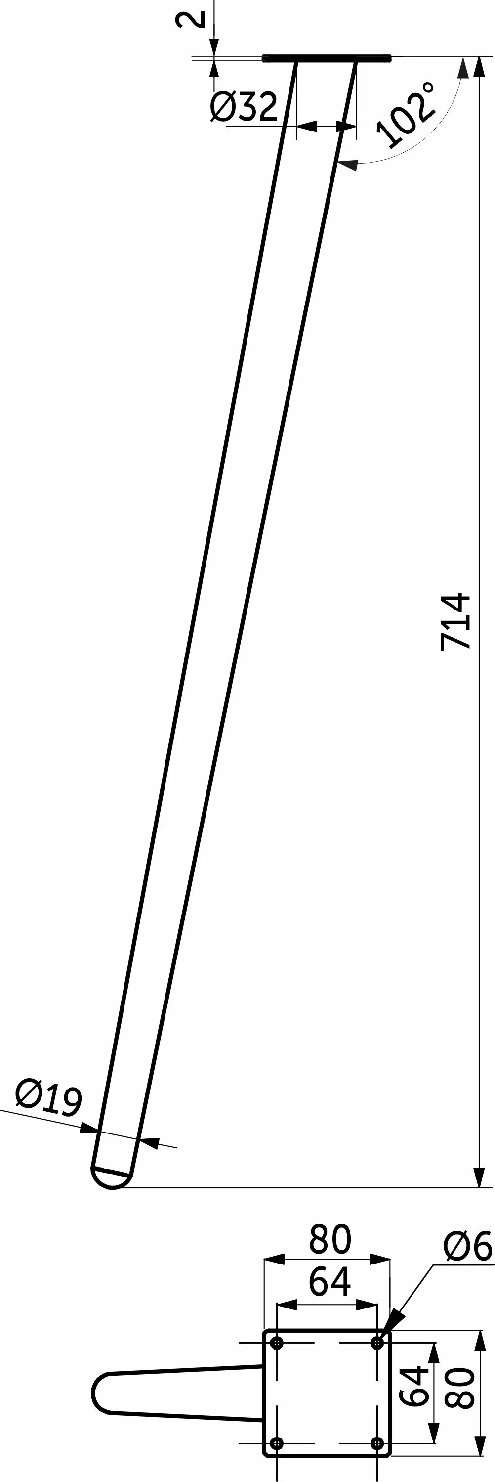 Опора металлическая наклонная для столов. Цвет - черный. Материал - сталь. Высота - 714 мм.