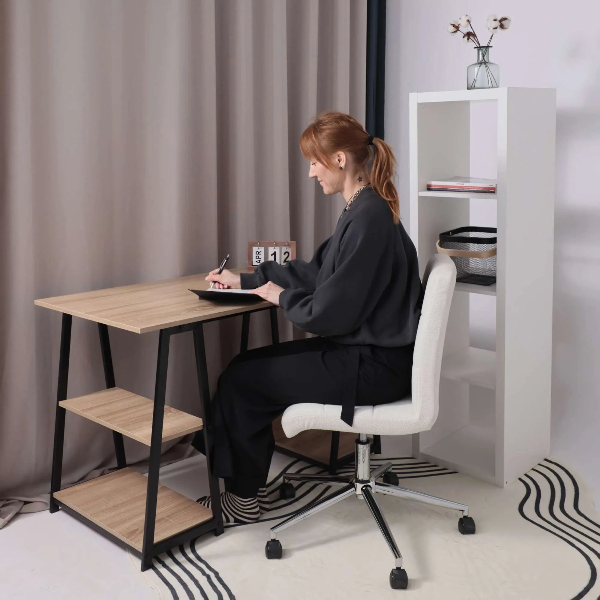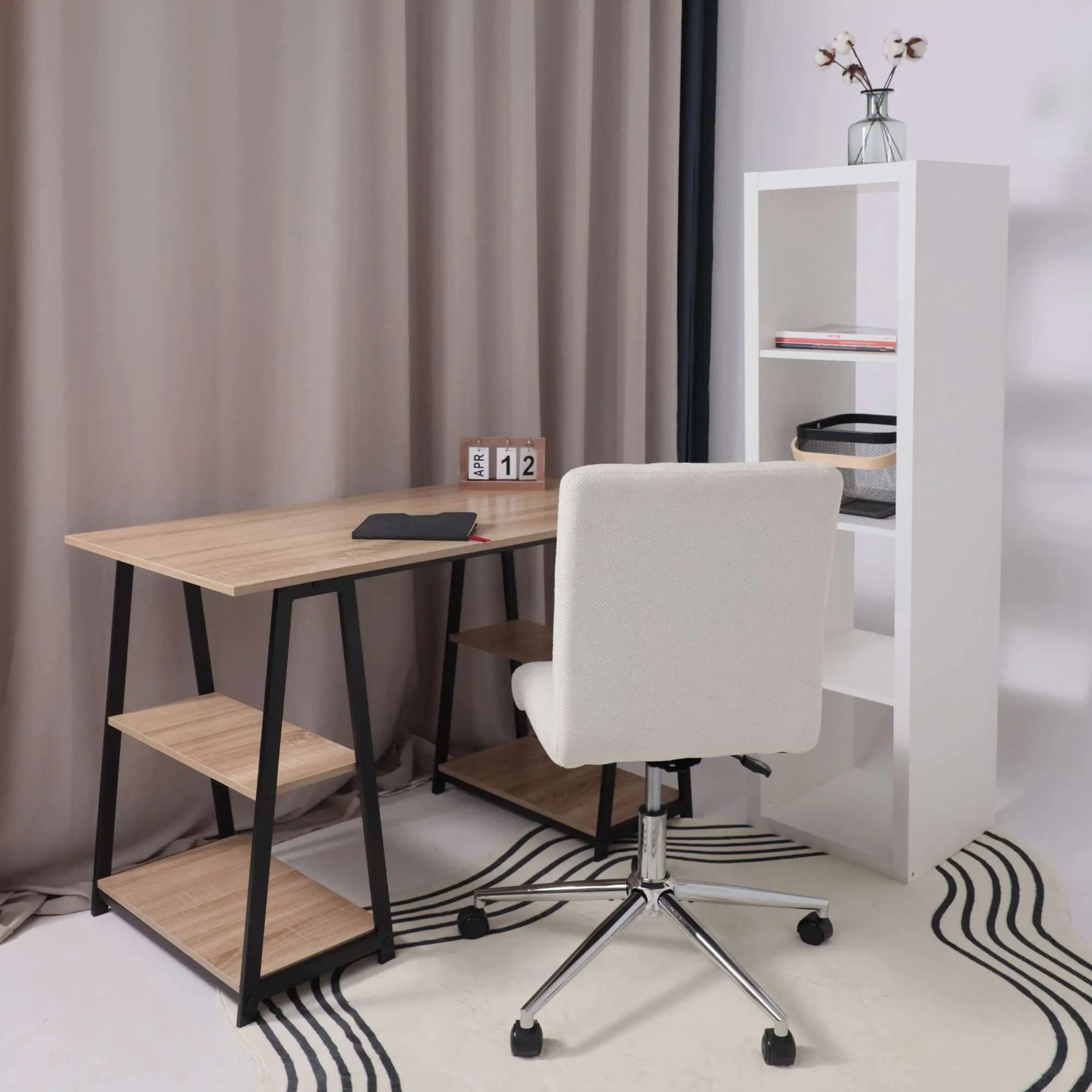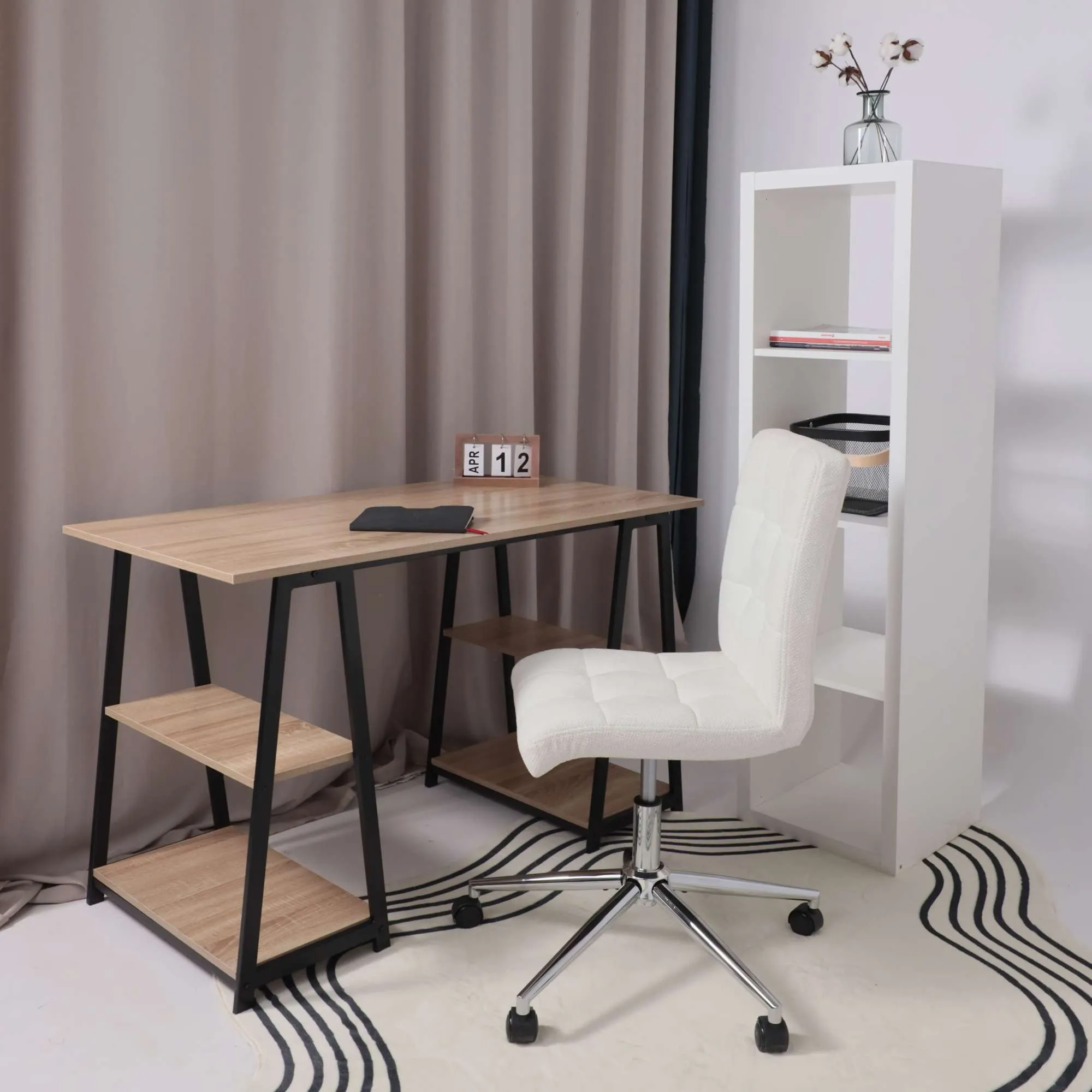 Кресло рабочее, поворотное RICCI NEW, white, ткань, черно-белая диор