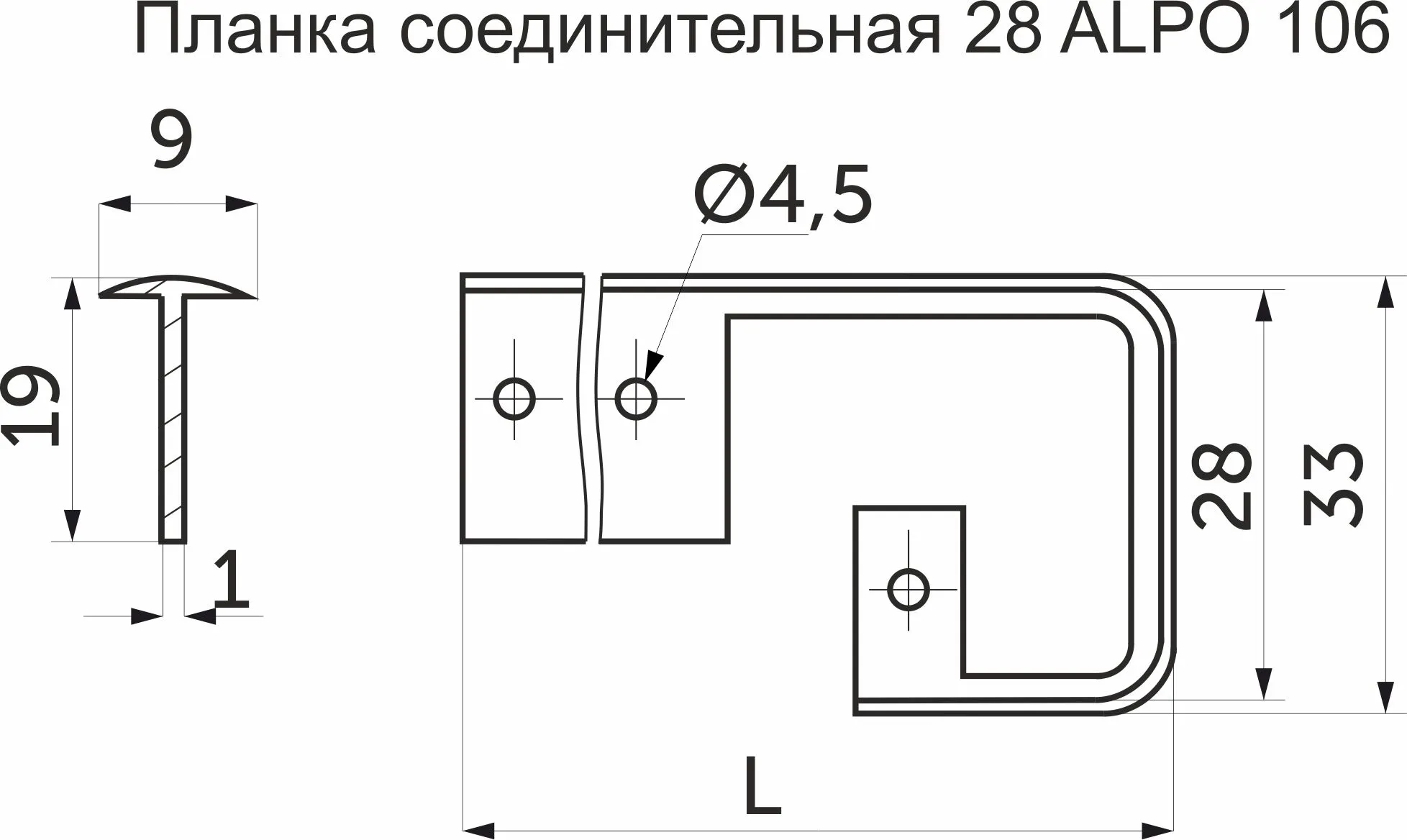 Планка соединительная к столешнице 28 ALPO 106 алюминий REJS