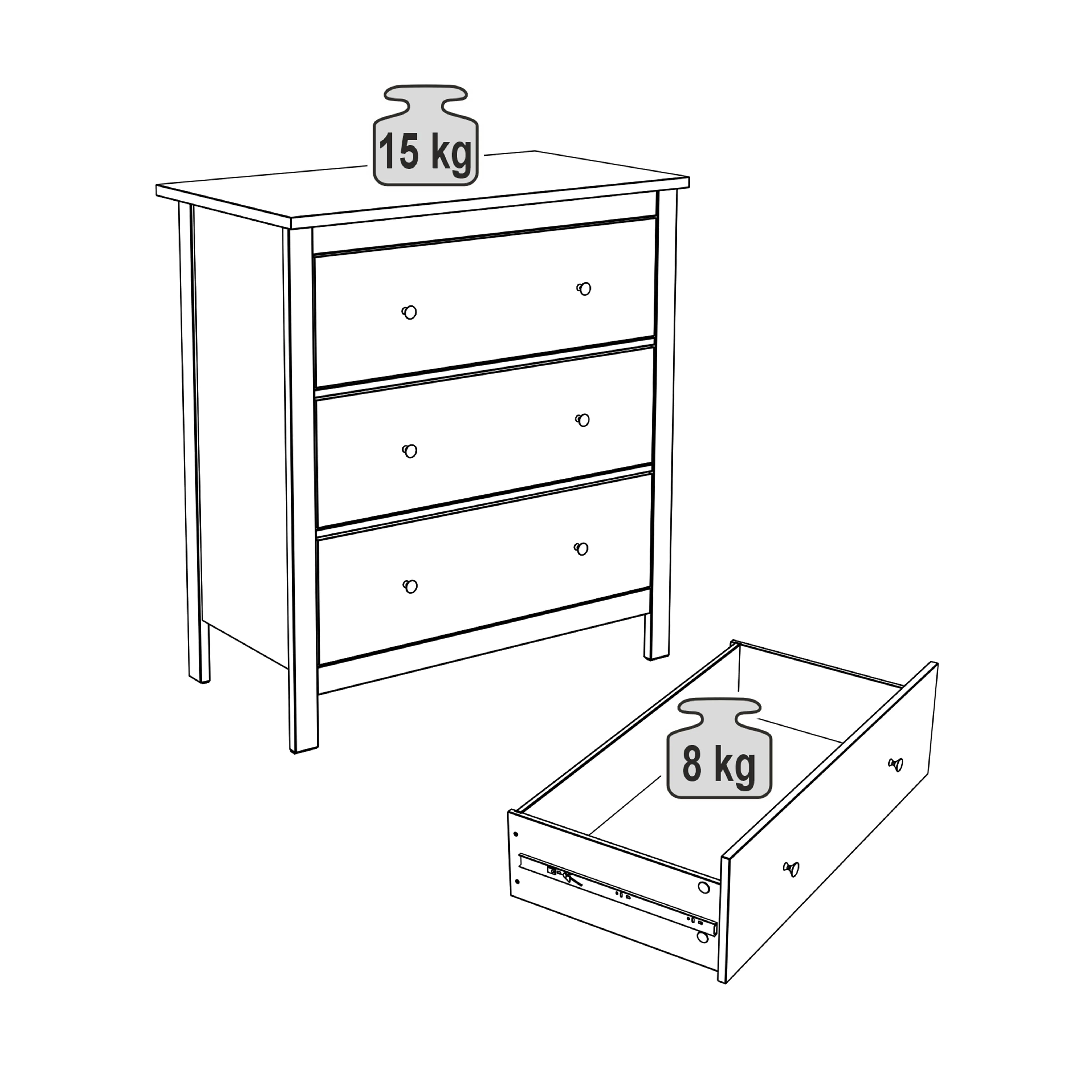 Комод САГА 3 ящика, белый/ясень (2.08.02.020.14 RU)