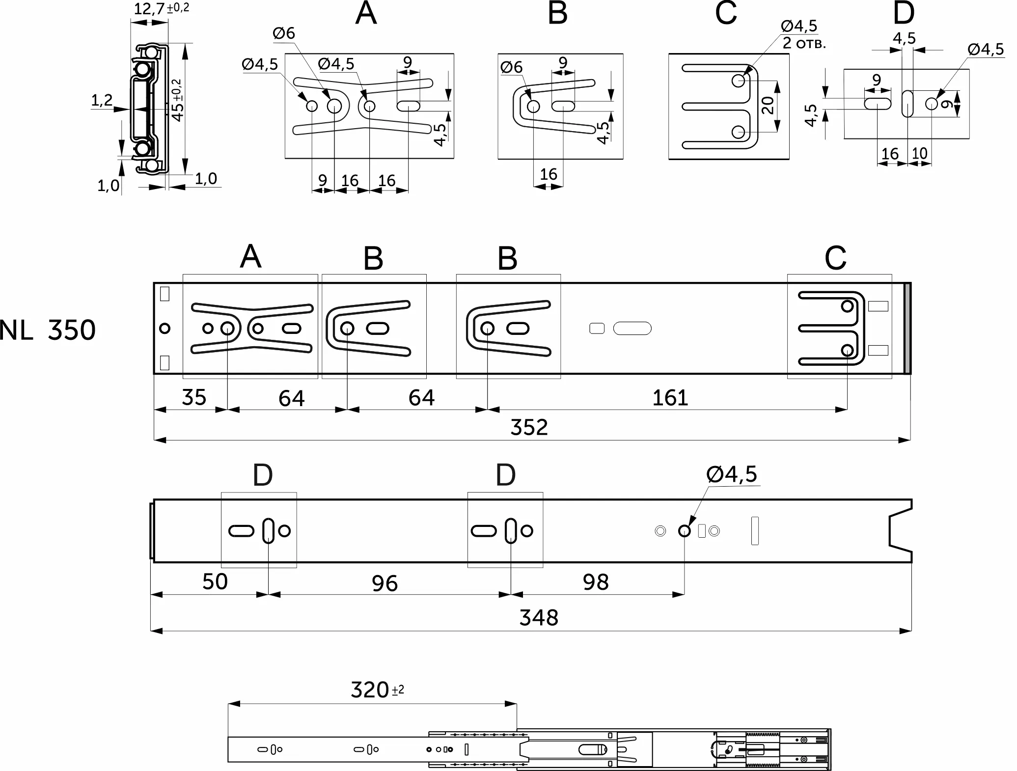 | Длина направляющей (L, мм) | 350 |