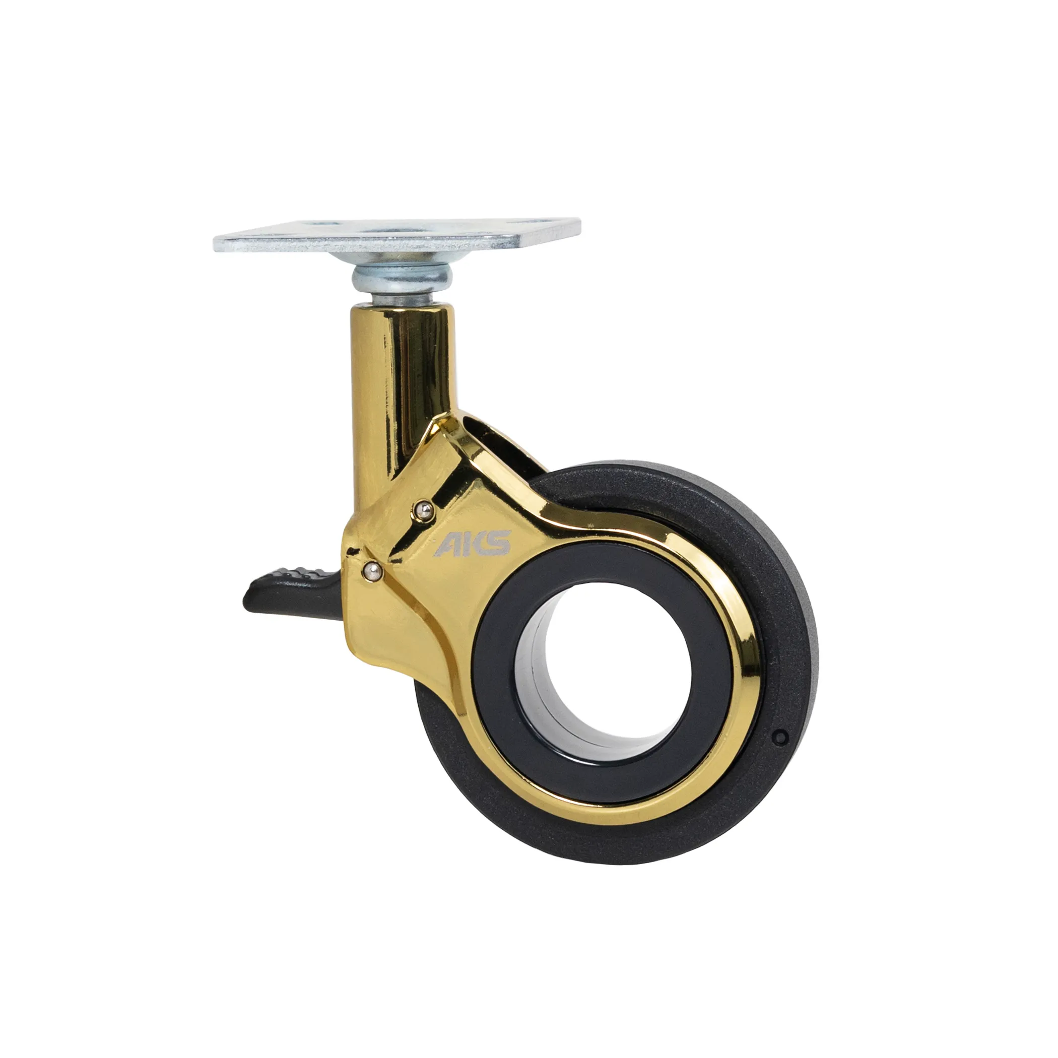 Колесо меб. GALAXY d60 h94 с площадкой с торм., золото/черный AKS