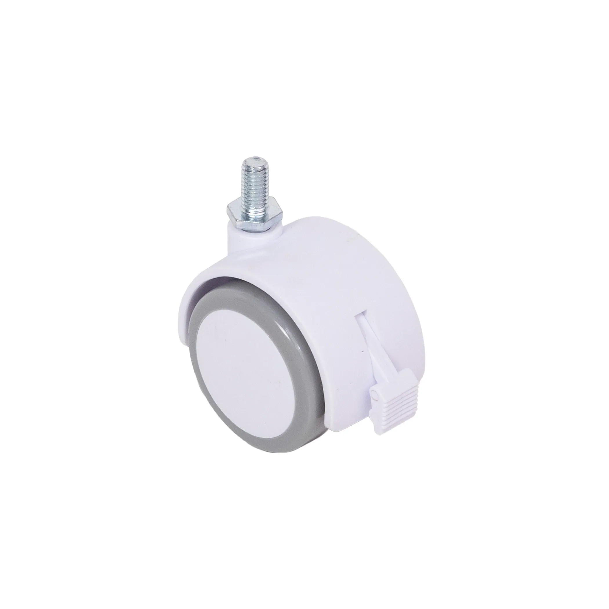 Колесо меб. пласт. FURNI d50 с винтом M8 с торм., белый/серый AKS