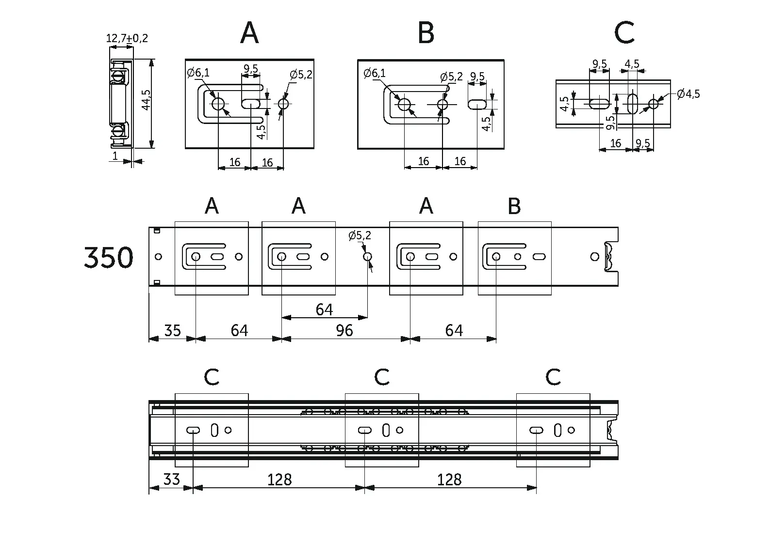 | Длина направляющей (L, мм) | 350 |