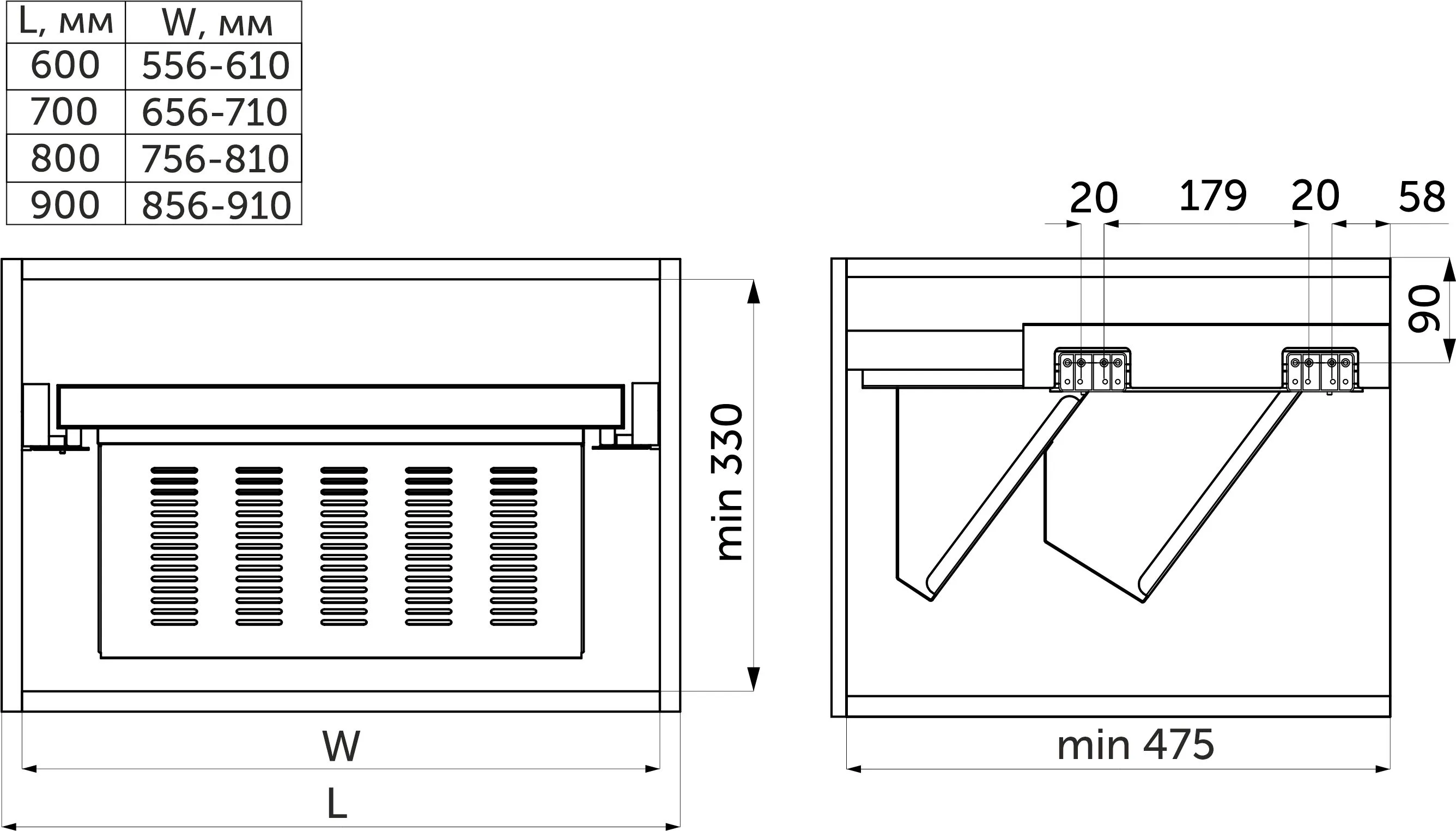 | Размер ящика, мм | 700 |