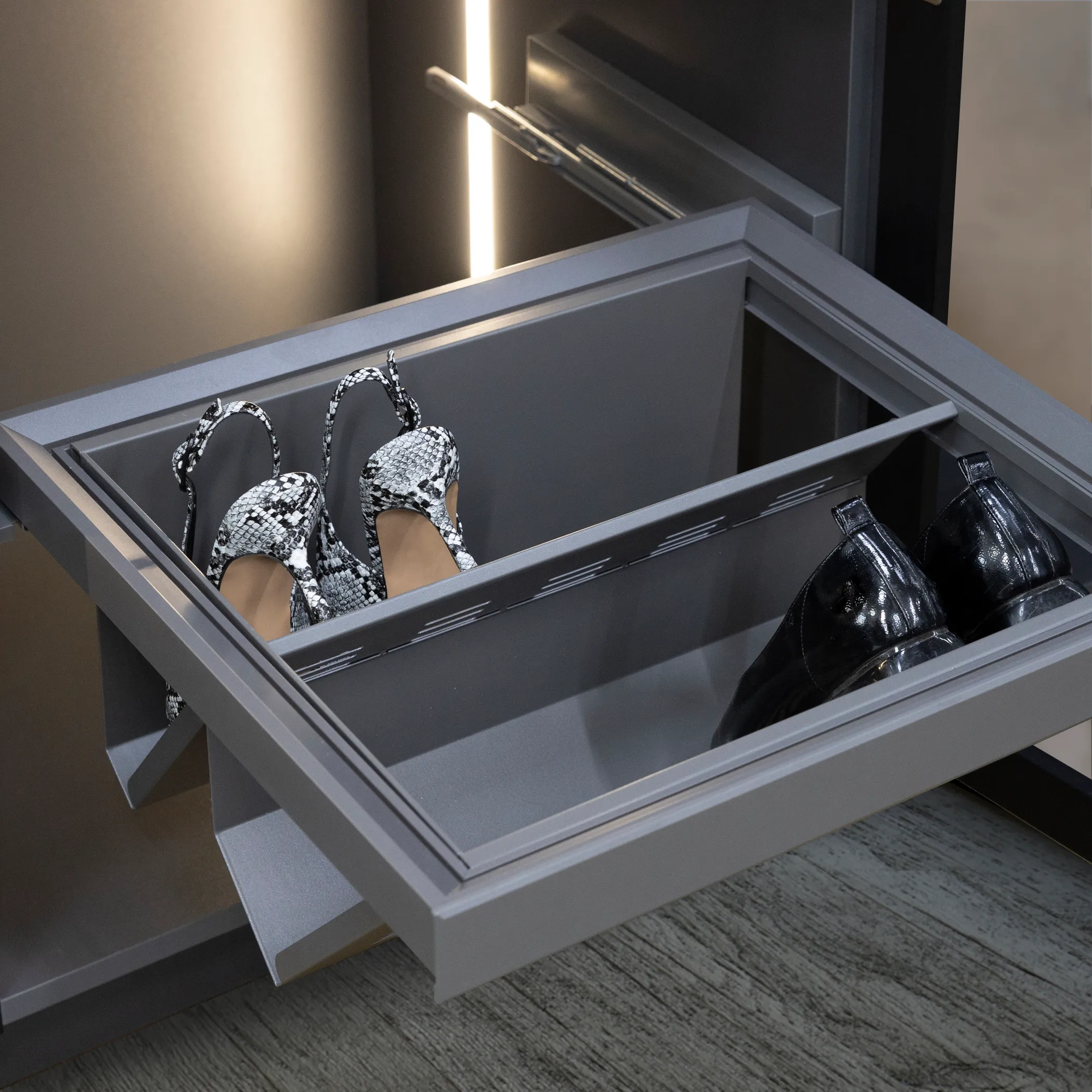 Выдвижная полка для обуви 700 BRUNO, графит PRIME by AKS