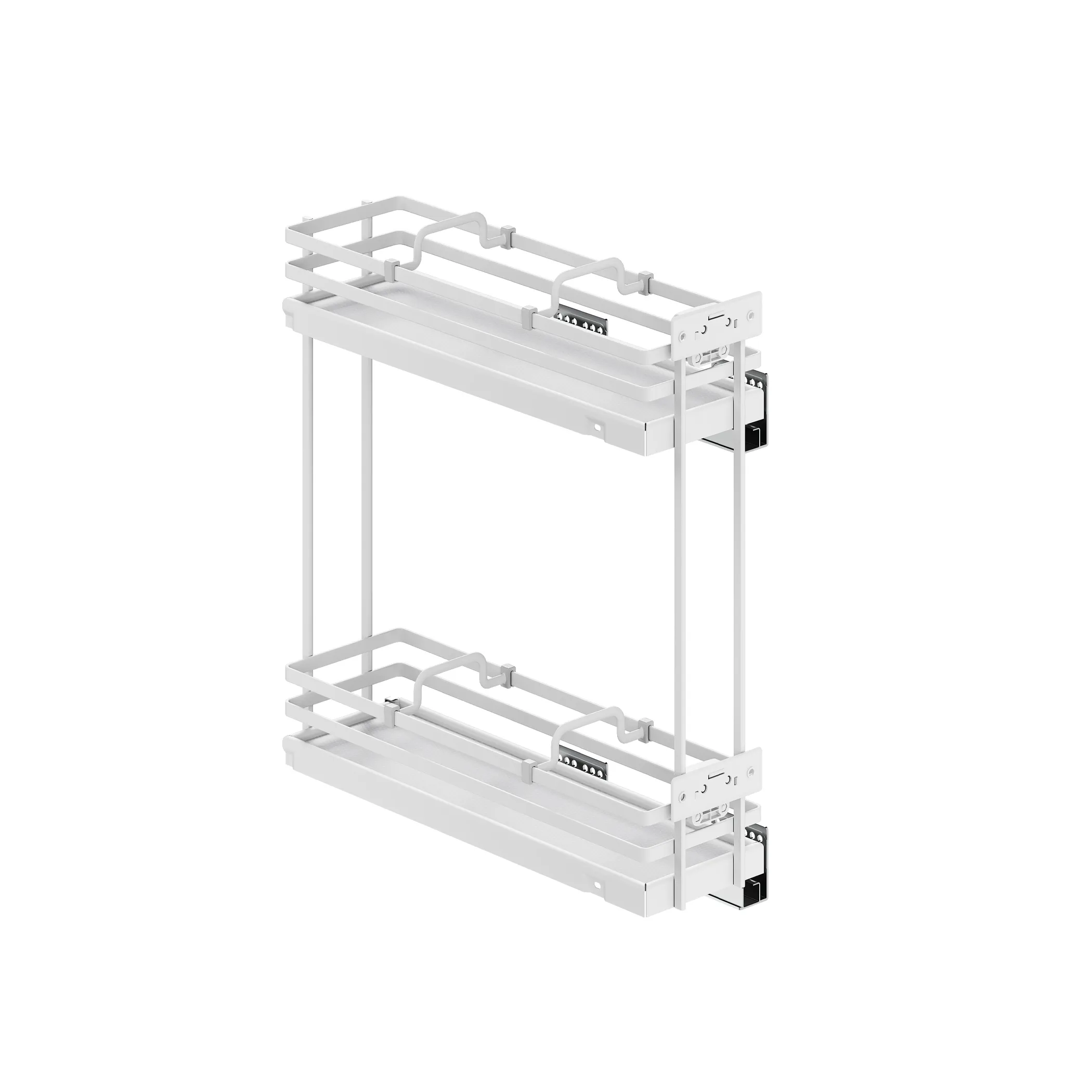 Продуманная конструкция корзин помогает организовать хранение банок, бутылок, столовой посуды, продуктов на кухне.