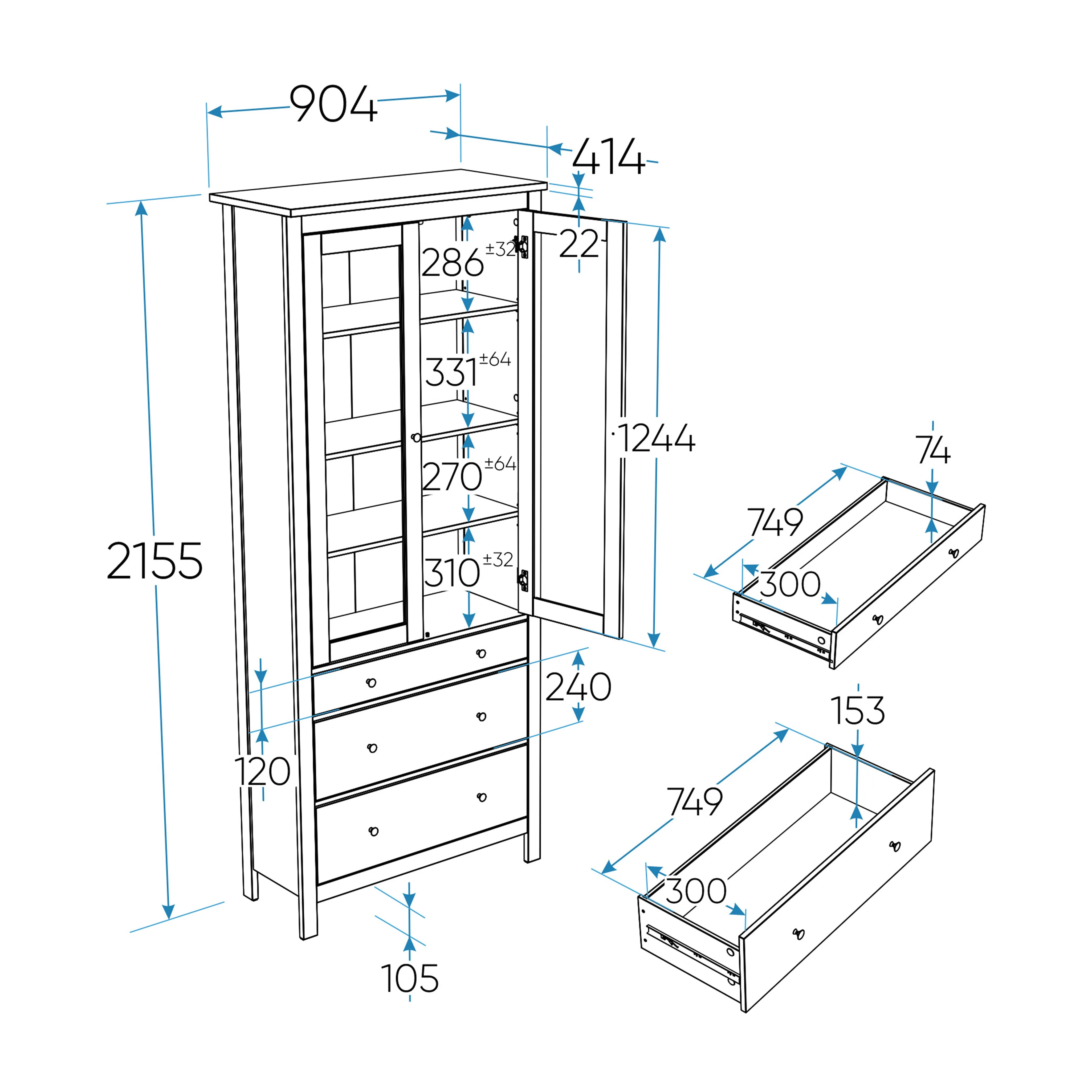 | Высота, мм | 2155 |