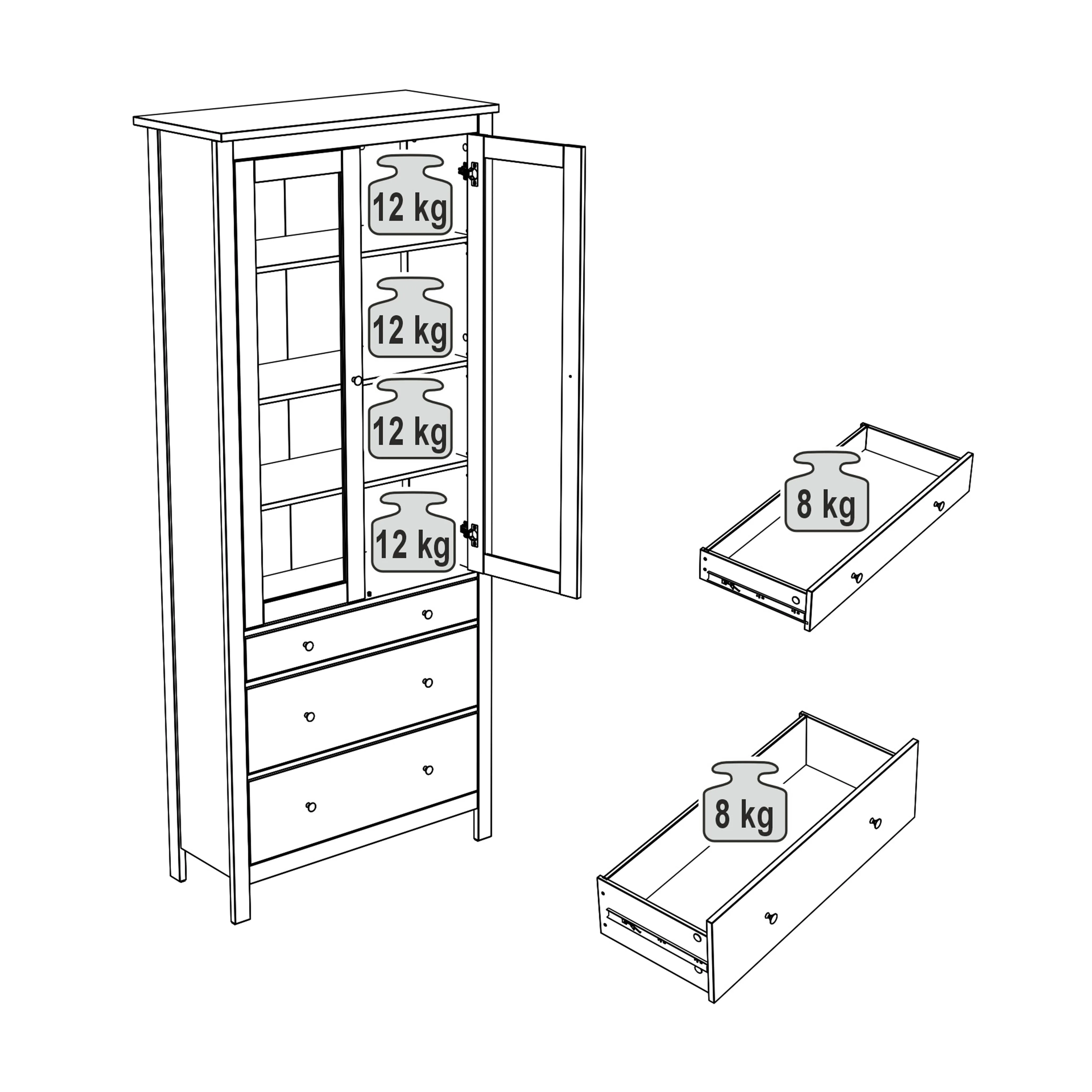 | В комплект входит | 4 полки, 3 ящика |