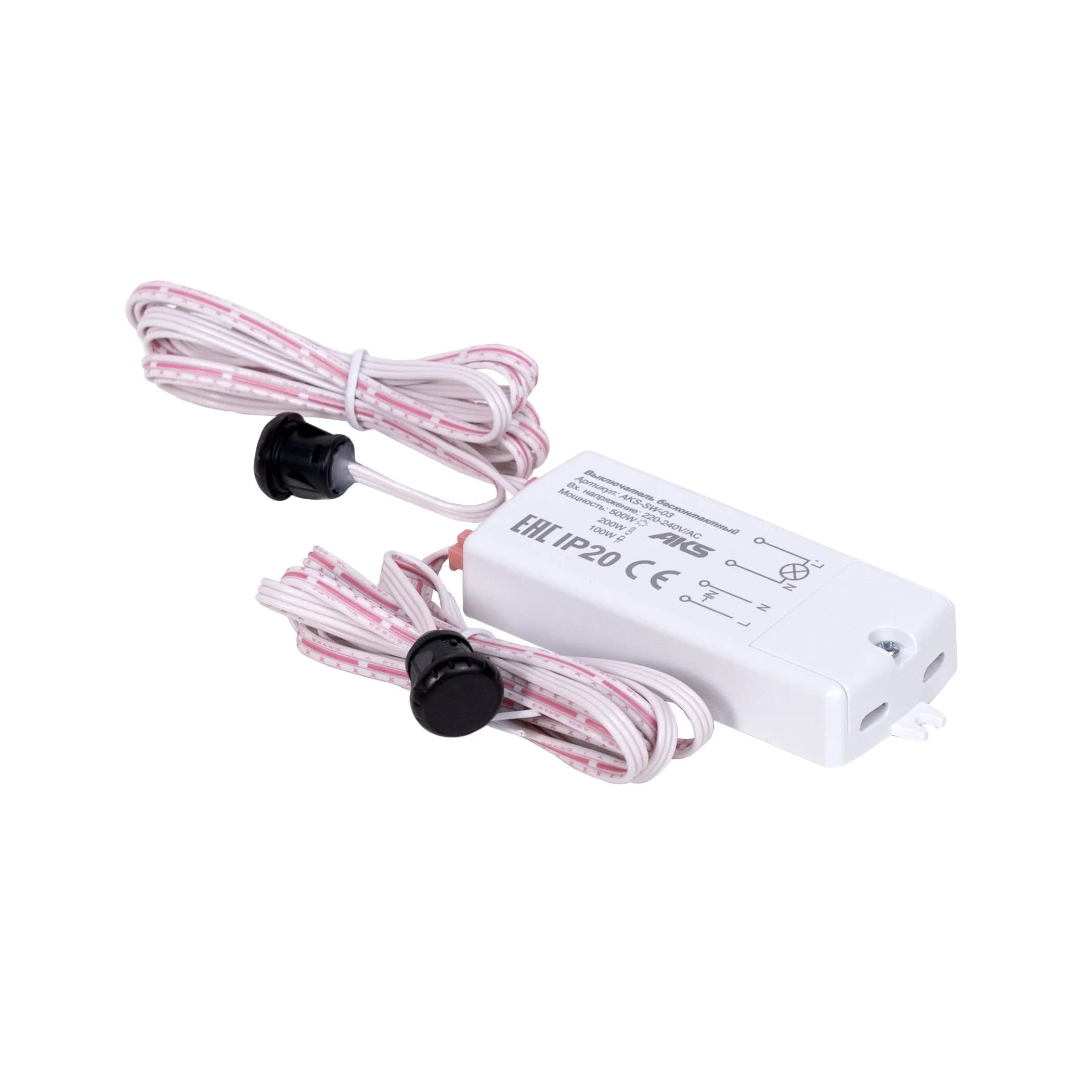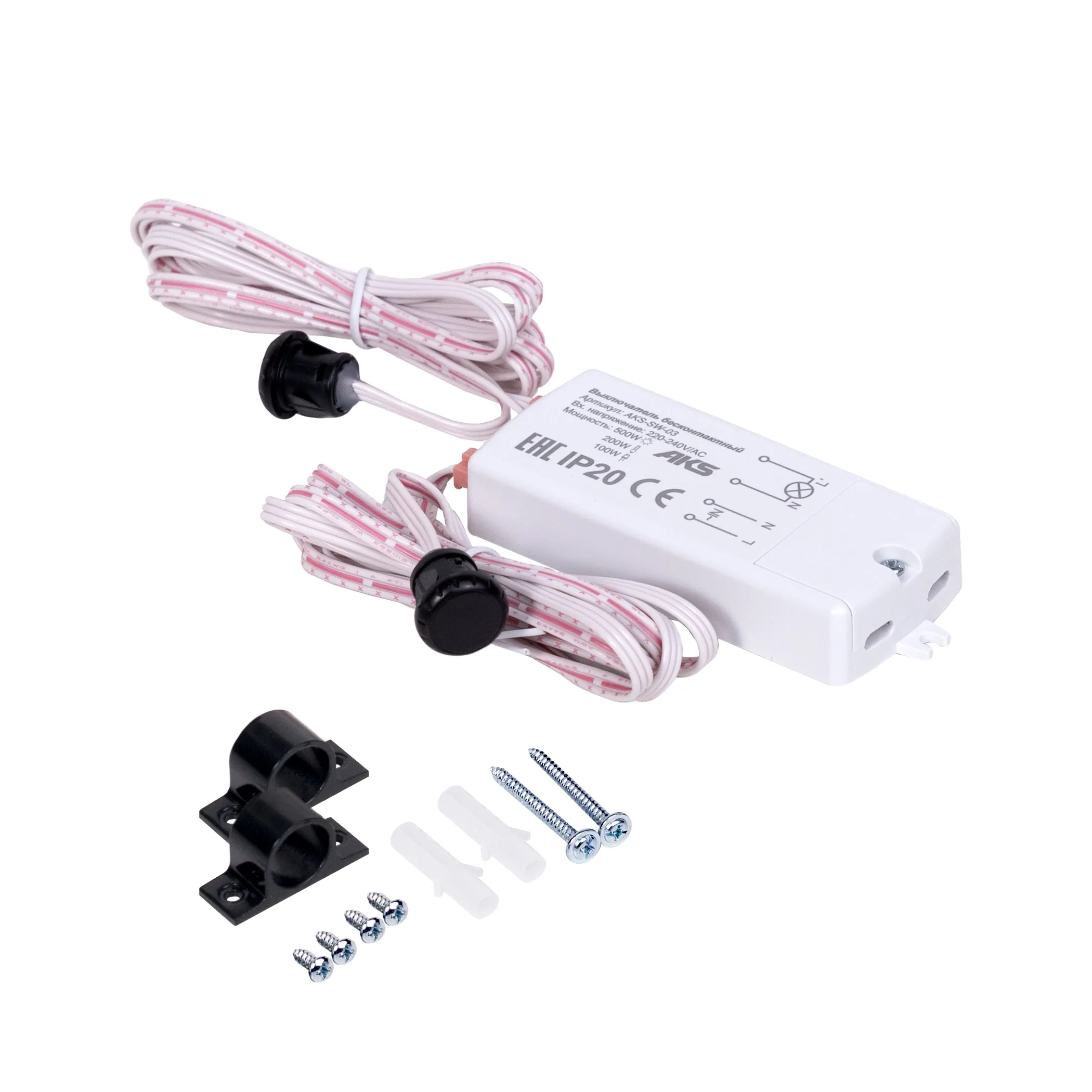 Выключатель бесконтактный на преграду, двойной, врезной/накладной, 230V, 500W, AKS