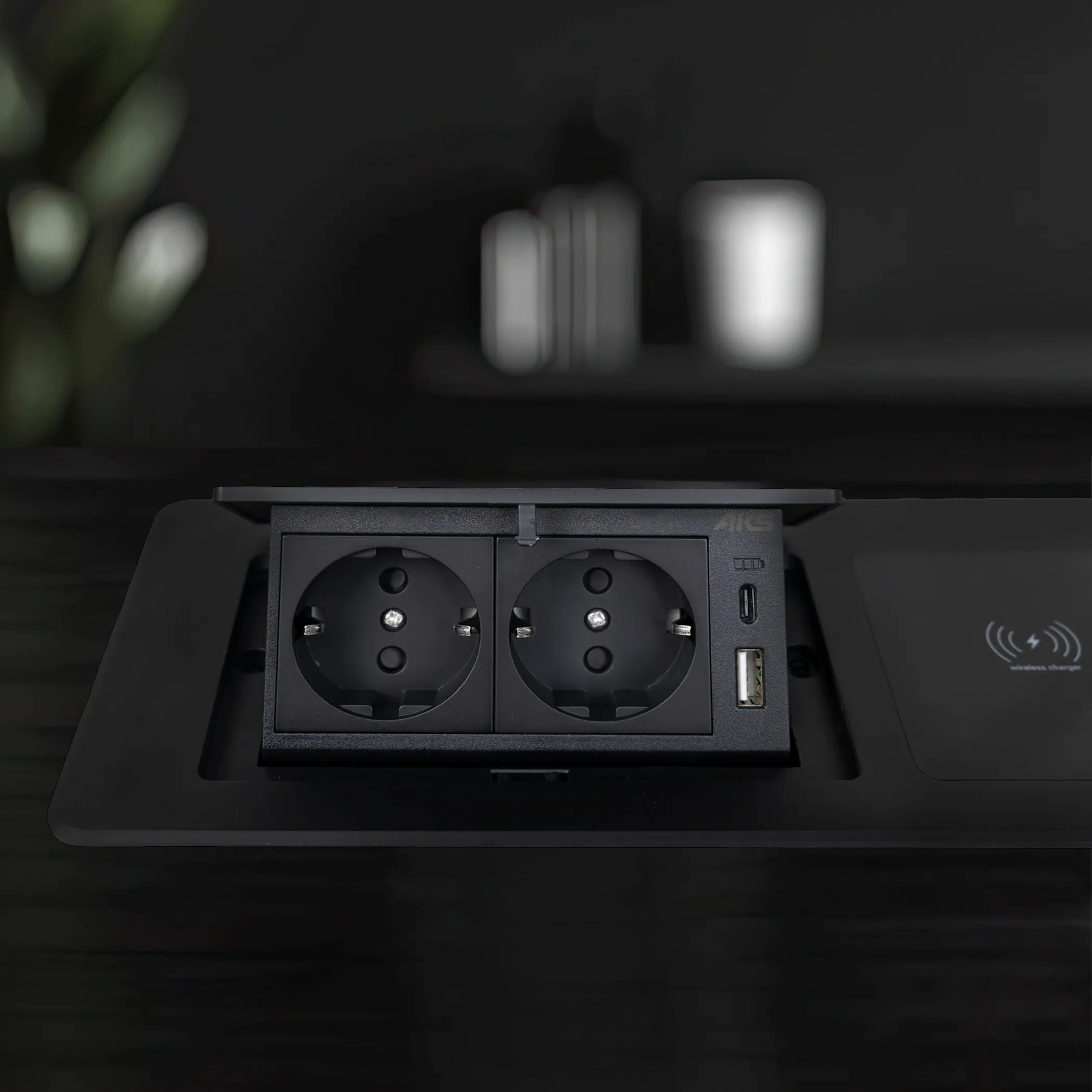 Выдвижной удлинитель Nova 5, 2 розетки, USB A + C, беспроводная зарядка, алюминий, AKS
