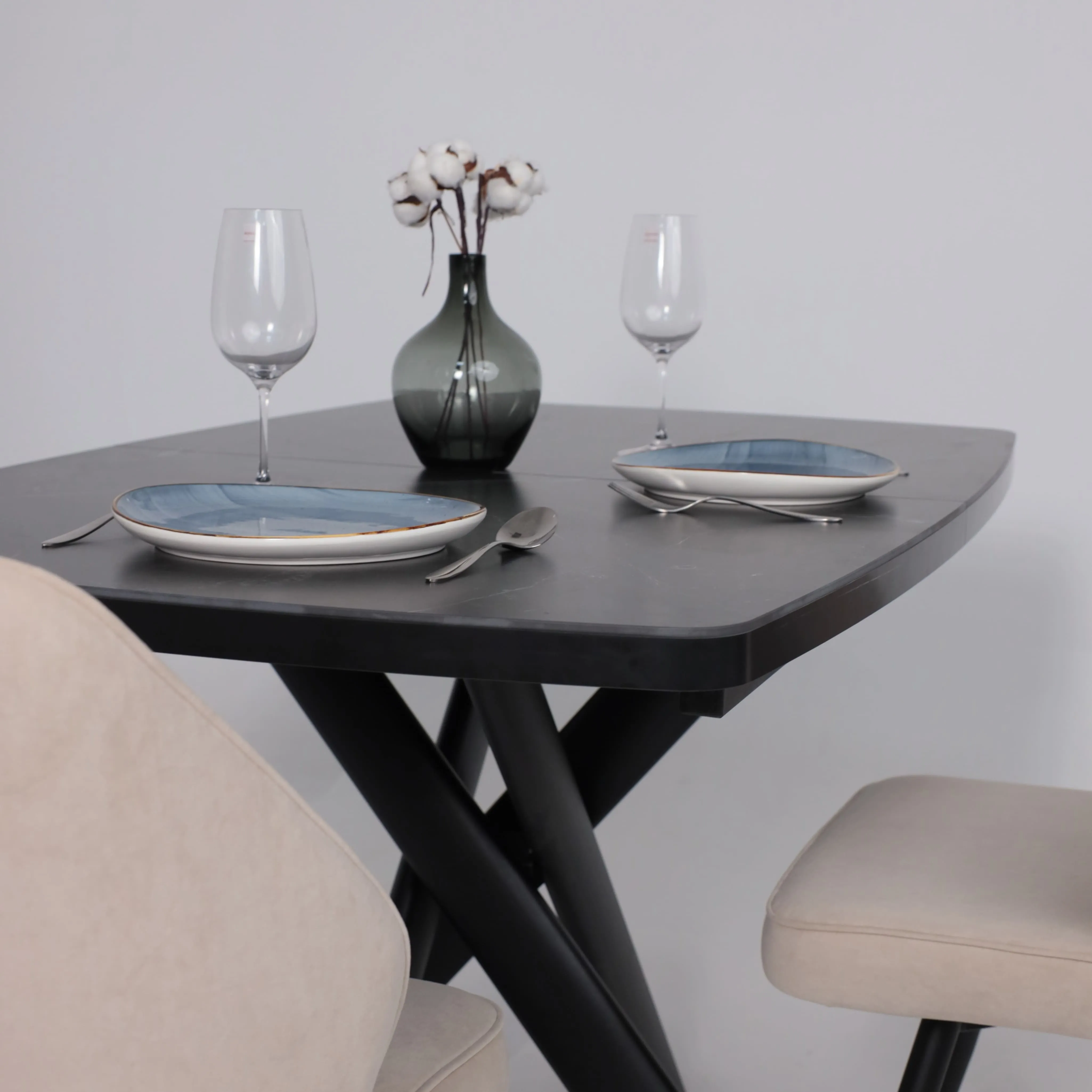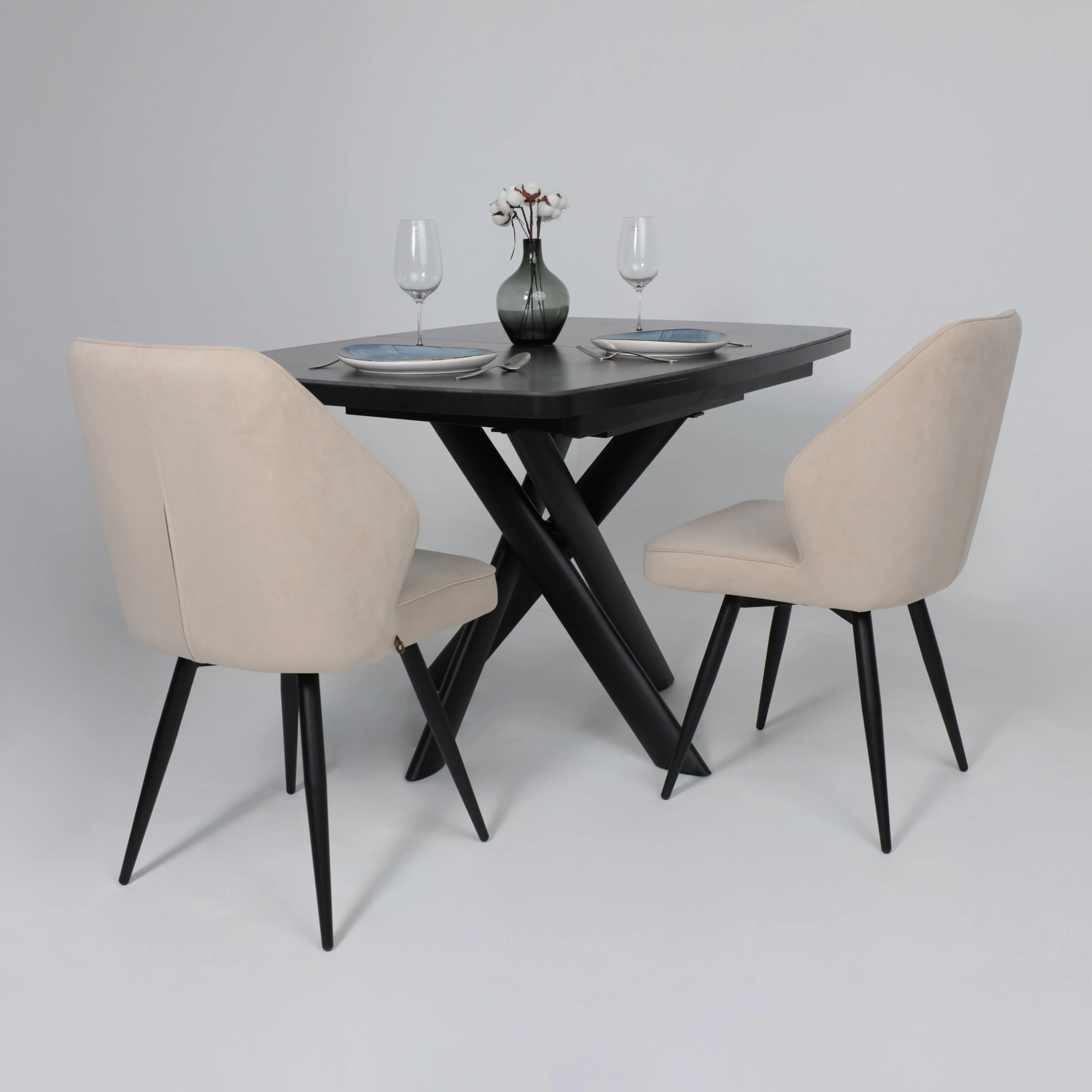 Стол TIRK RADIAL-94, раздвижной 94(126)х64, Дымчатая керамика/Чёрный