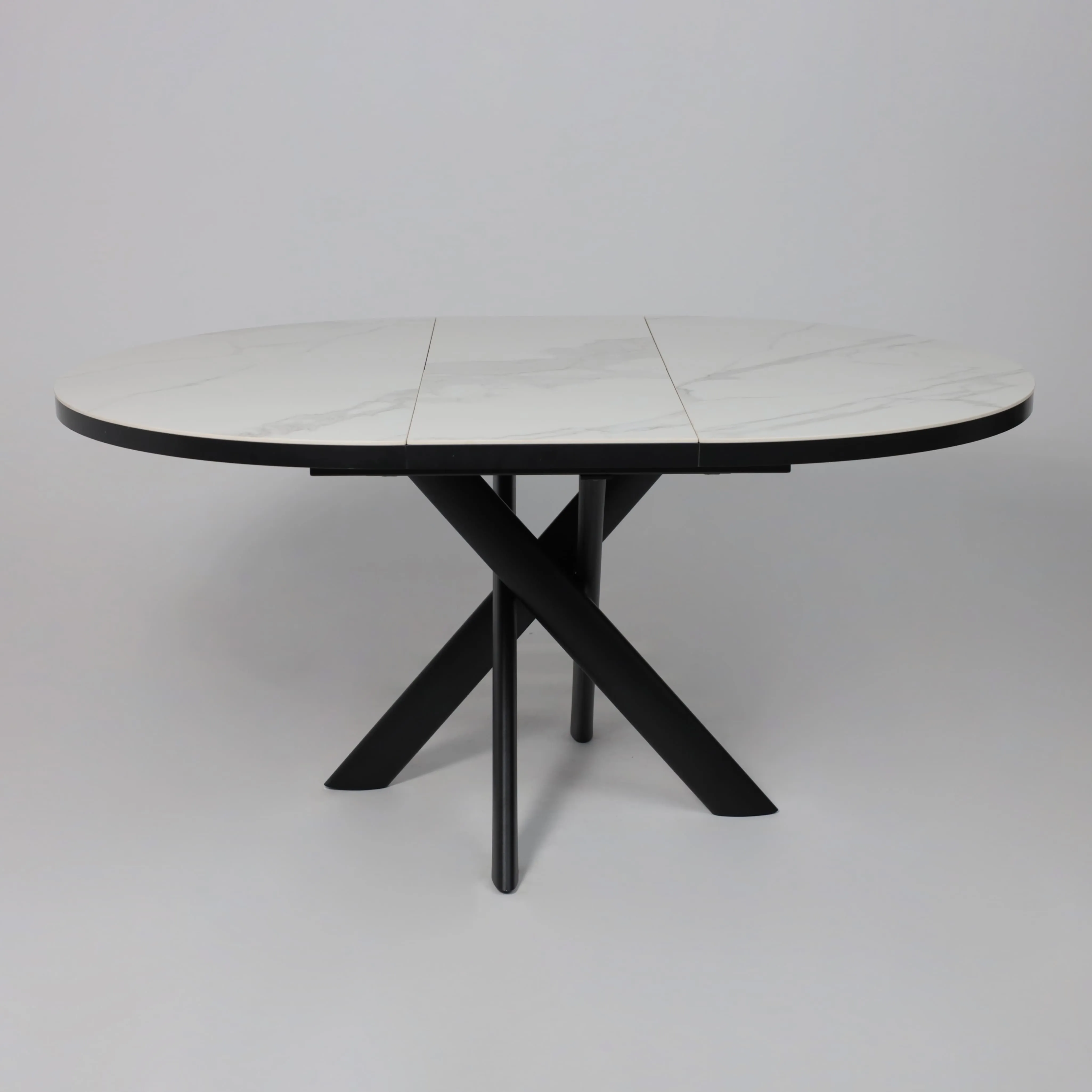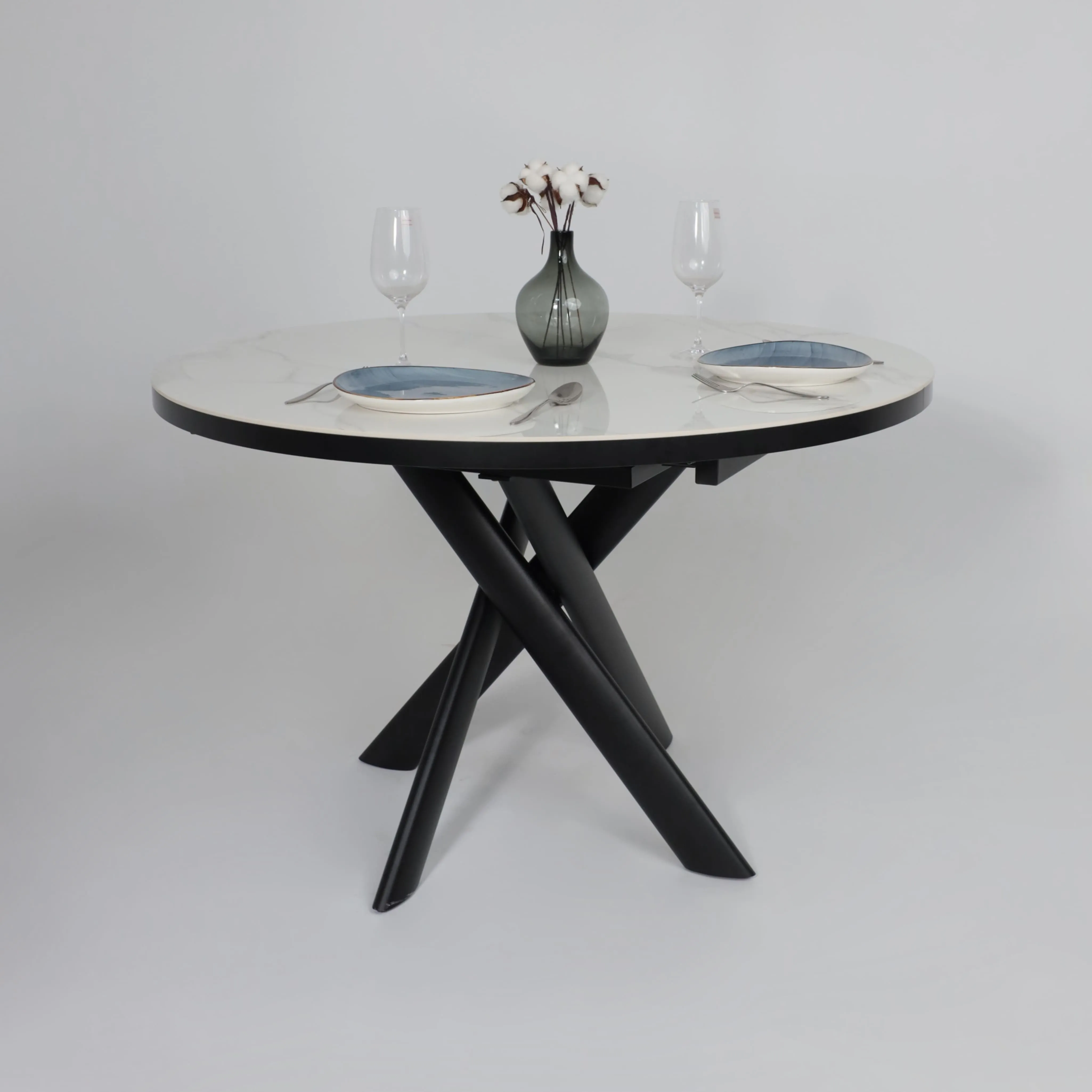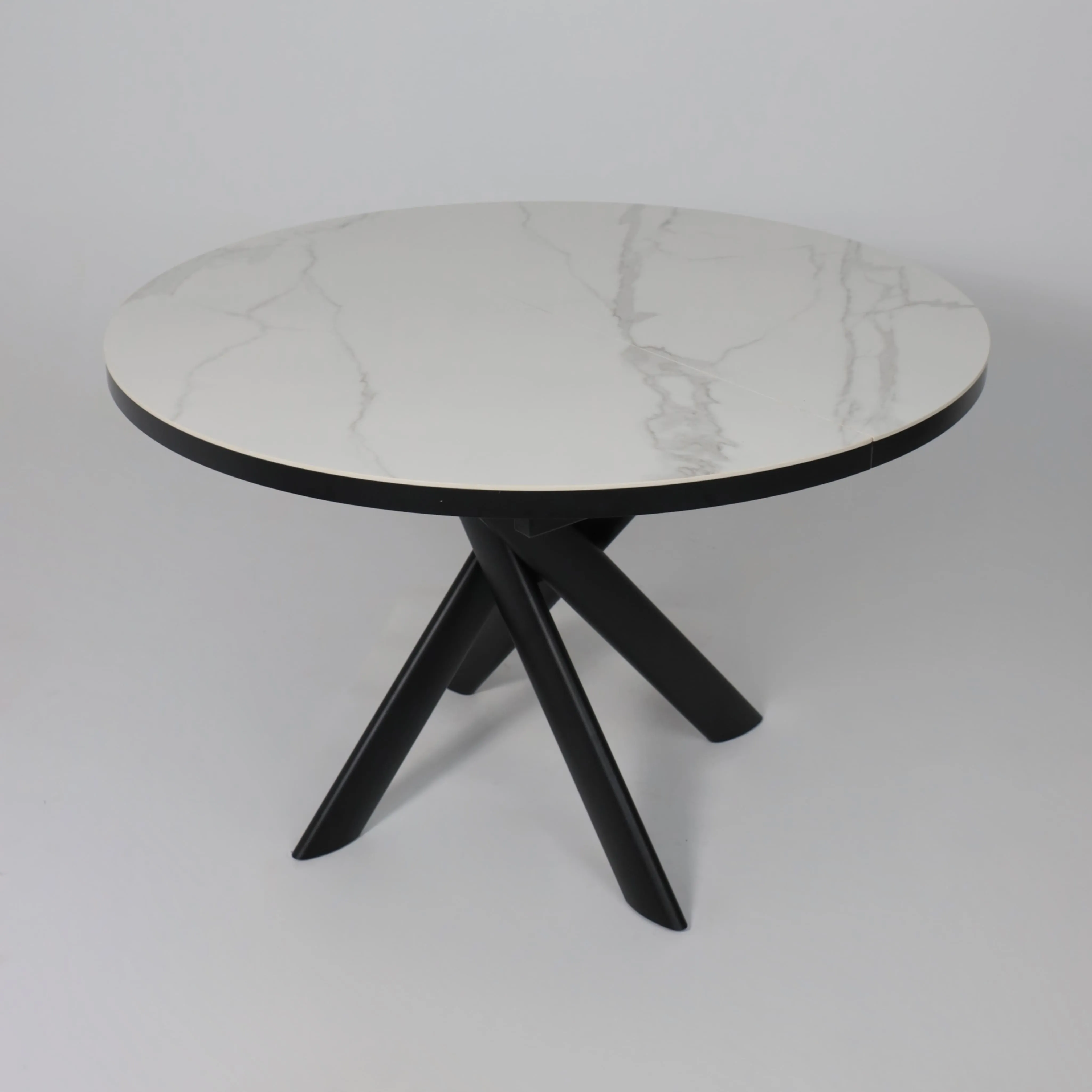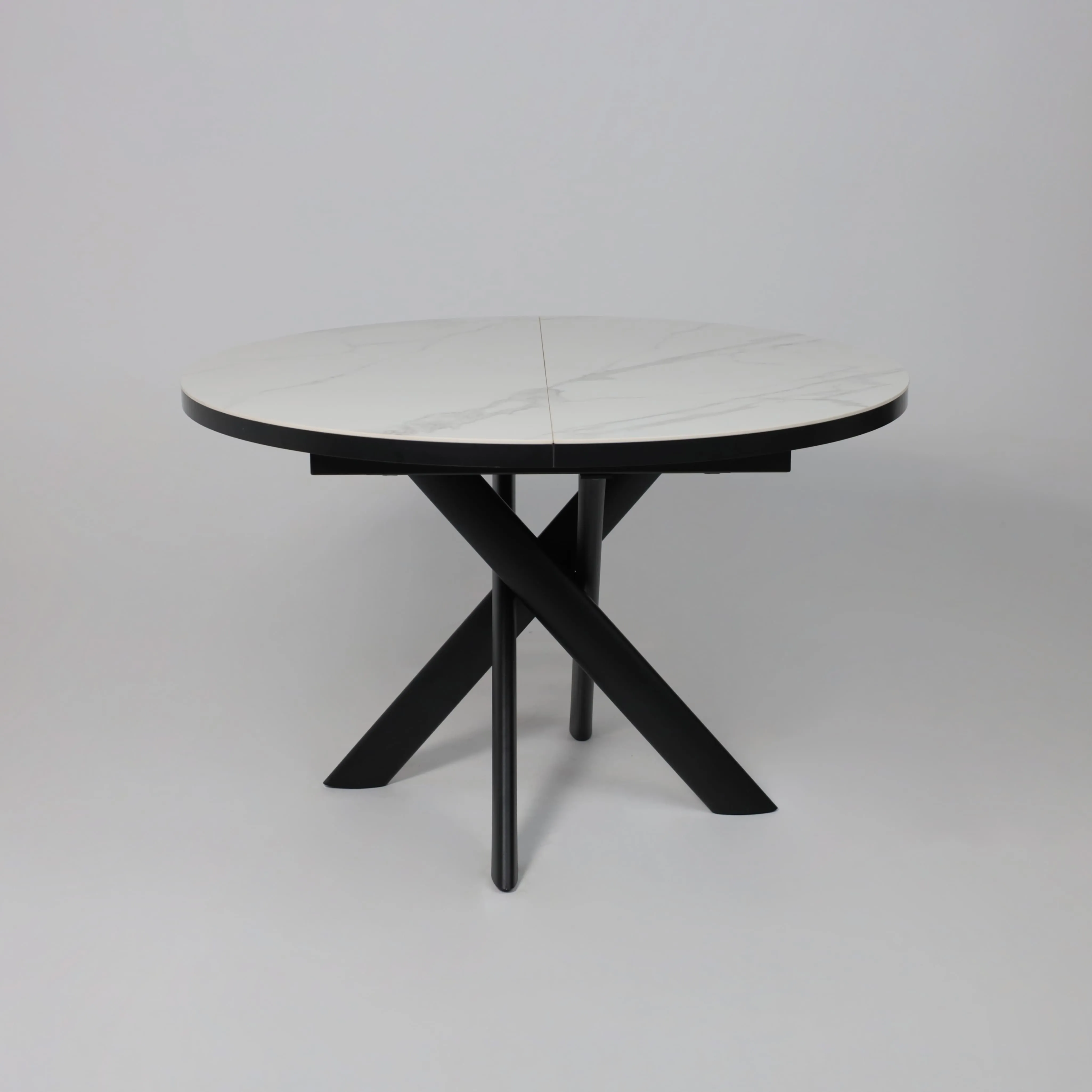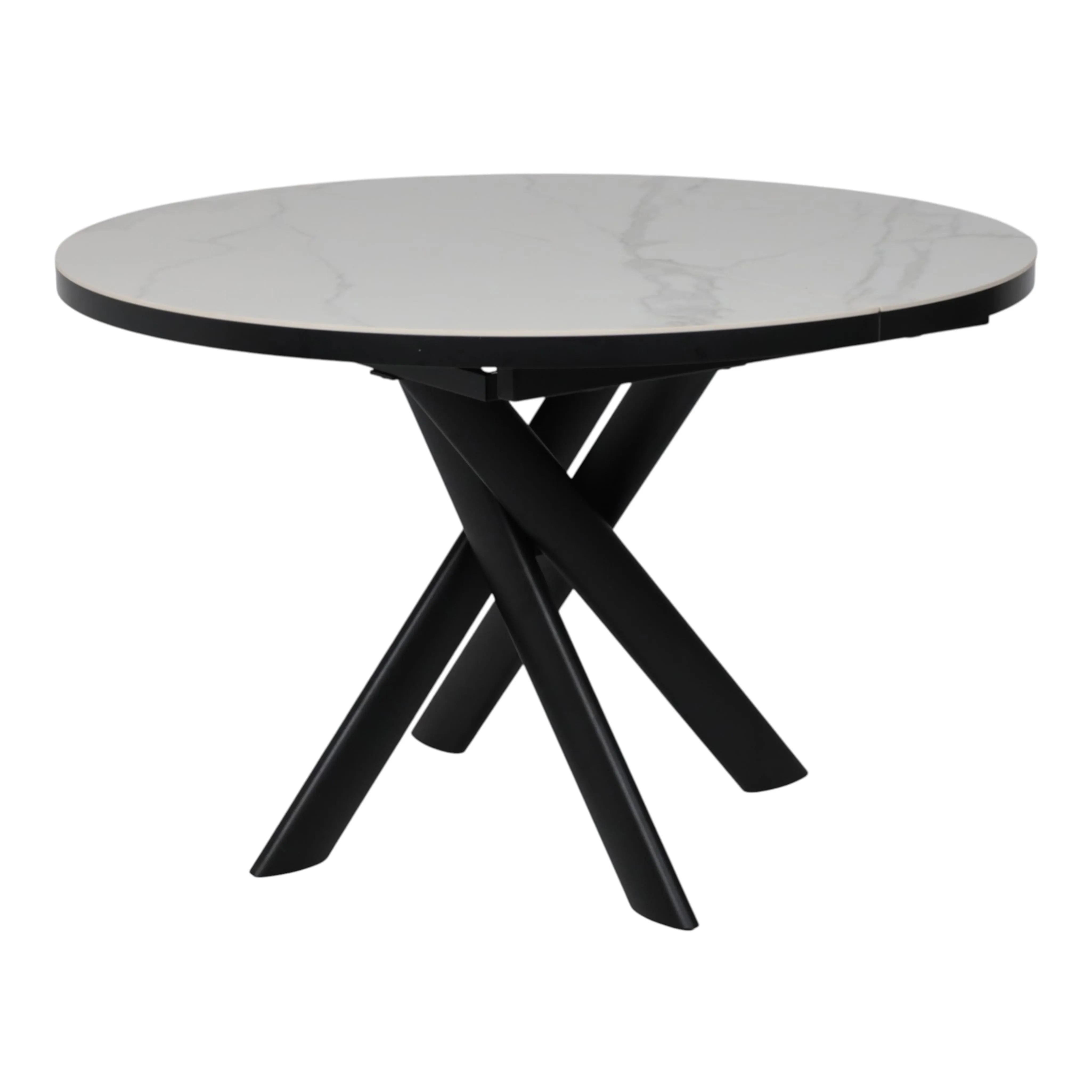 Стол RONALDO-120, круглый раздвижной 120(160), PATAGONOA BIANCO GLOSS PREMIUM CER/Черный
