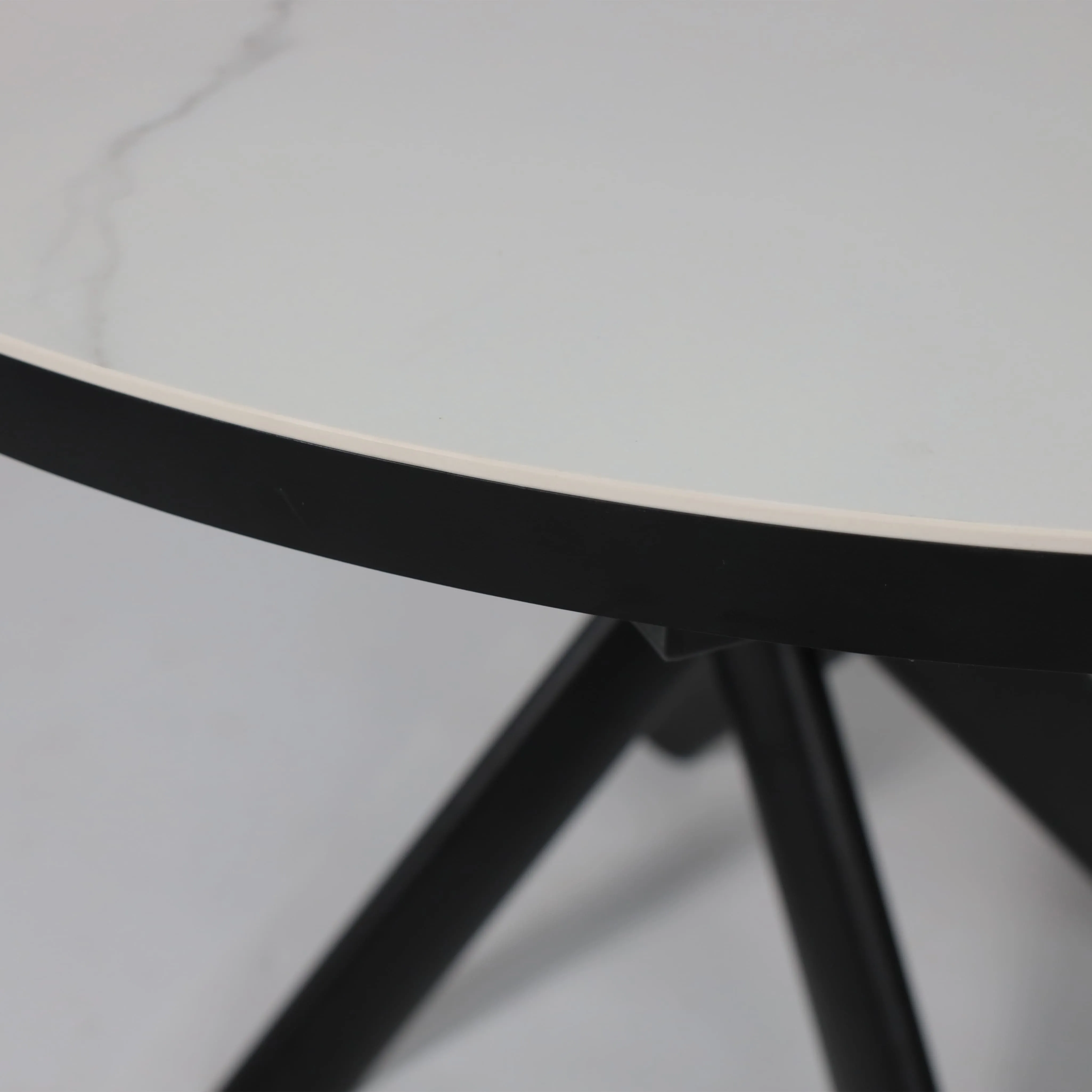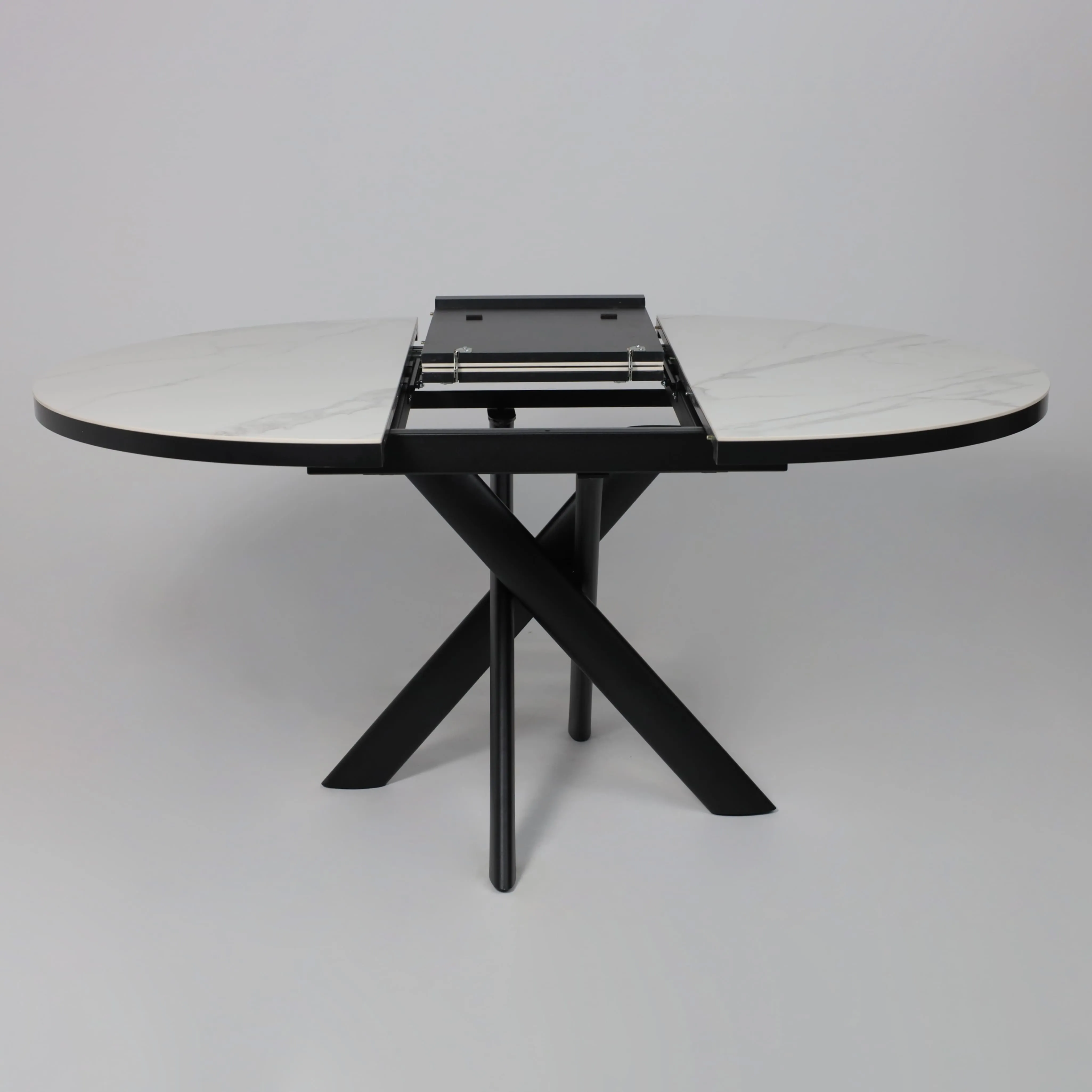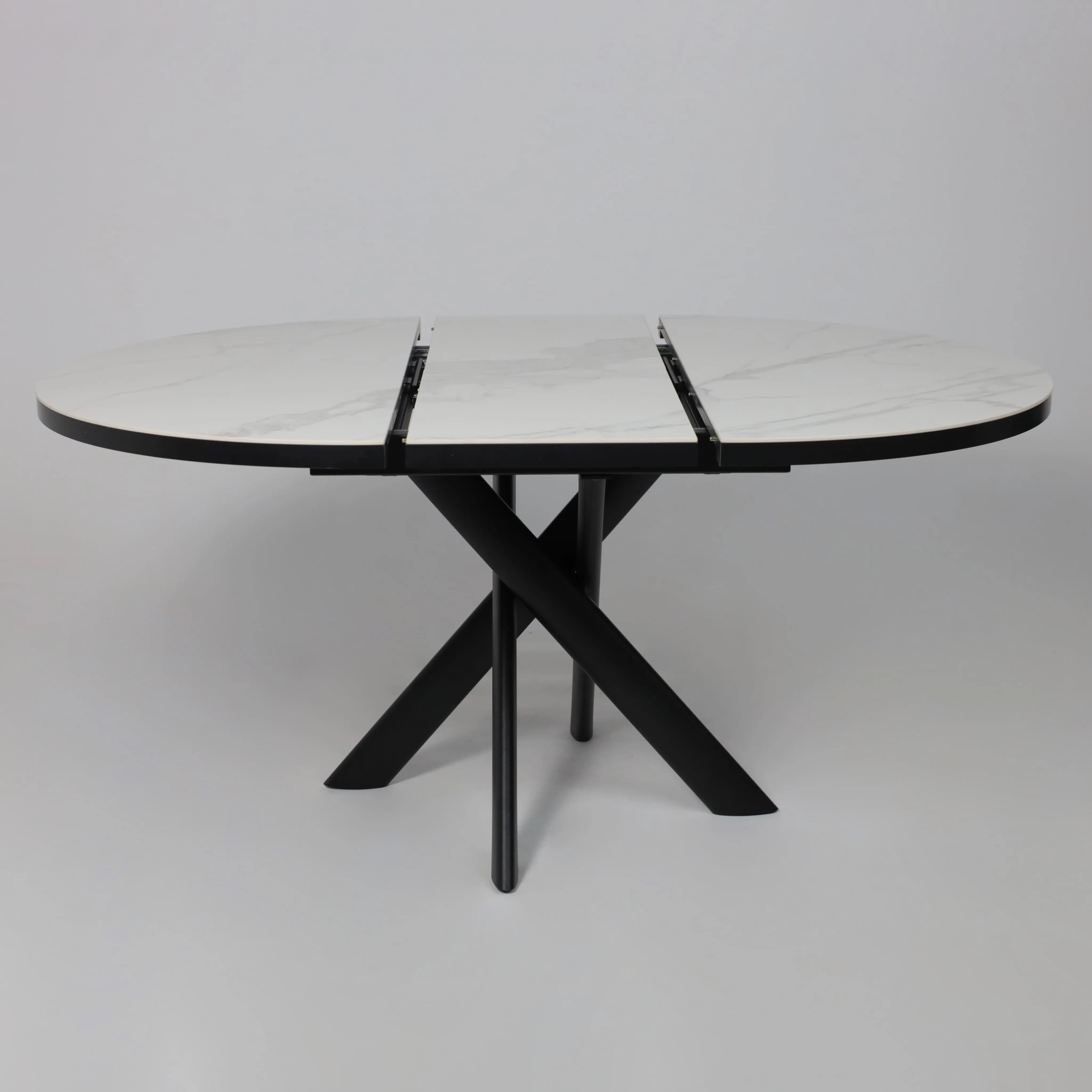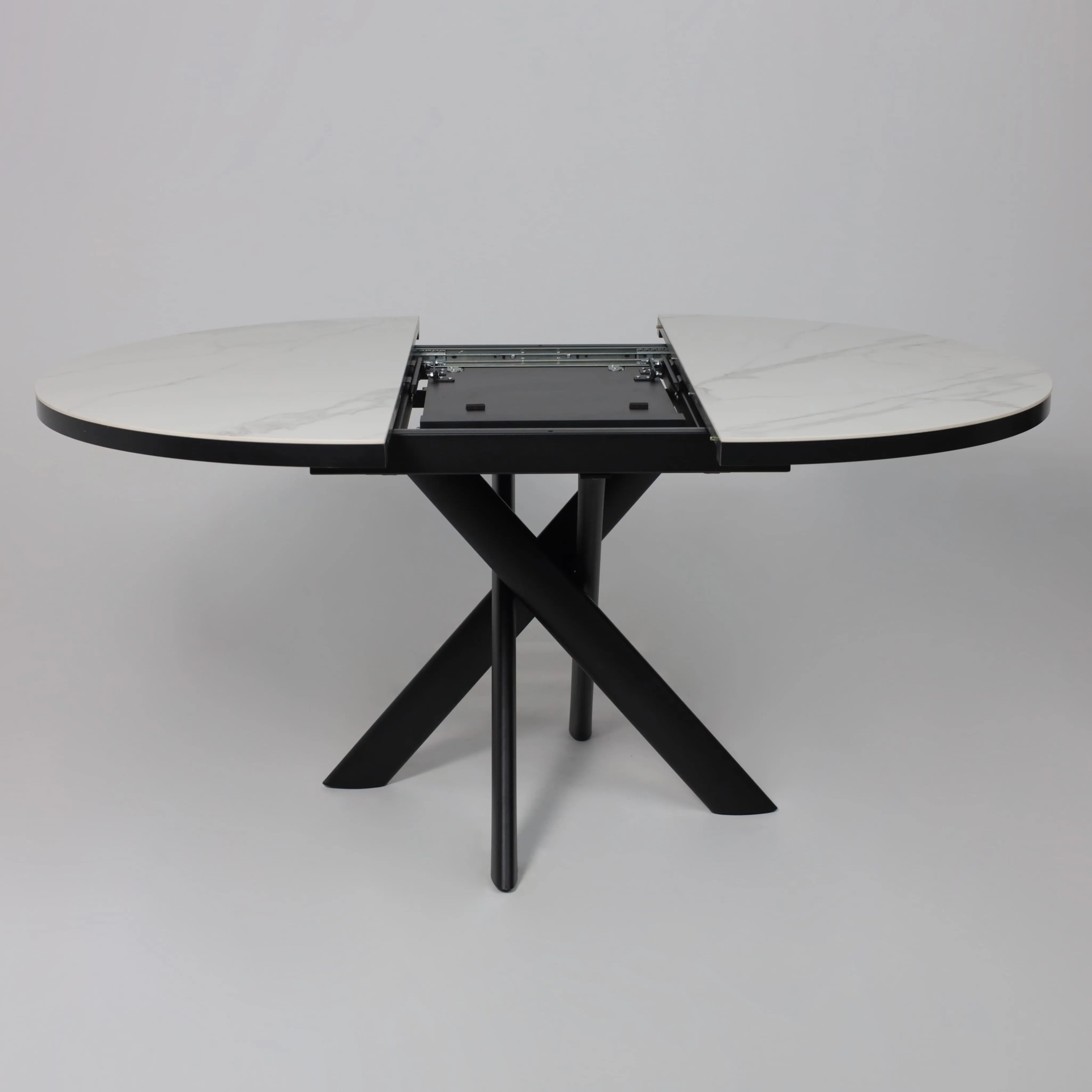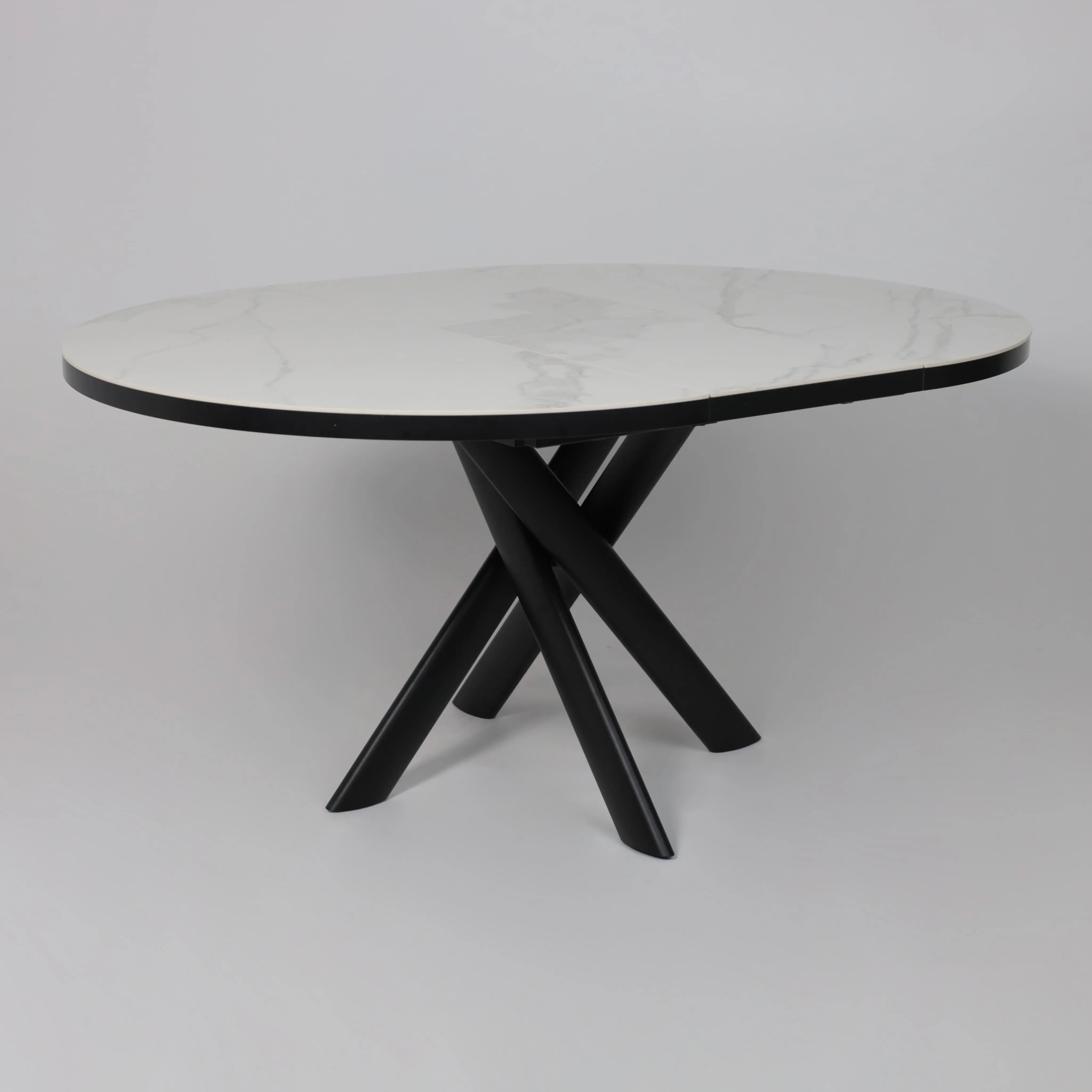 Стол RONALDO-120, круглый раздвижной 120(160), PATAGONOA BIANCO GLOSS PREMIUM CER/Черный