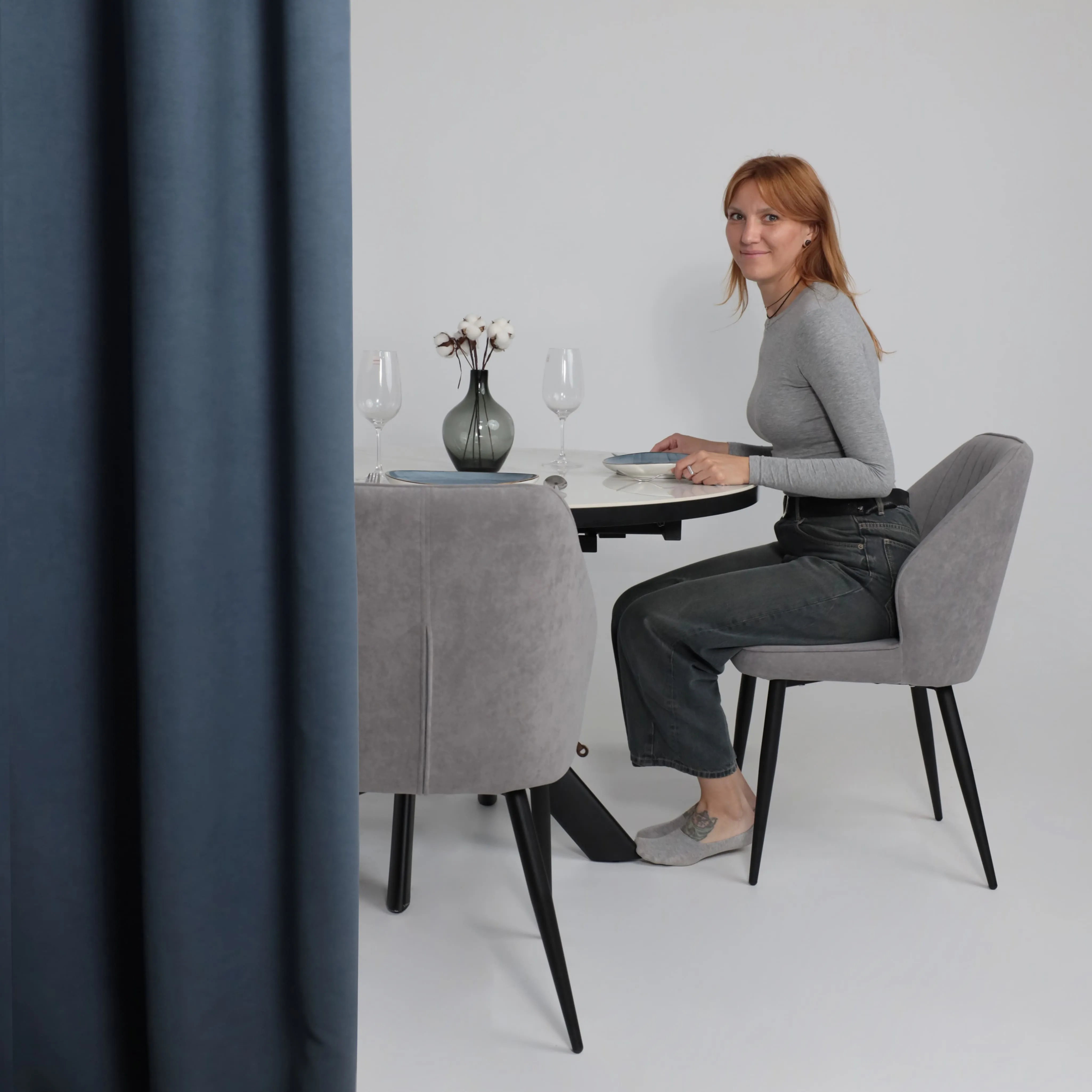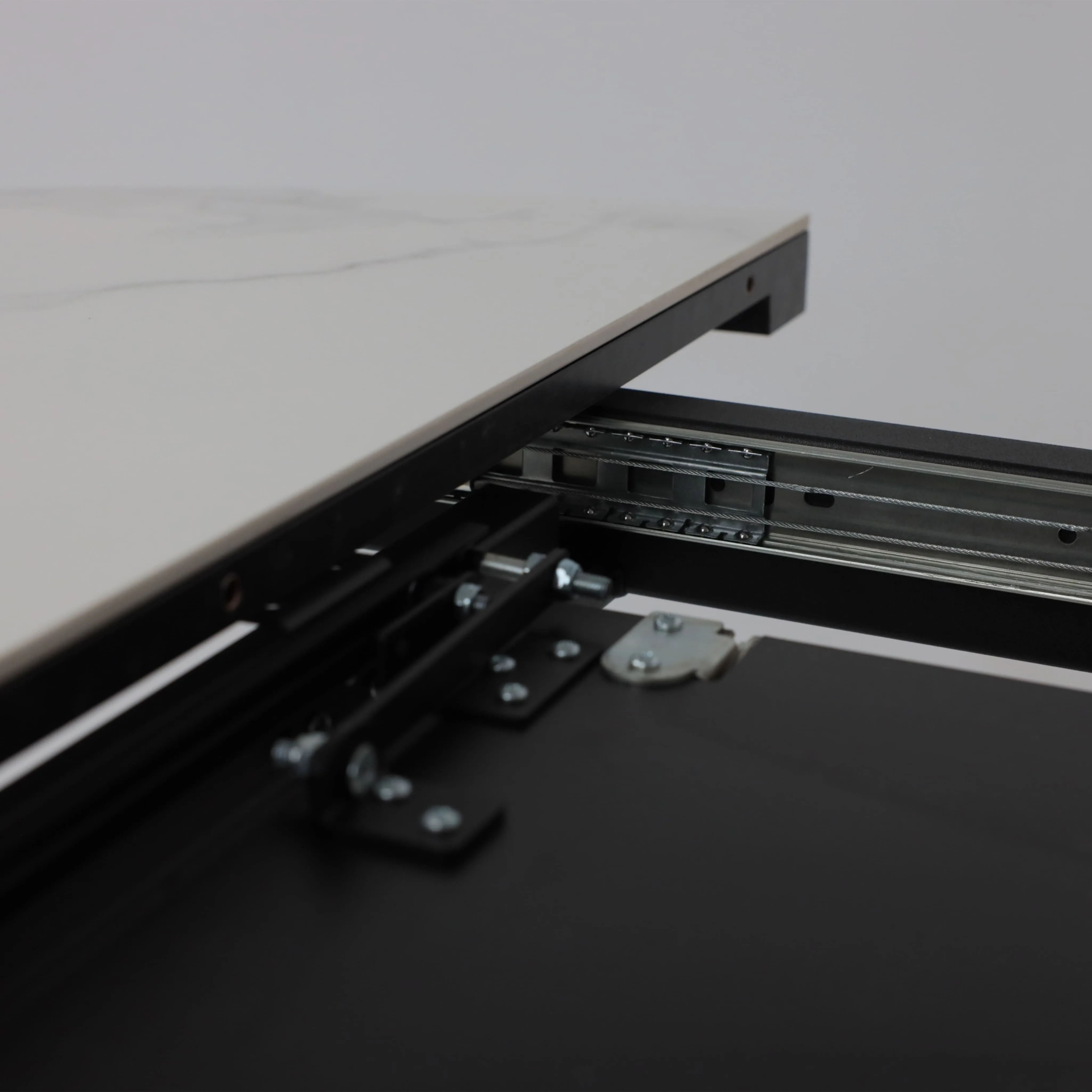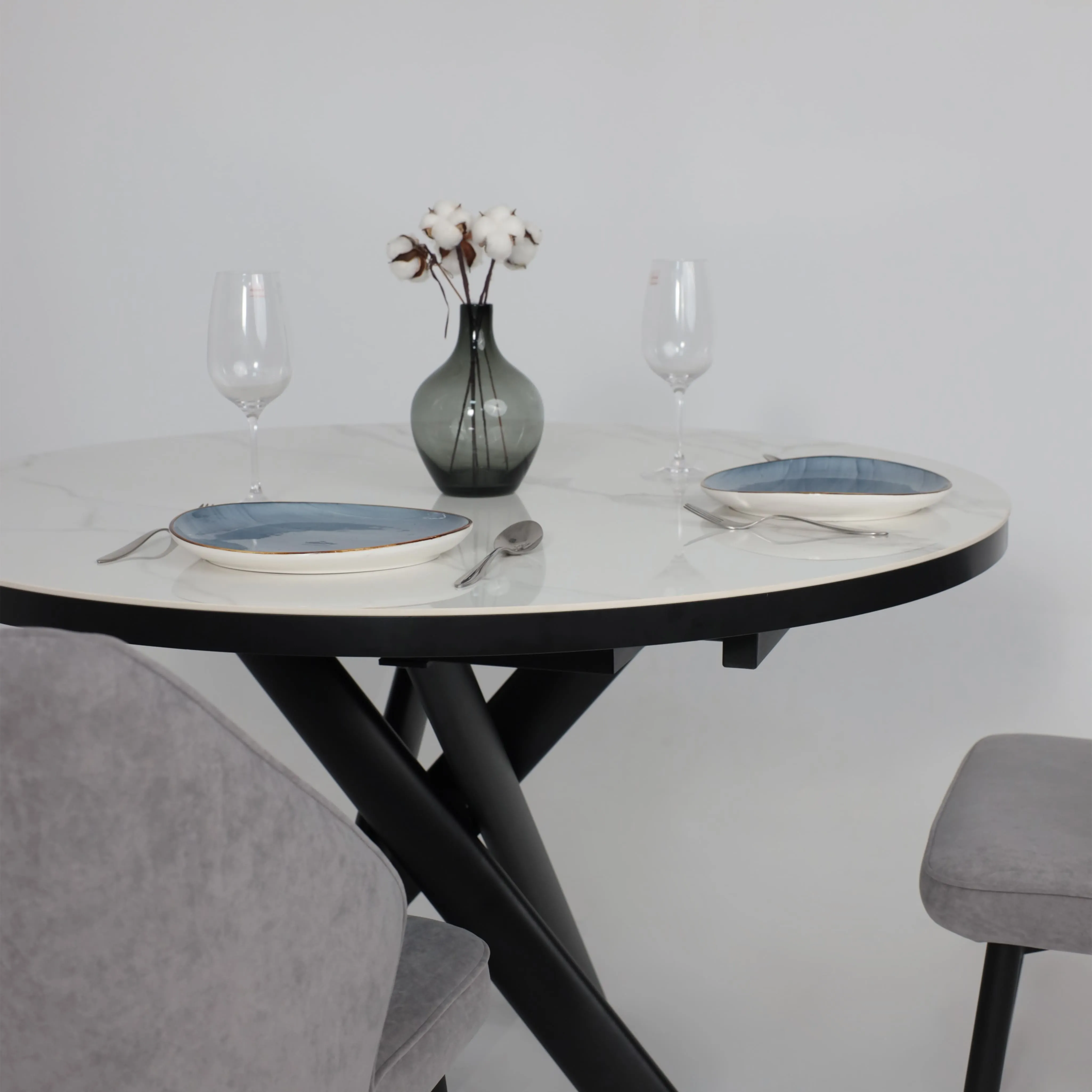 Стол TIRK RADIAL-94, раздвижной 94(126)х64, Дымчатая керамика/Чёрный