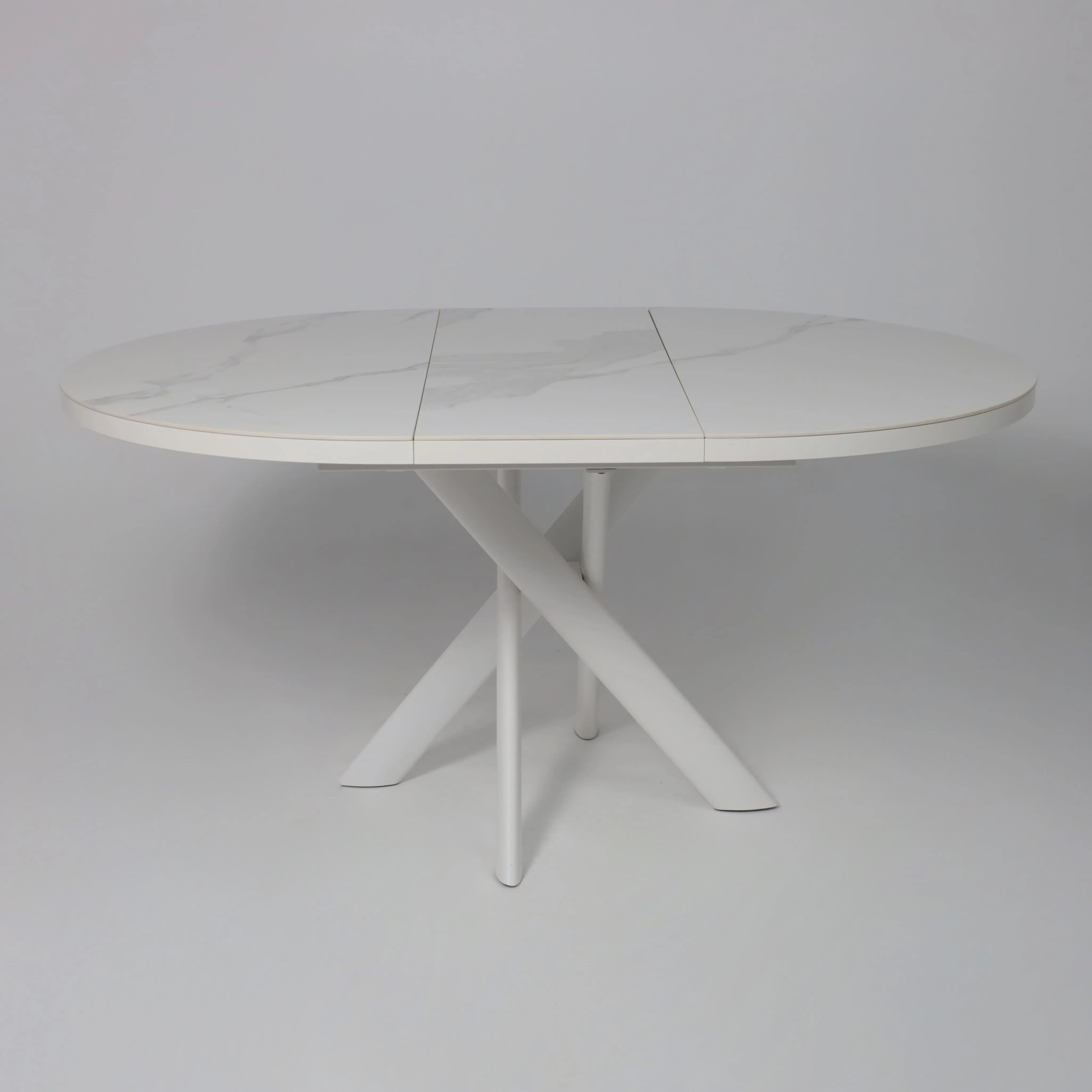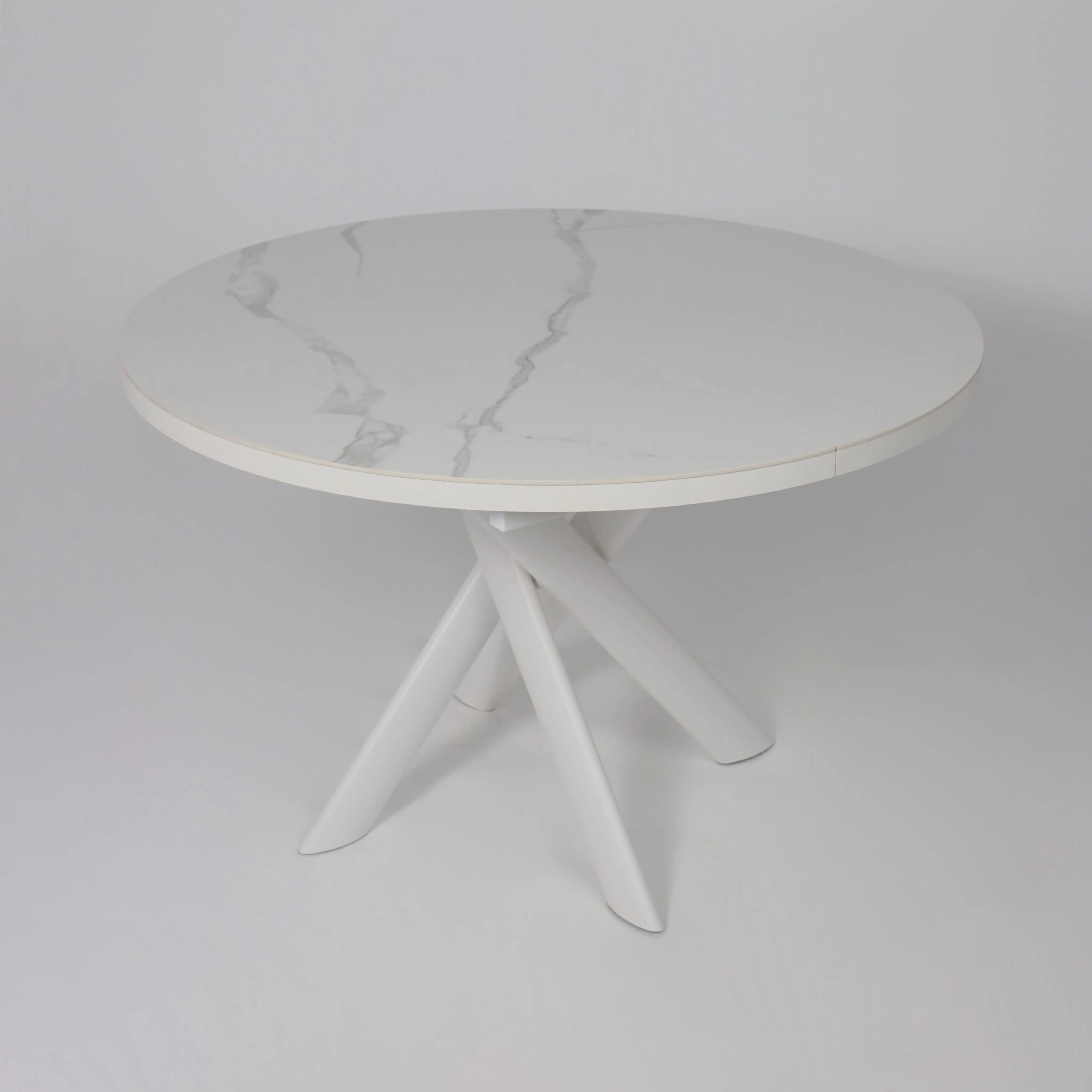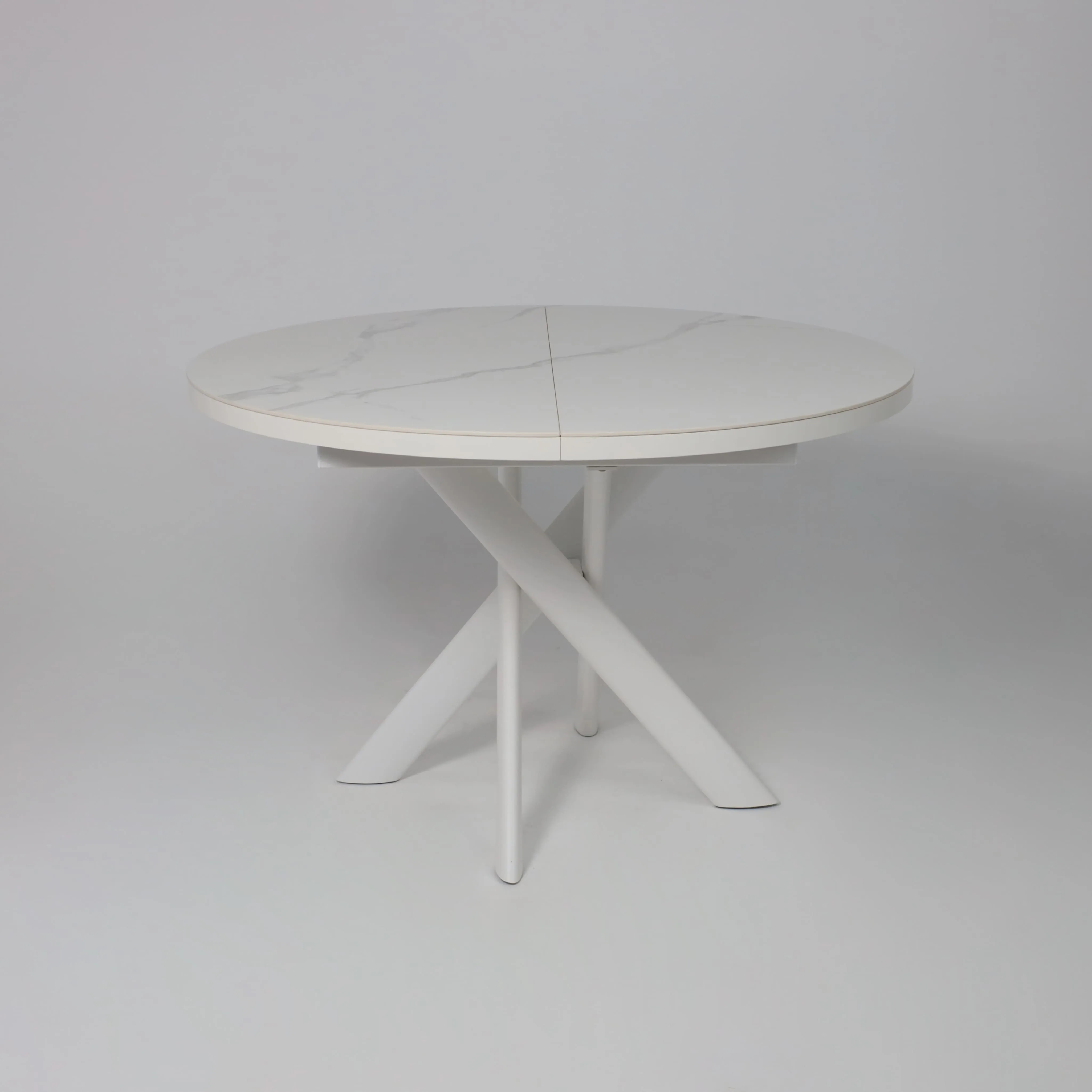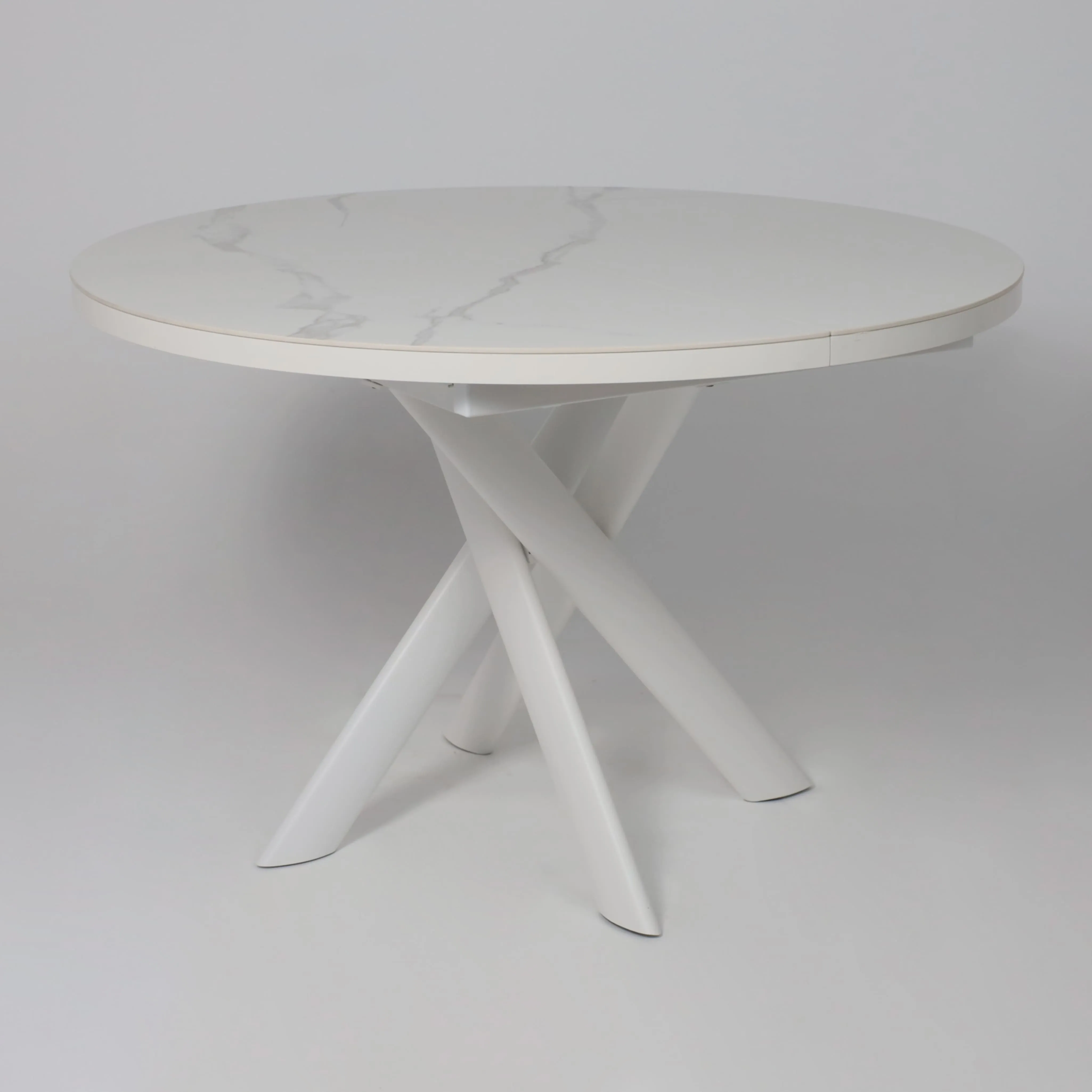 Стол RONALDO-120, круглый раздвижной 120(160), PATAGONOA BIANCO GLOSS PREMIUM CER/Белый