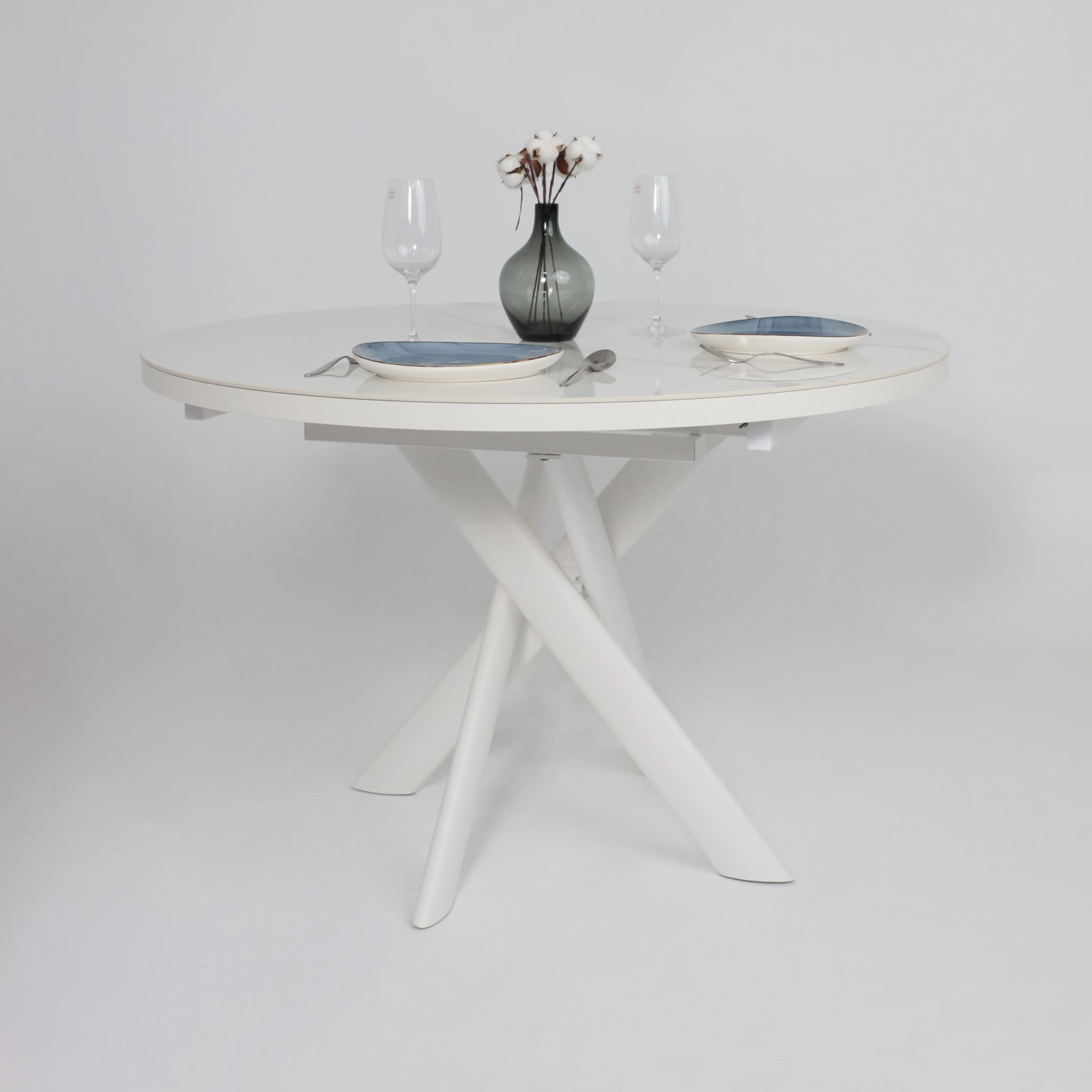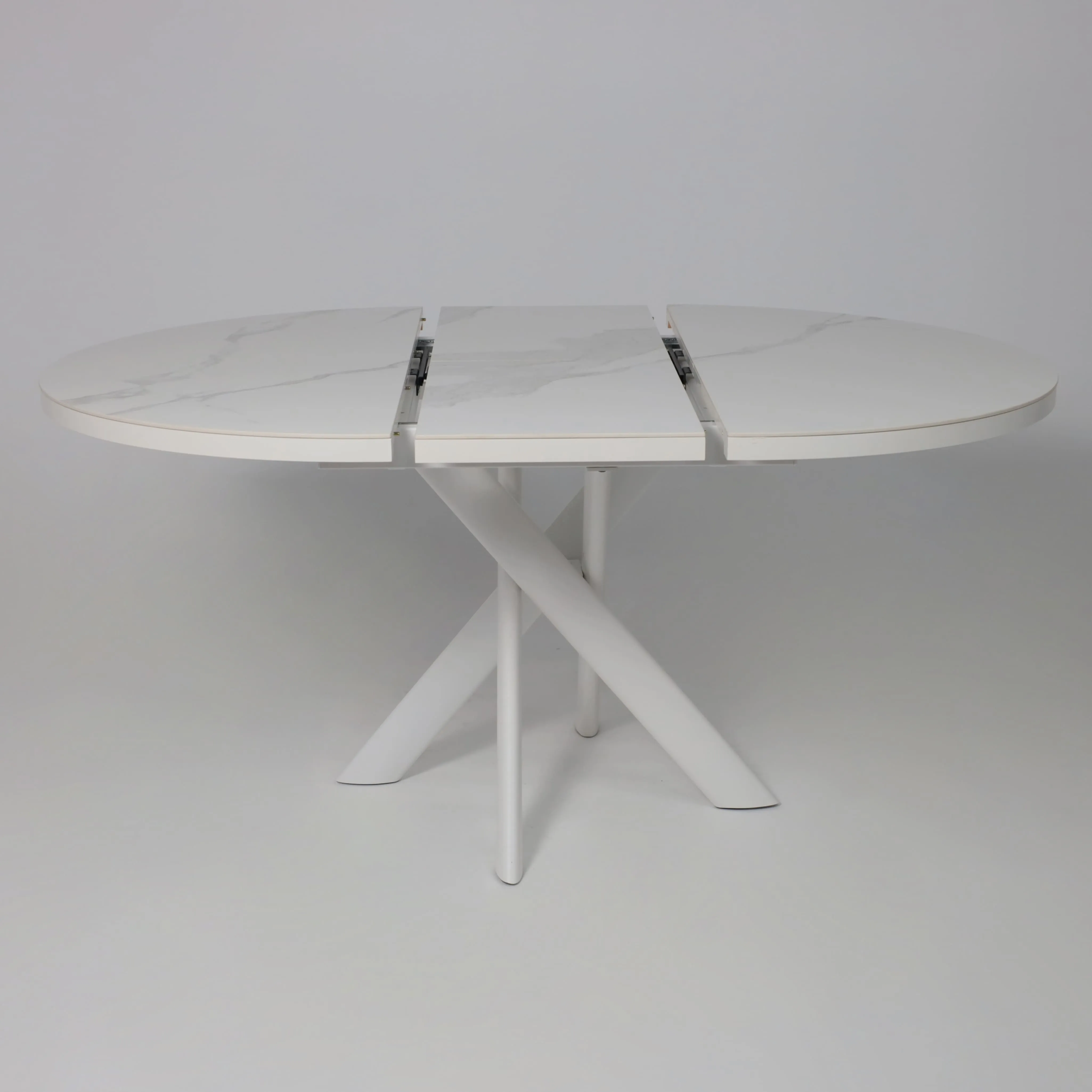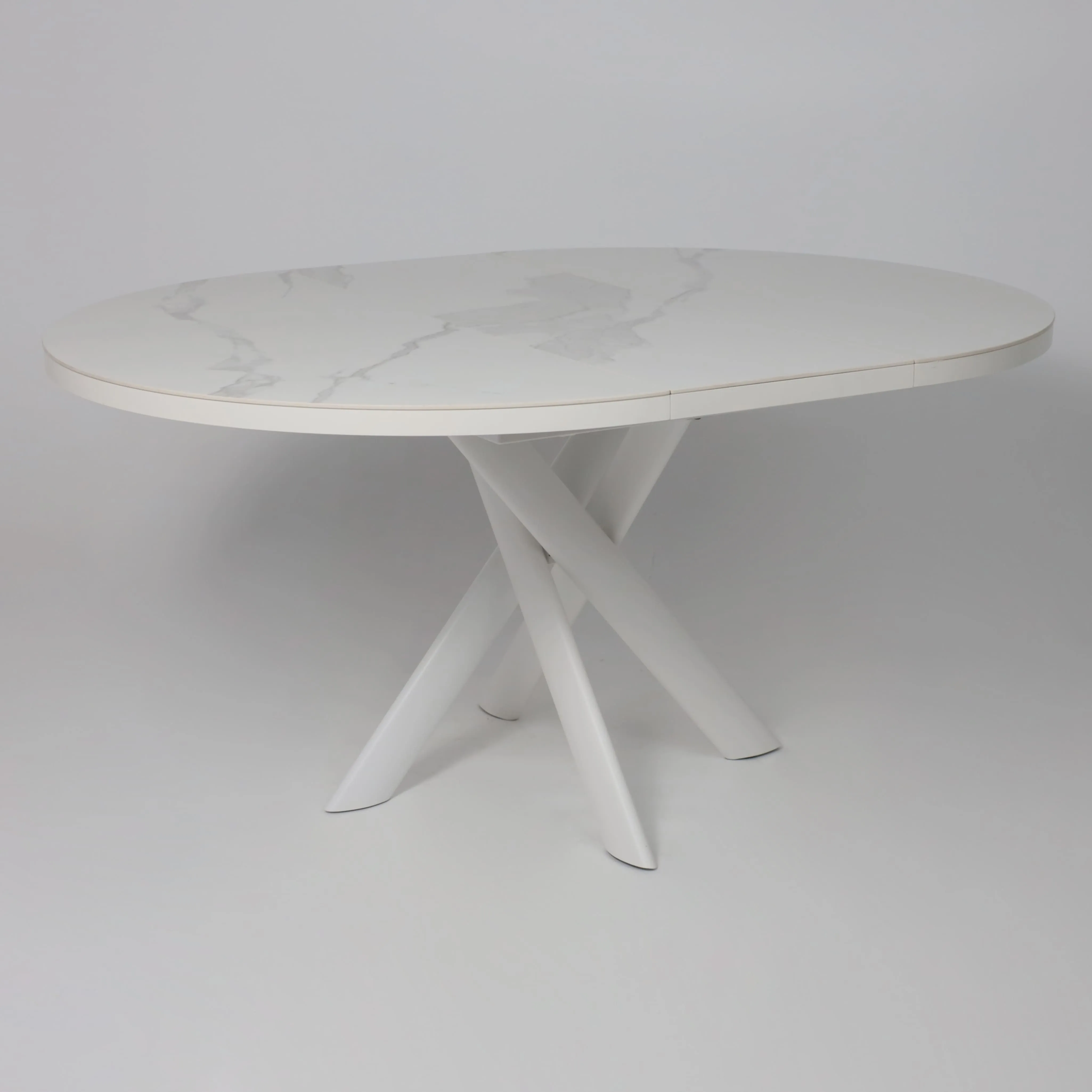 Стол RONALDO-120, круглый раздвижной 120(160), PATAGONOA BIANCO GLOSS PREMIUM CER/Белый