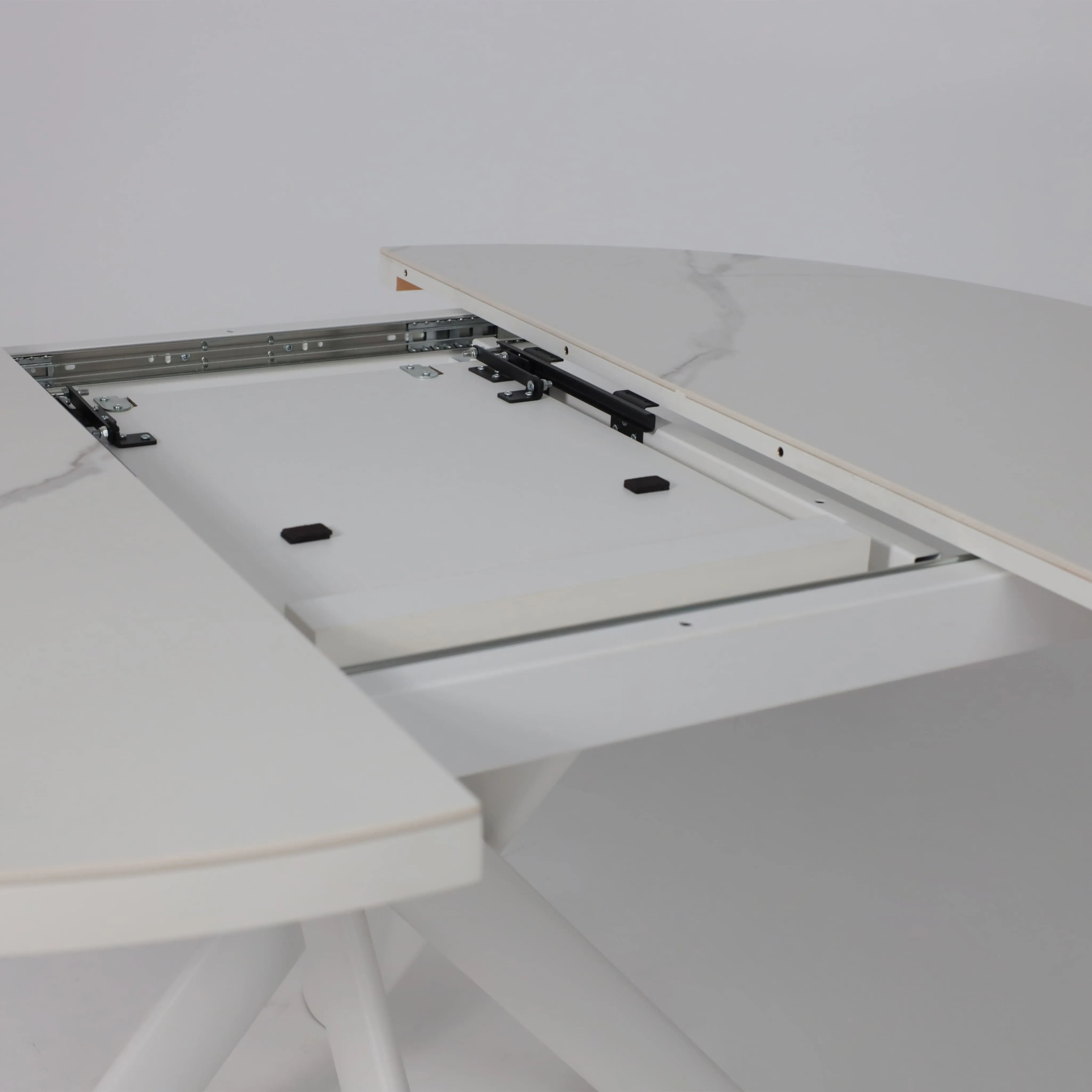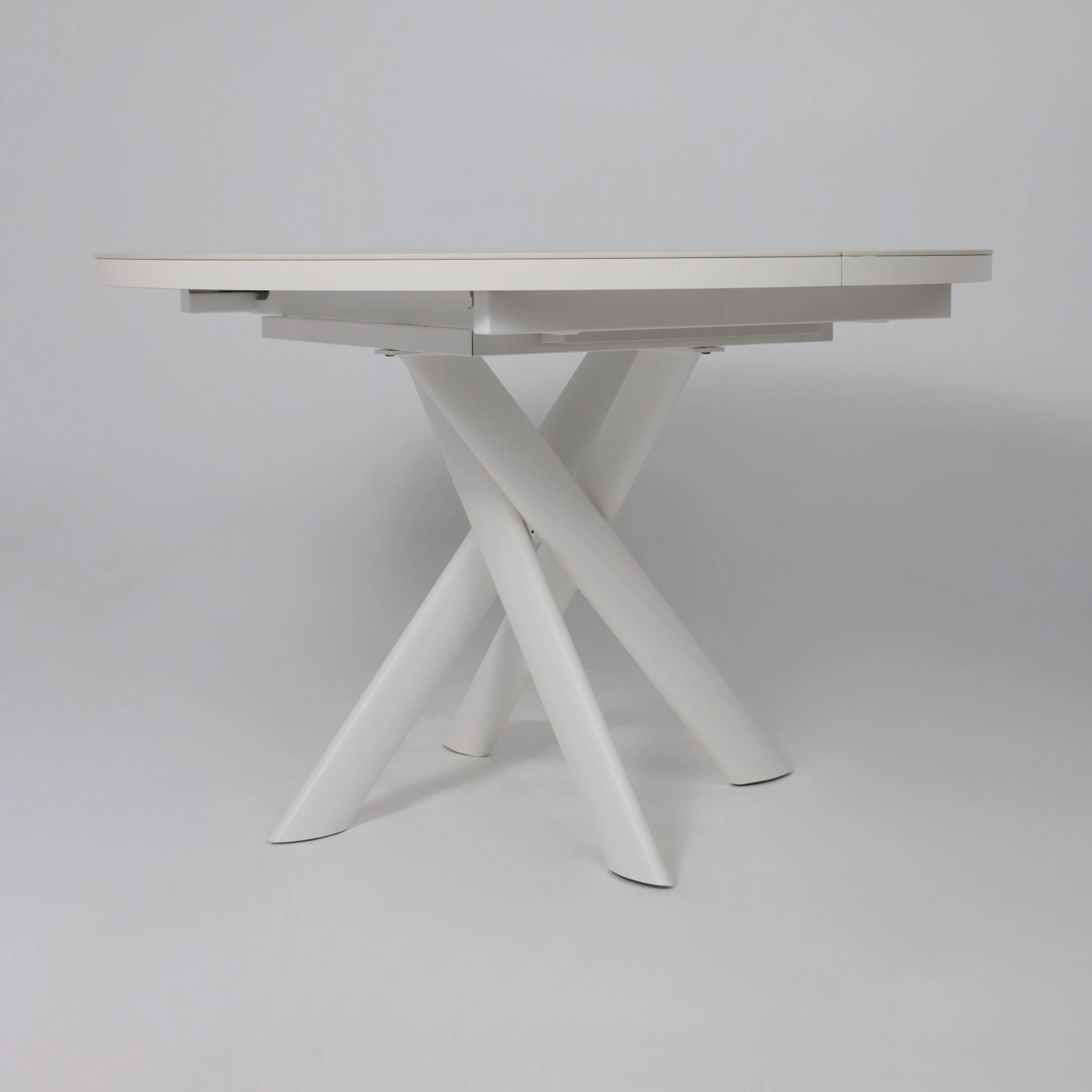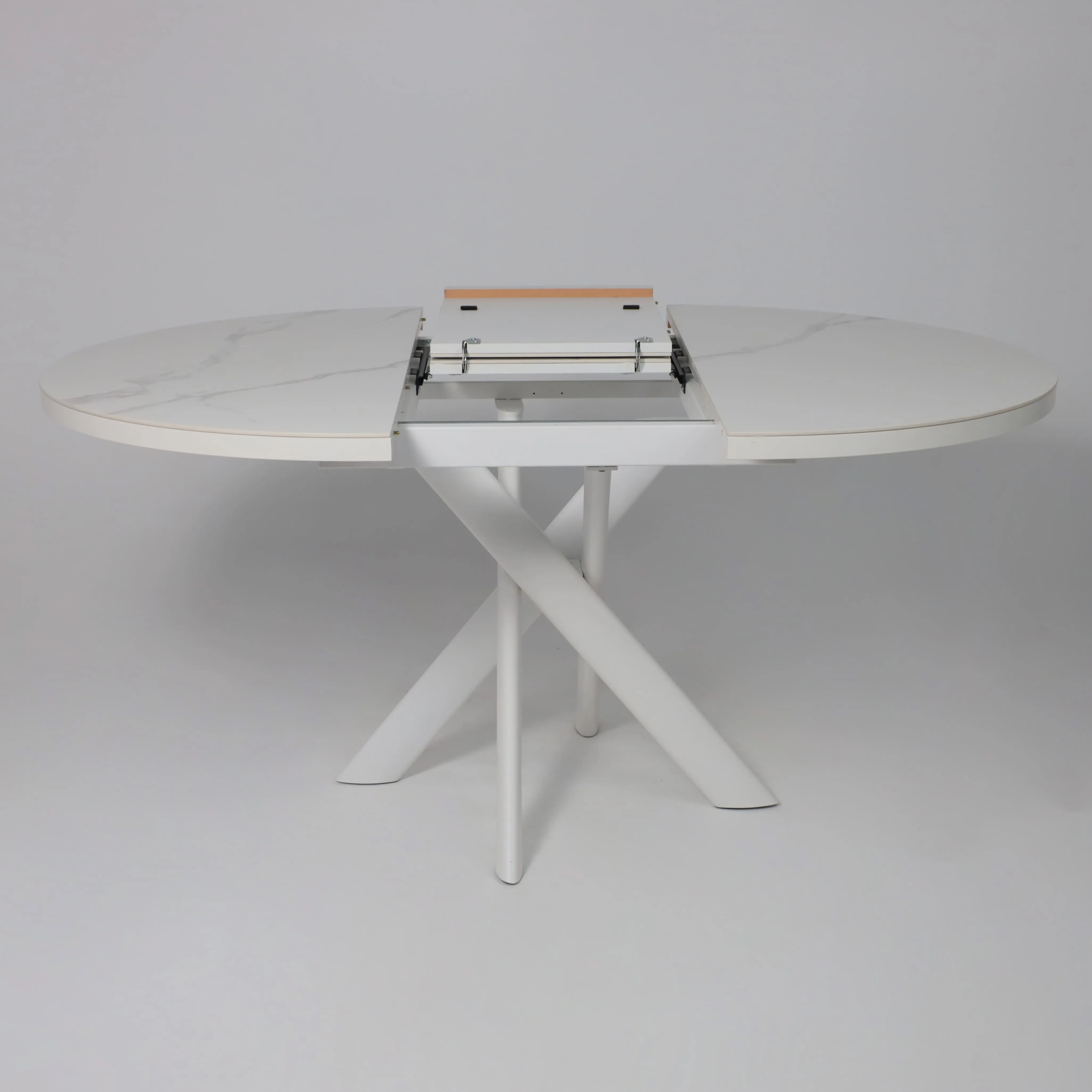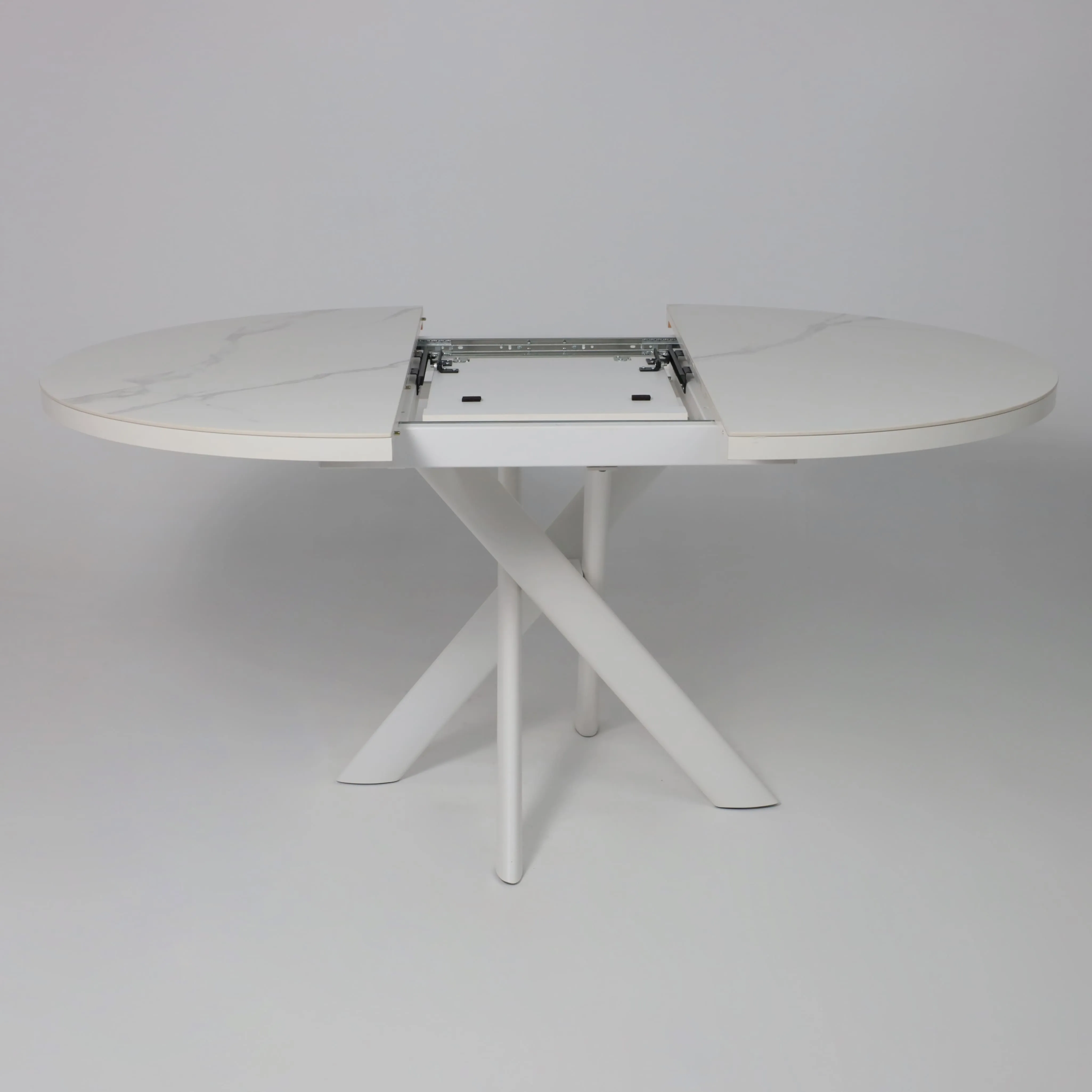 Стол RONALDO-120, круглый раздвижной 120(160), PATAGONOA BIANCO GLOSS PREMIUM CER/Белый