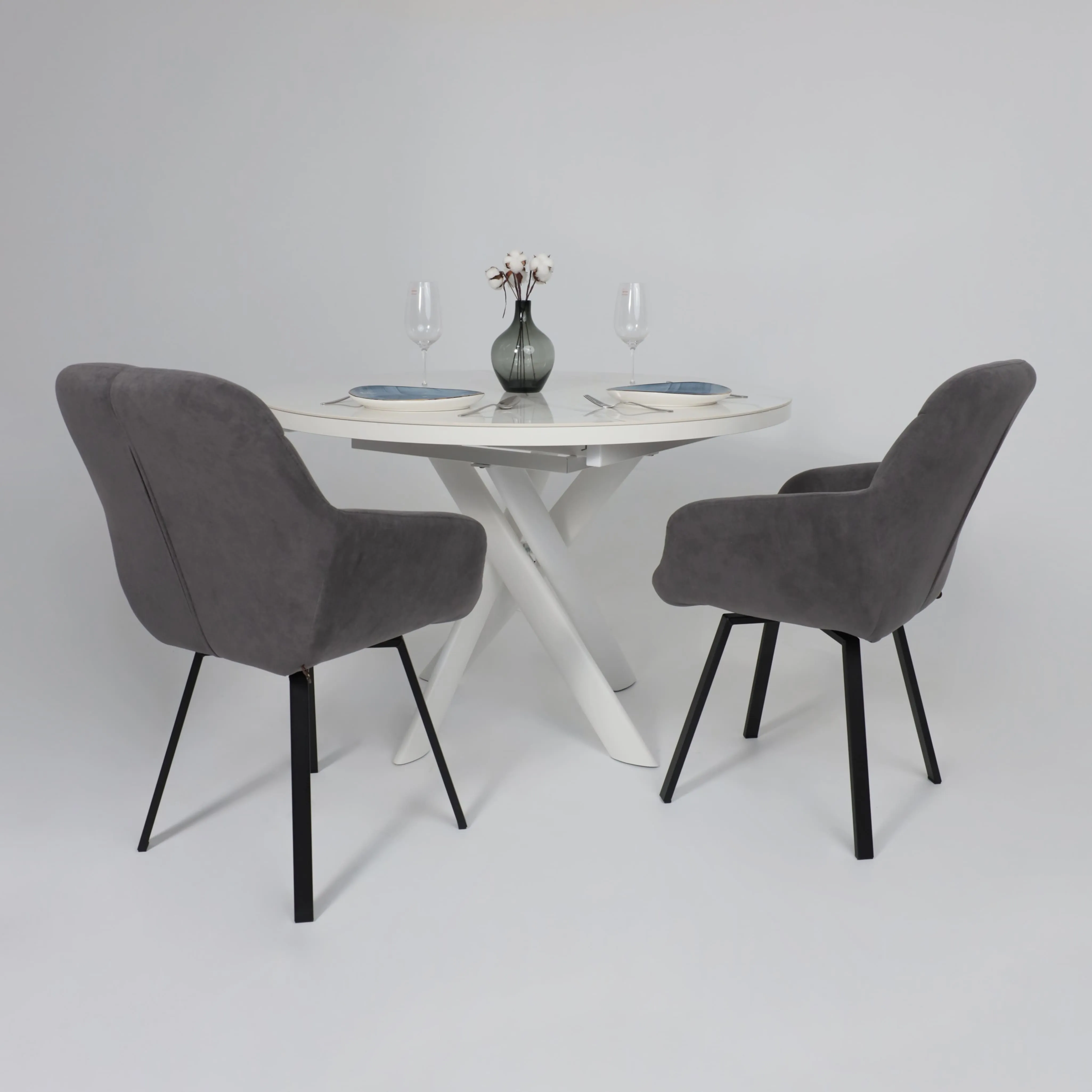 Стол TIRK RADIAL-94, раздвижной 94(126)х64, Дымчатая керамика/Чёрный
